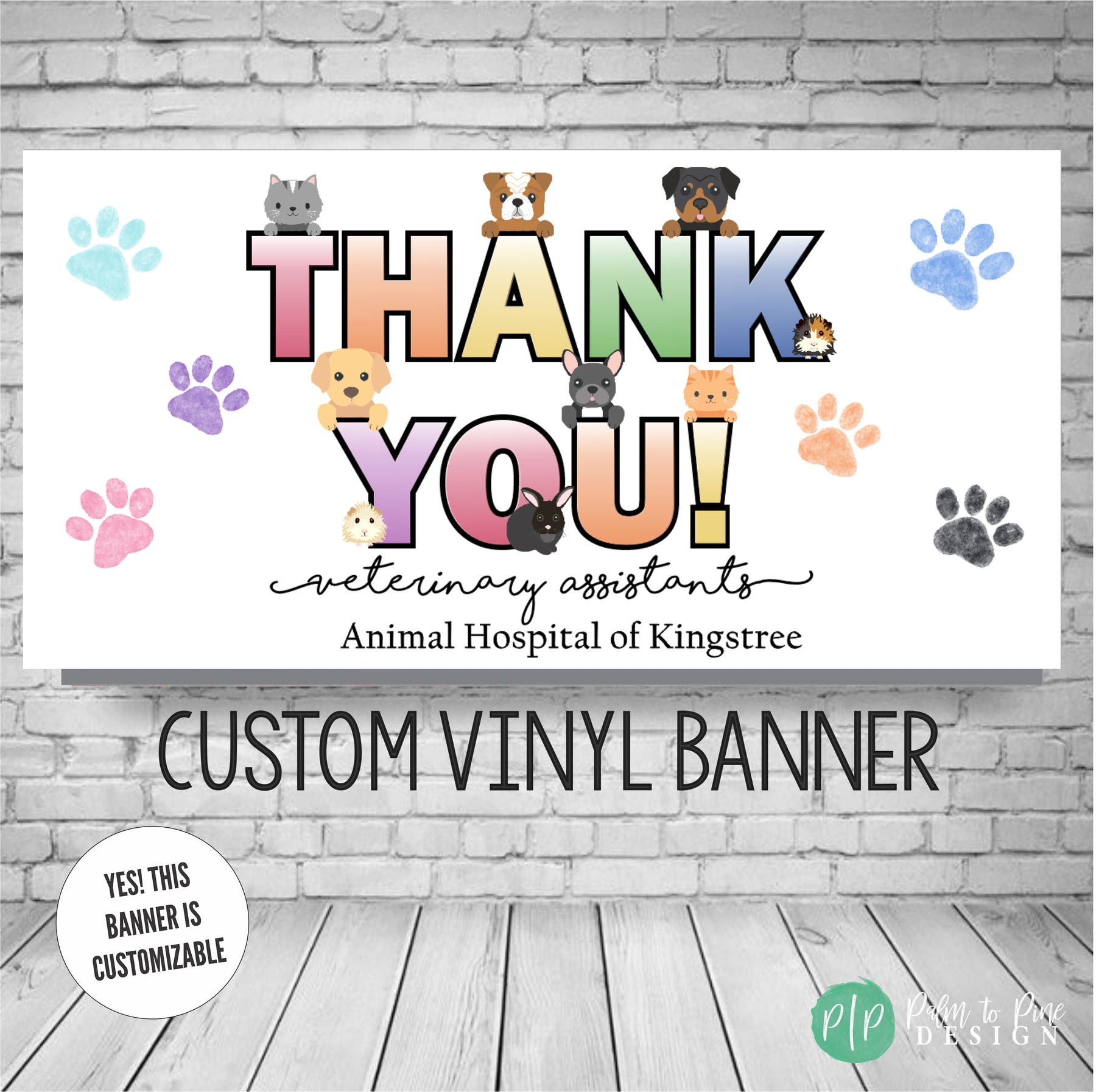 This banner is customizable to celebrate the specific pet holiday you are wanting to honor. This sturdy and thick vinyl banner can be used indoors or outdoors and is great in a reception area, breakroom, cafeteria or workspace and can be used year after year in your vet hospital!