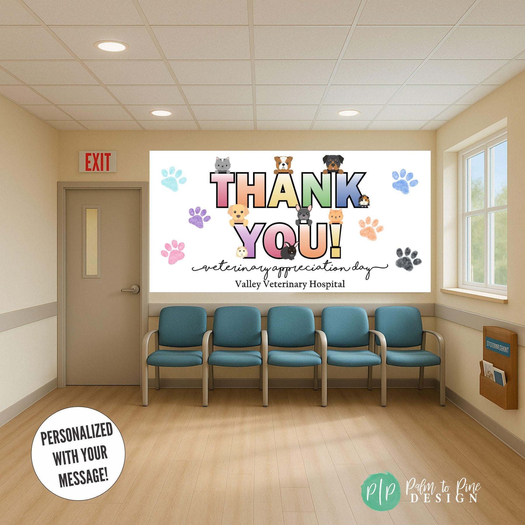 Show your appreciation for Veterinary Appreciation Day, or any vet holiday like Vet Tech week with this muted rainbow appreciation banner. This animal hospital appreciation banner can be customized to honor anyone in your practice for Veterinary Receptionist Week, CSRs, Veterinarian Technician week, or vet hospital staff appreciation banner with neutral rainbow paw prints and pet clipart is the perfect way to display your appreciation for staff providers!