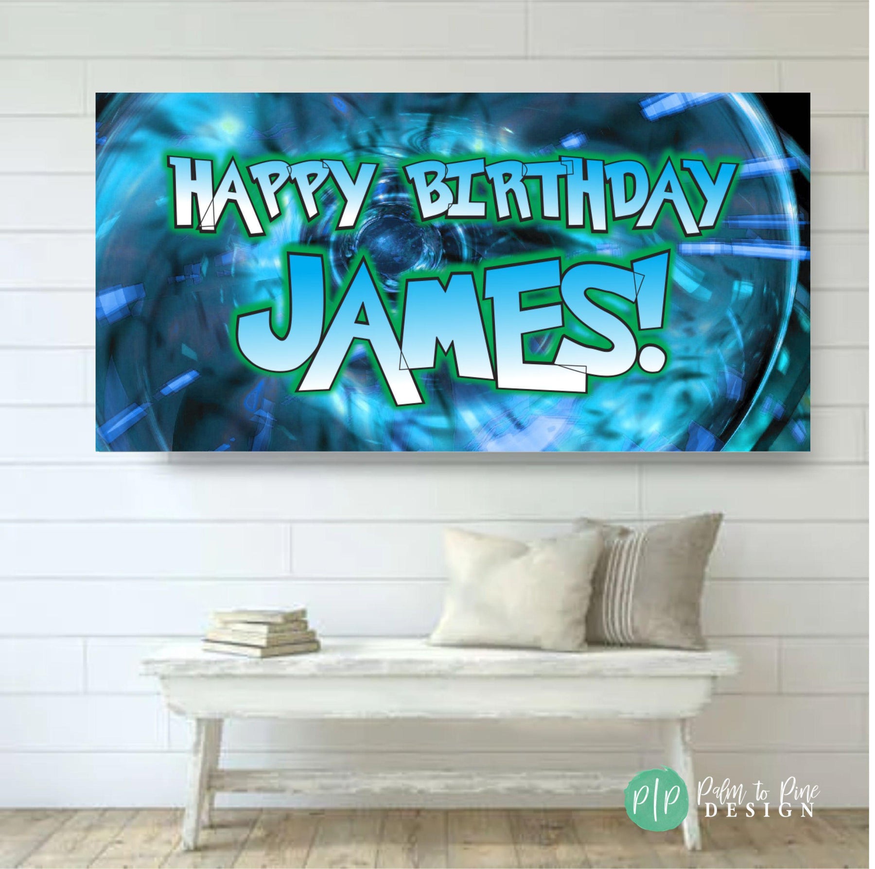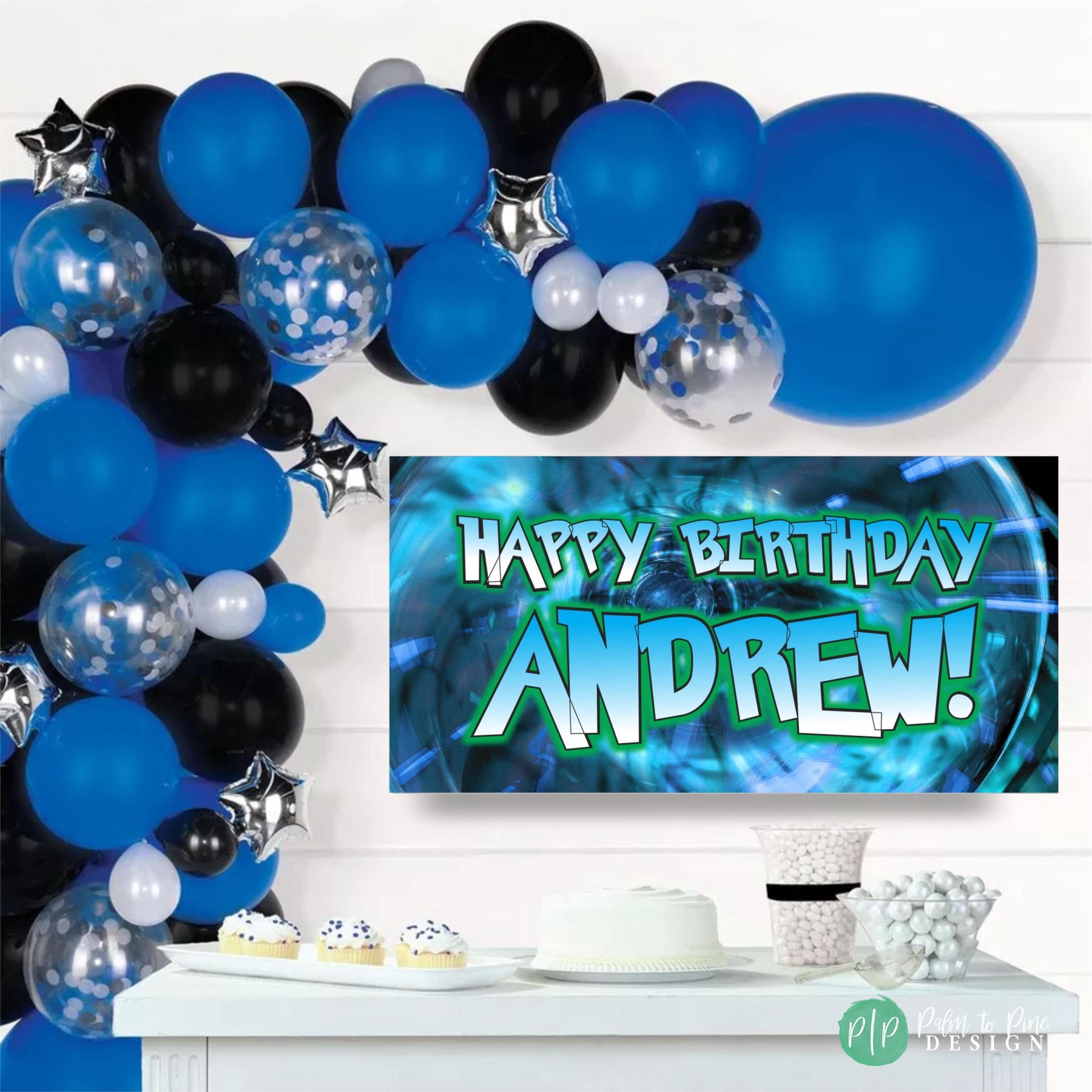 Anime birthday party banner in blue and green