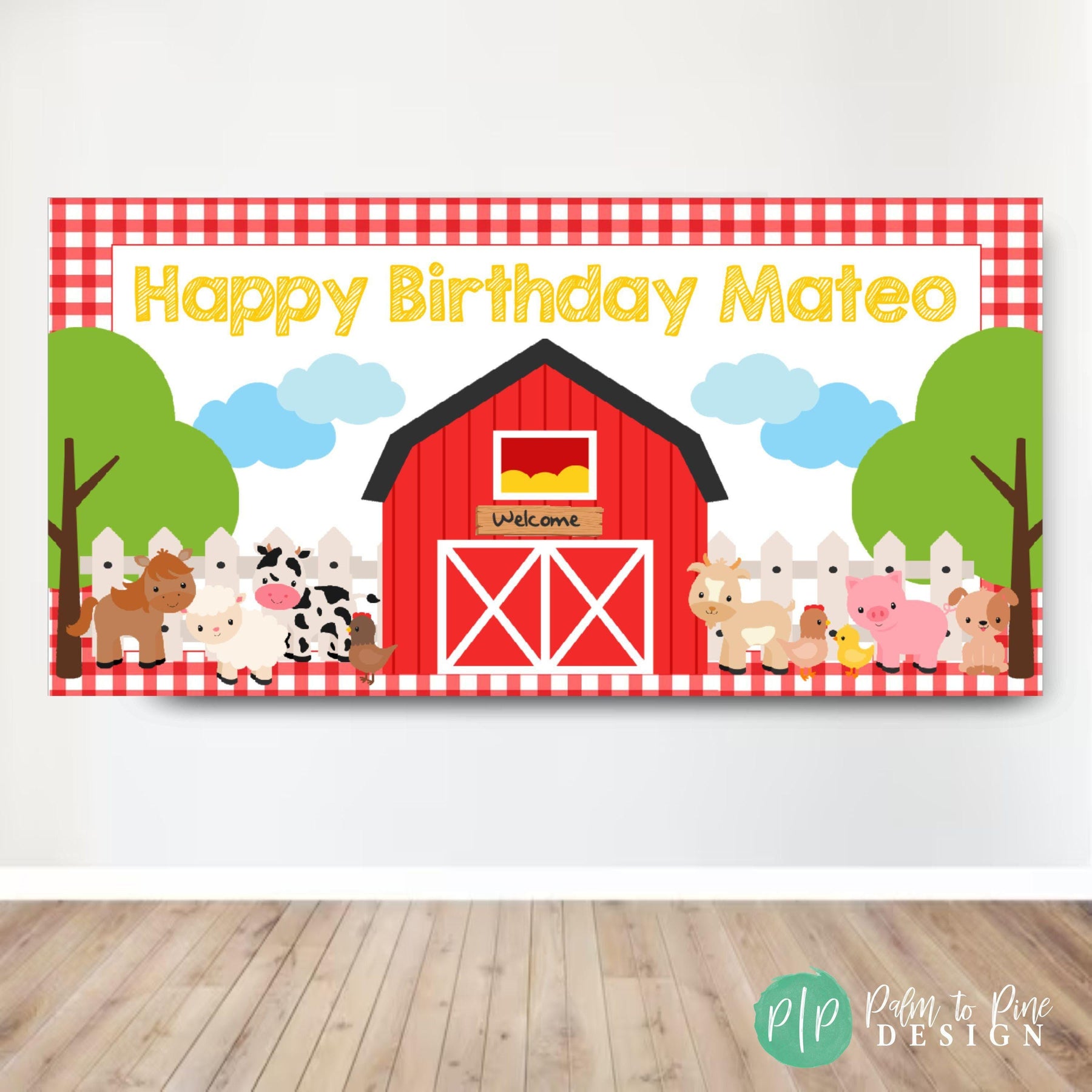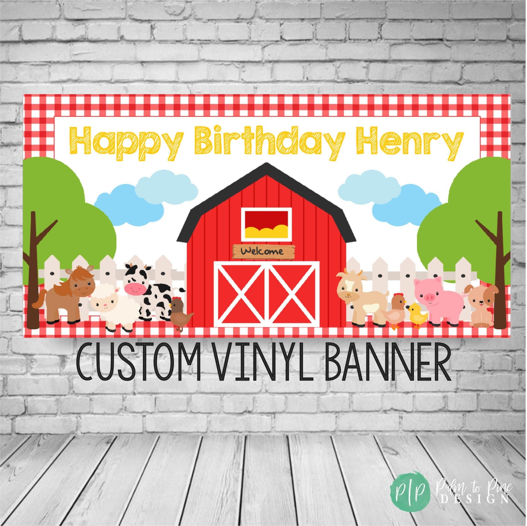 Custom Farm Animal Birthday Banner: Barnyard Party Decor (Printed on Vinyl or Digital Download)