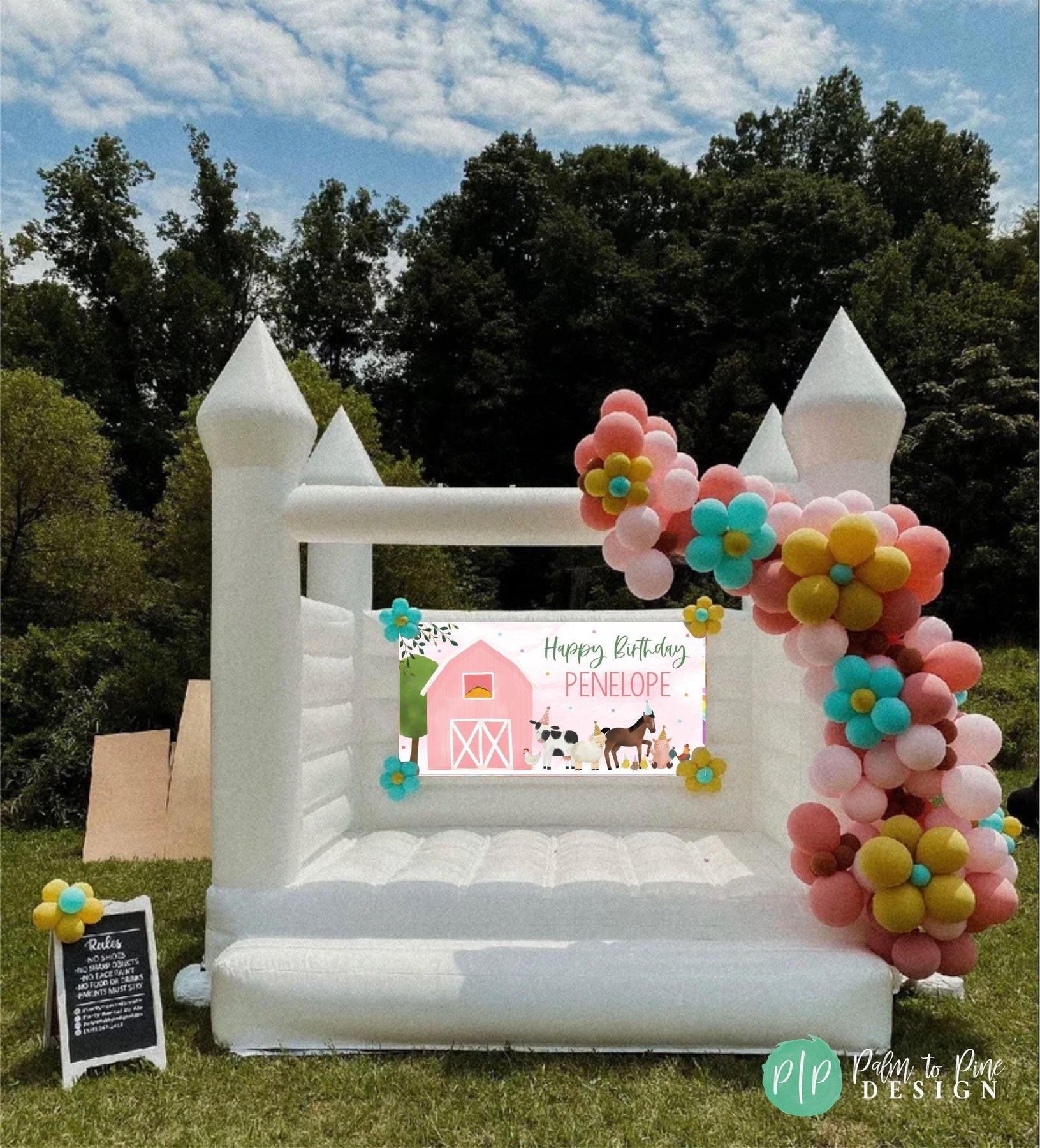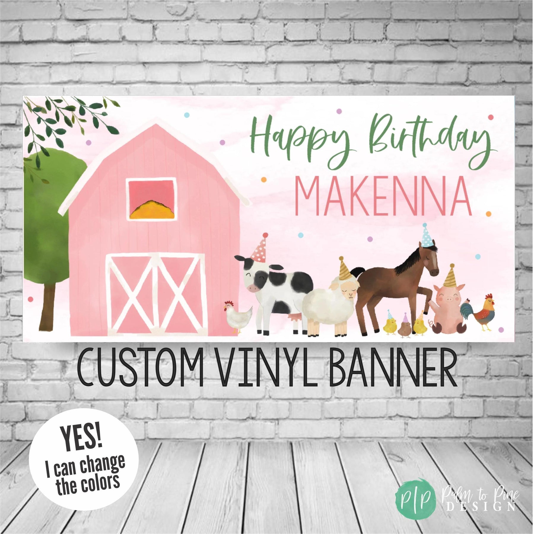 BANNER DETAILS: The banner comes in two finishes, digital or printed. The printed banner is sized as an 18x36", 24x48", 30x60", 36x66", 42x84" or 48x96" and professionally printed on durable 13 oz scrim vinyl. A ultra-thick and durable banner that really makes a WOW statement at your kids farm birthday party!
