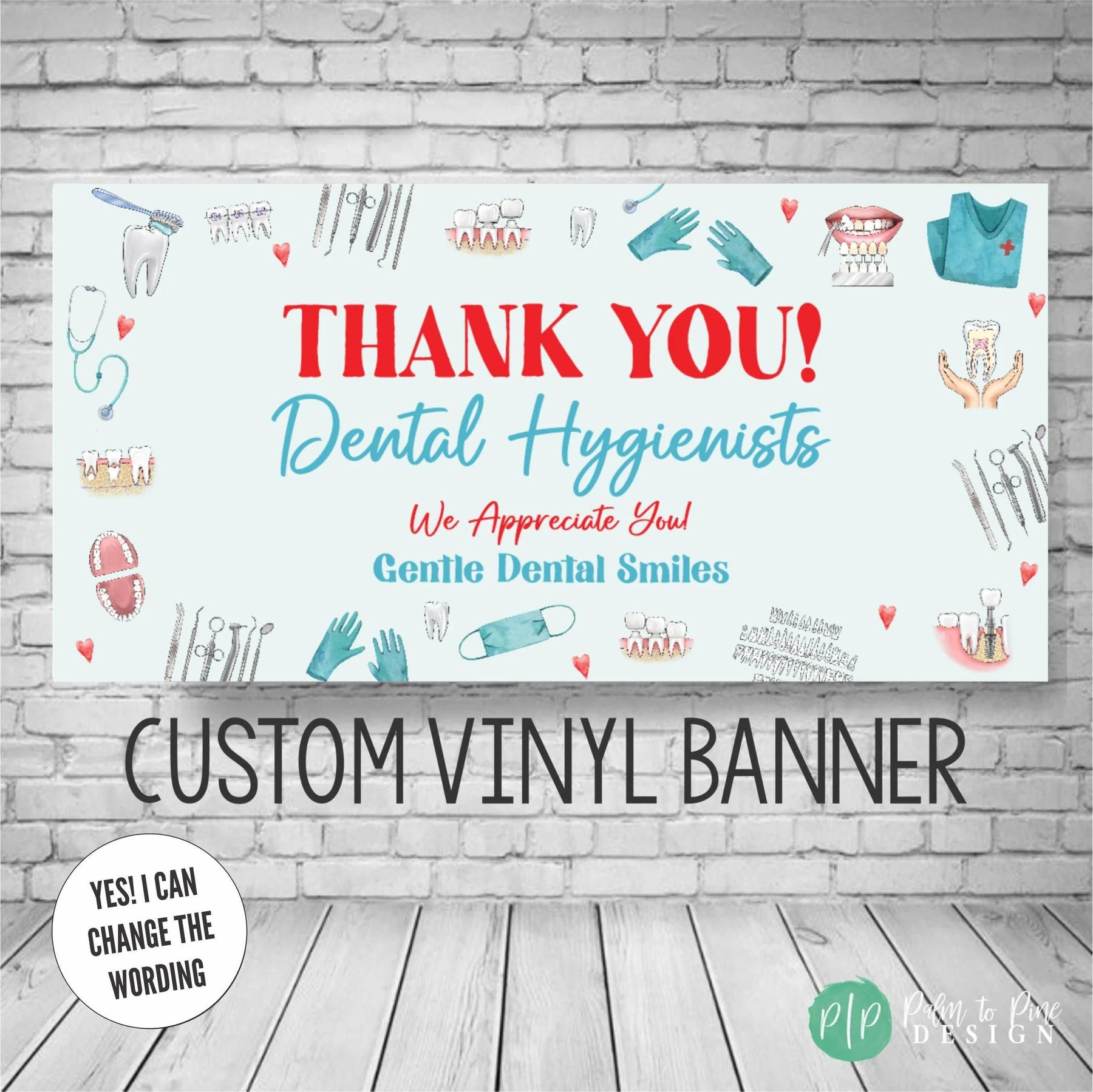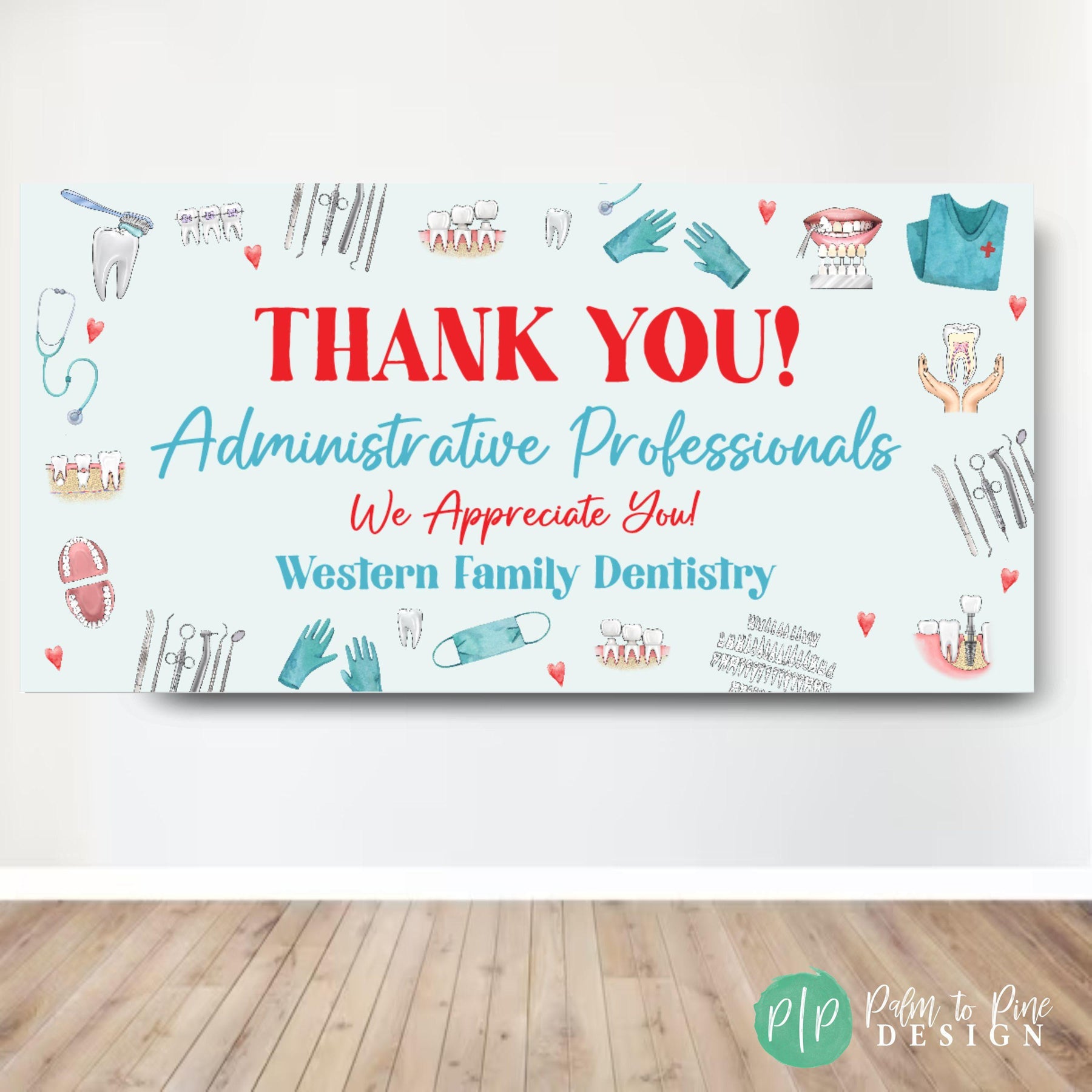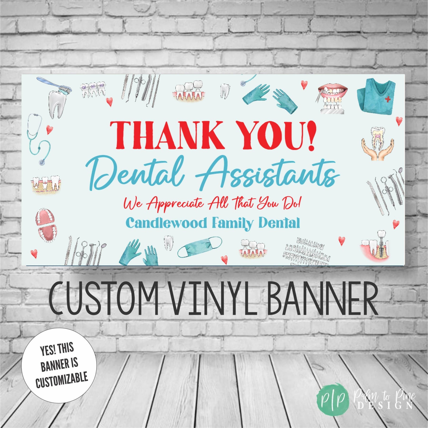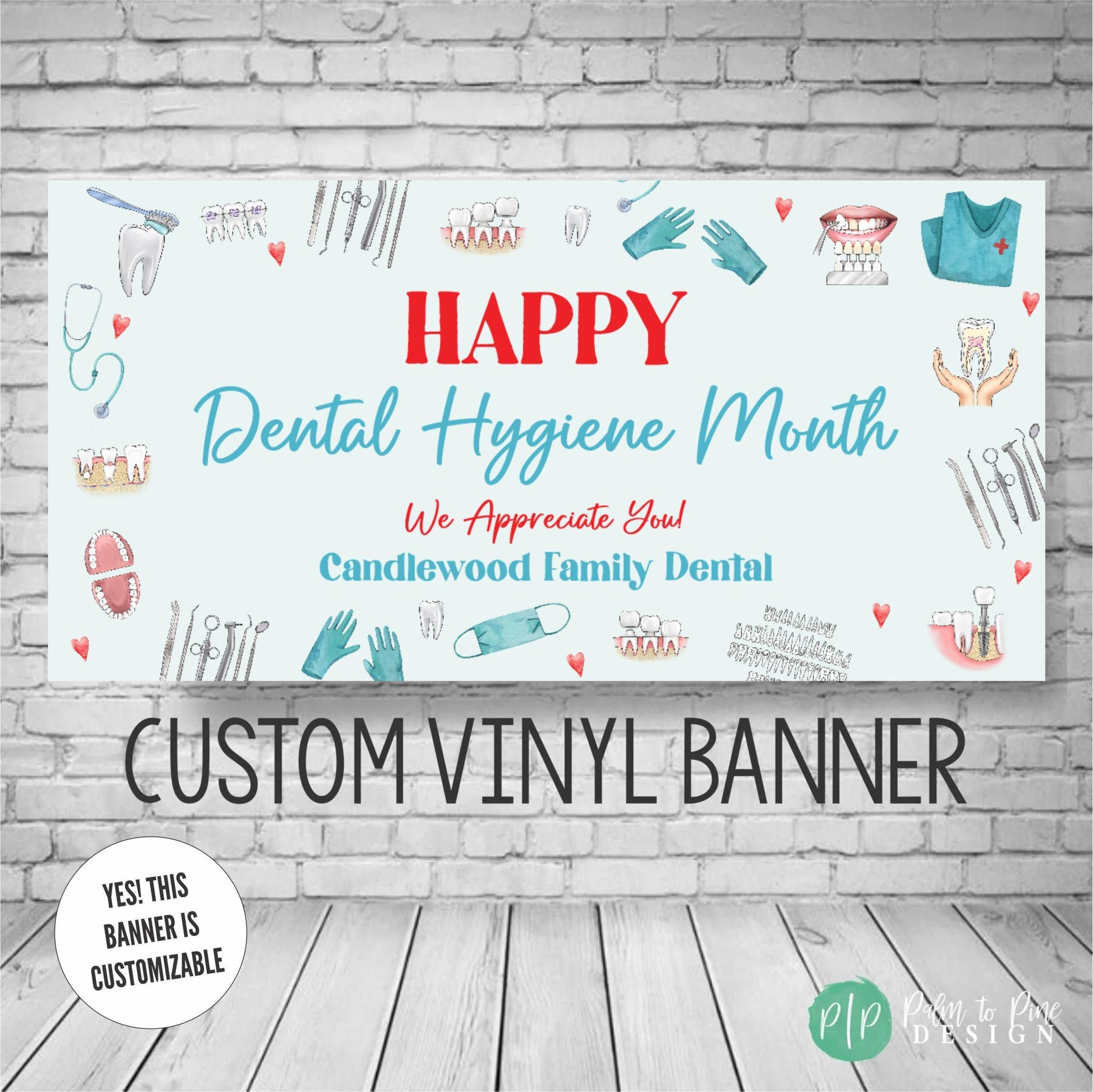 Show your heartfelt appreciation to your dedicated dental team with our Dental Appreciation Week banners, perfect for National Dental Hygienist Week, Dentist Day or any other dental holiday you celebrate throughout the year. Custom designed to celebrate dental professionals, this banner is an ideal way to express your gratitude during Dental Appreciation Week or any other special occasion. This banner is not just a token of appreciation, it also serves as a testament to the unwavering dedication of dental staff. Easy to hang and remove, this banner is both practical and meaningful. Crafted and shipped with care, our banner demonstrates your appreciation with style and grace.