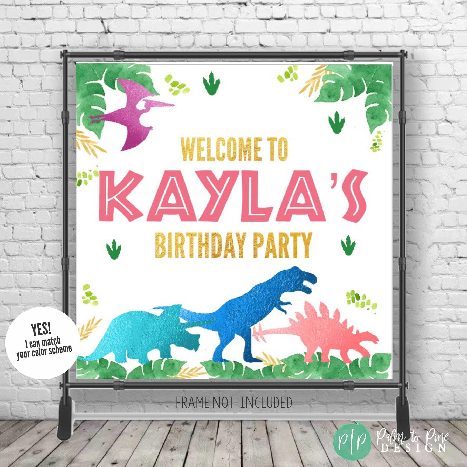 SPECS: The banner comes in two finishes, digital or printed. There are multiple printed sizes available and this backdrop is professionally printed on durable 13 oz scrim vinyl (this is a waterproof, super thick and highly durable banner that really makes a WOW statement at your dinosaur birthday party!) Grommets are added unless otherwise requested to the girls birthday banner as well.