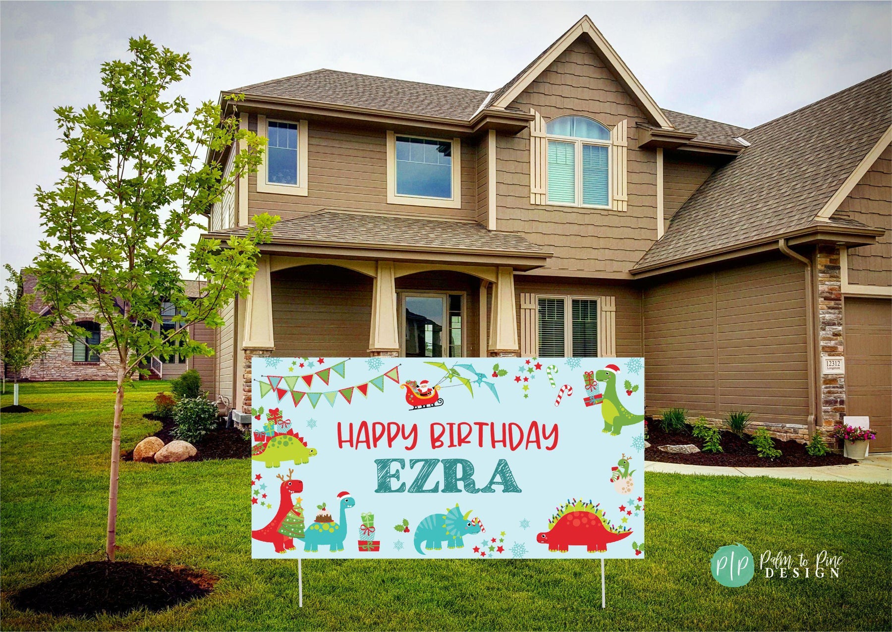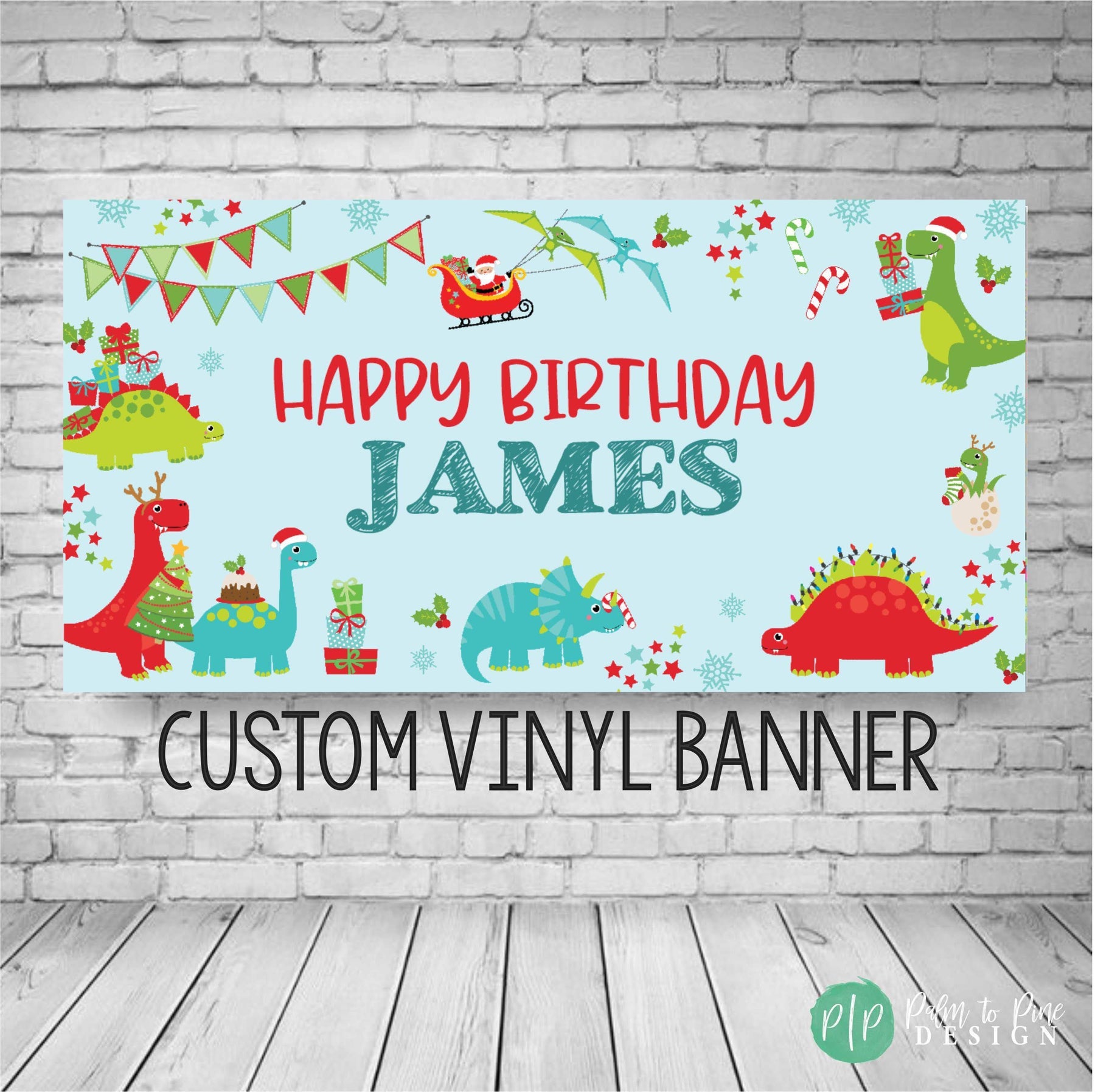 Dinosaur Christmas Birthday Banner