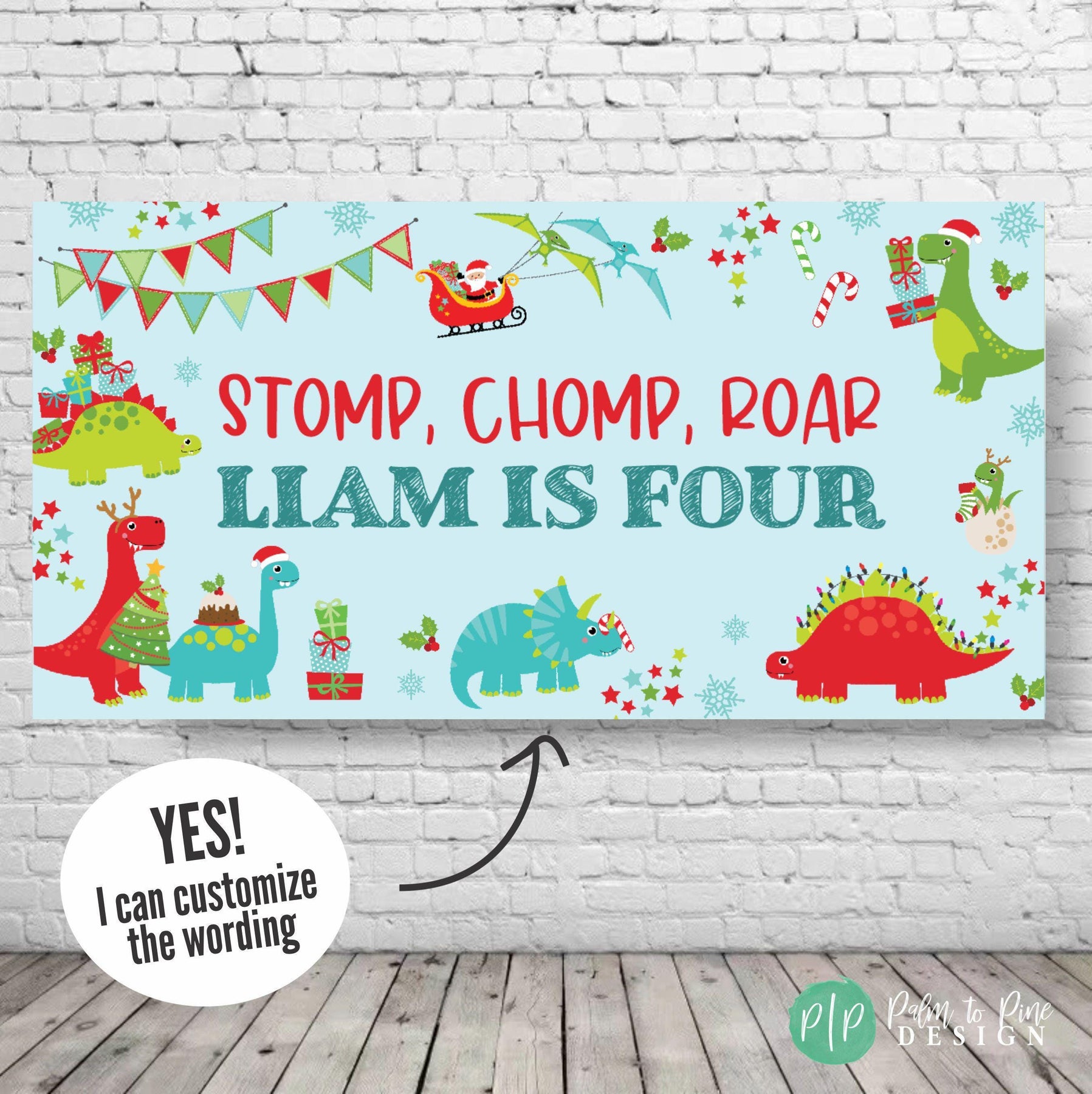 dinosaur Christmas birthday banner
