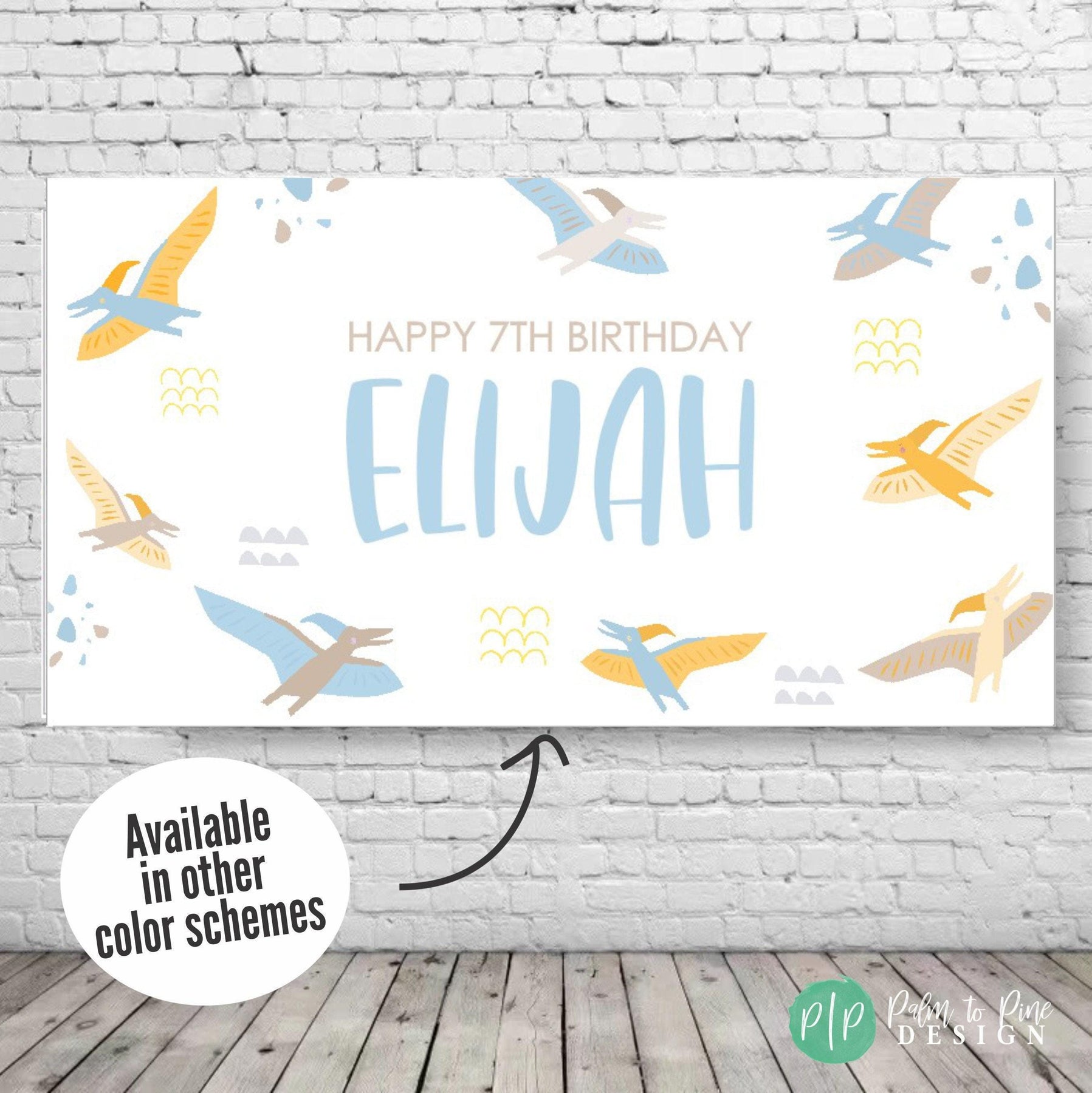 This pastel pterodactyl birthday banner is perfect for a little boy, little girl or twins dinosaur obsessed birthday party. The pterodactyl banner makes the perfect decoration for your dino birthday party for a boy or girl. Use this durable vinyl banner for a outdoor welcome sign at a Dinosaur birthday, as a photo backdrop for pictures or this vinyl banner makes the perfect decoration for behind a dessert table at a Dino party, even display this durable banner in the yard for a happy birthday yard banner.