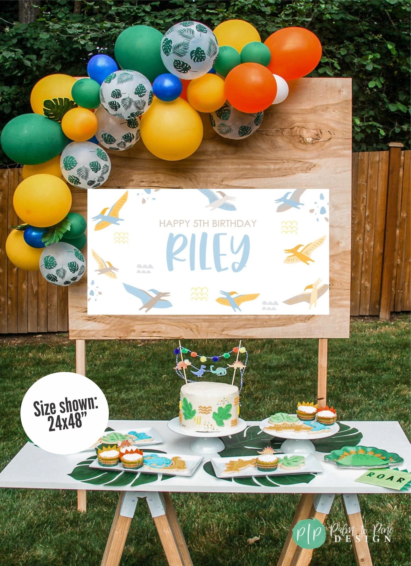BANNER DETAILS: The banner comes in two finishes, digital or printed. The printed banner is sized as an 18x36", 24x48", 30x60," 36"x66", 42x84" or 48x96" and professionally printed on durable 13 oz scrim vinyl (this is a waterproof, super thick and highly durable banner that really makes a WOW statement at your three rex birthday party!)