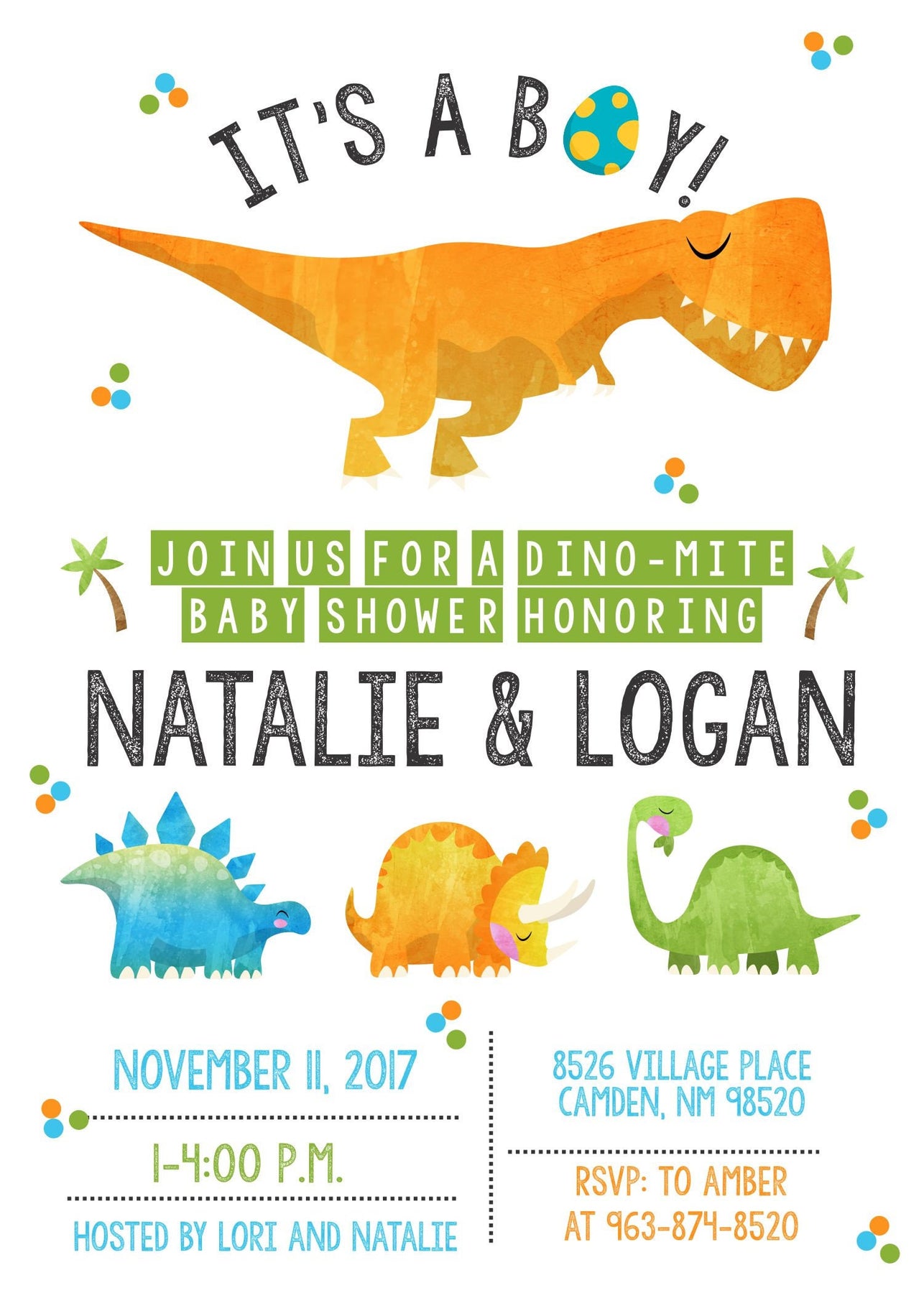 This Dinosaur Baby Shower Invitation is perfect for your a co-ed Dino party. The watercolor dinosaur clipart sets the perfect theme for a dino-mite baby shower. This Dinosaur invite can be customized for any other occasion too! Not just a new baby!