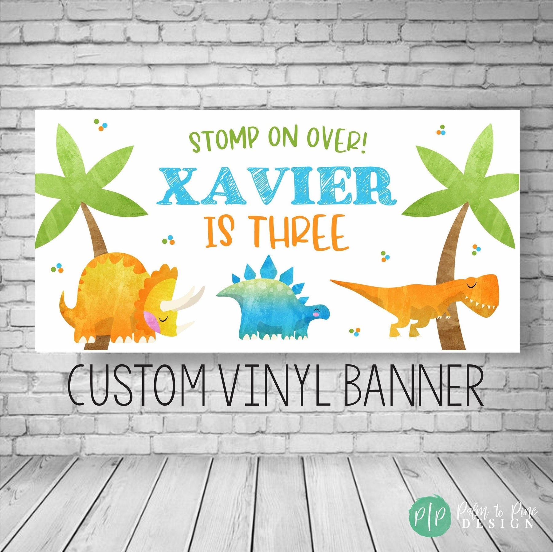 BANNER DETAILS: The banner comes in two finishes, digital or printed. The printed banner is sized as an 18x36", 24x48", 30x60," 36"x66", 42x84" or 48x96" and professionally printed on durable 13 oz scrim vinyl (this is a waterproof, super thick and highly durable banner that really makes a WOW statement at your three rex birthday party!)