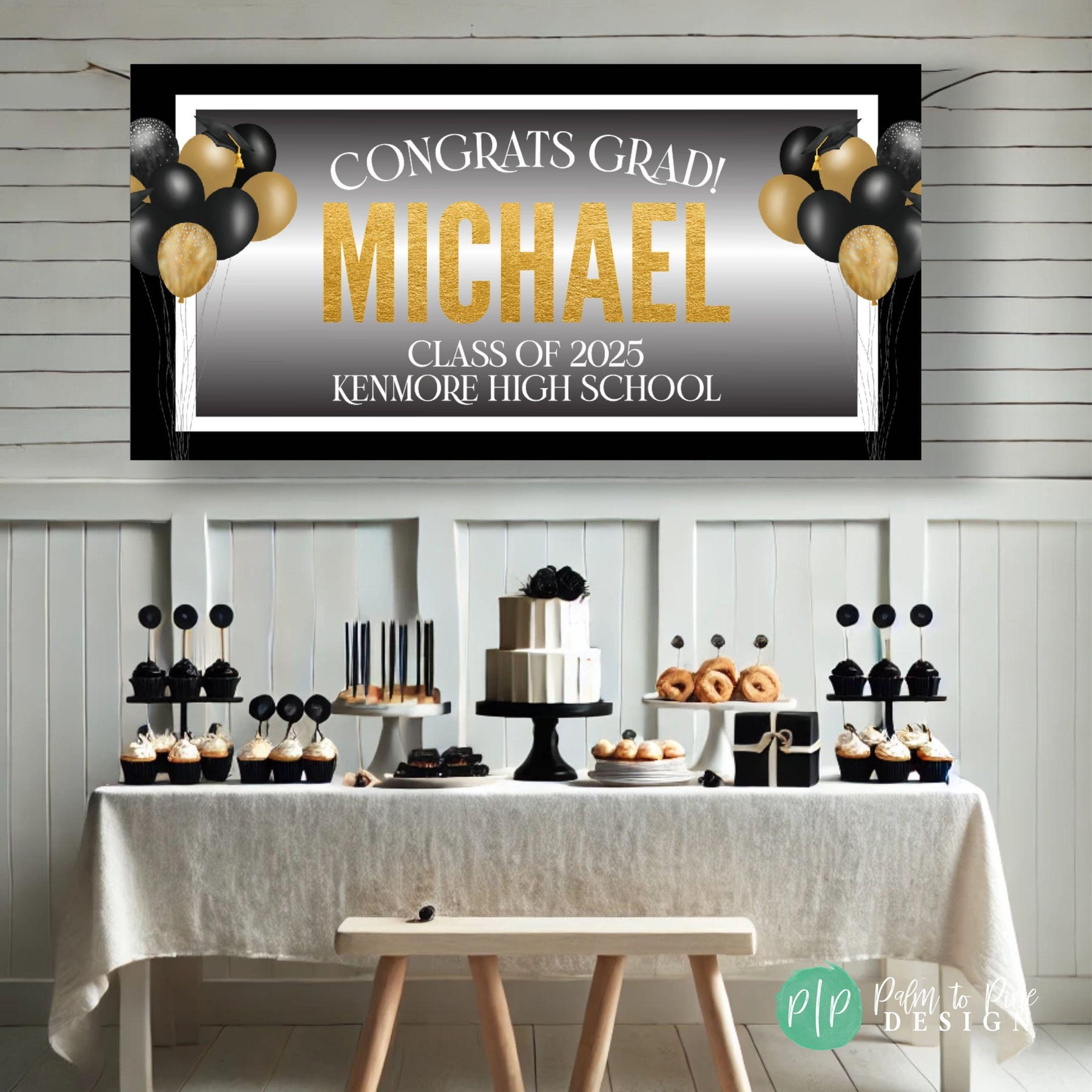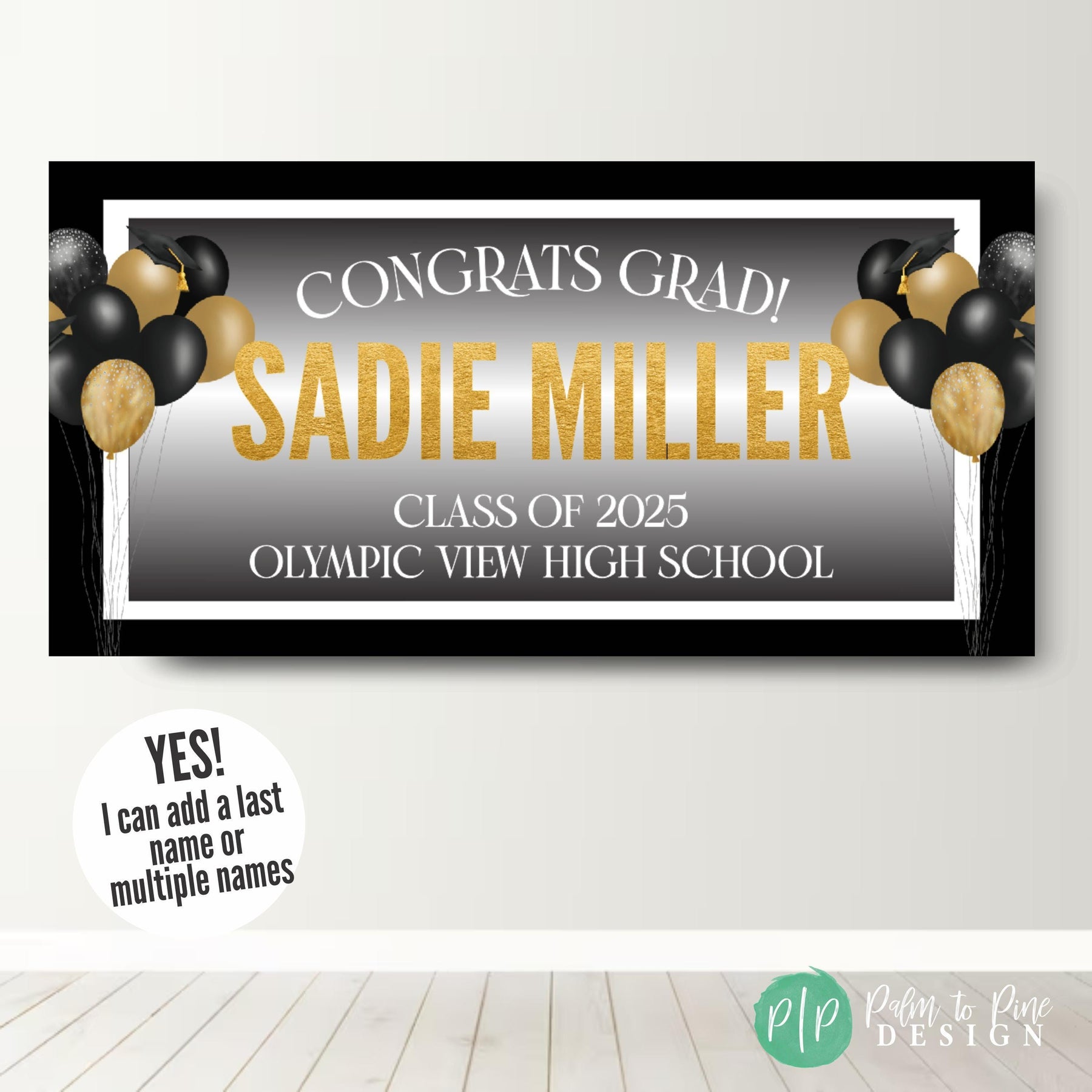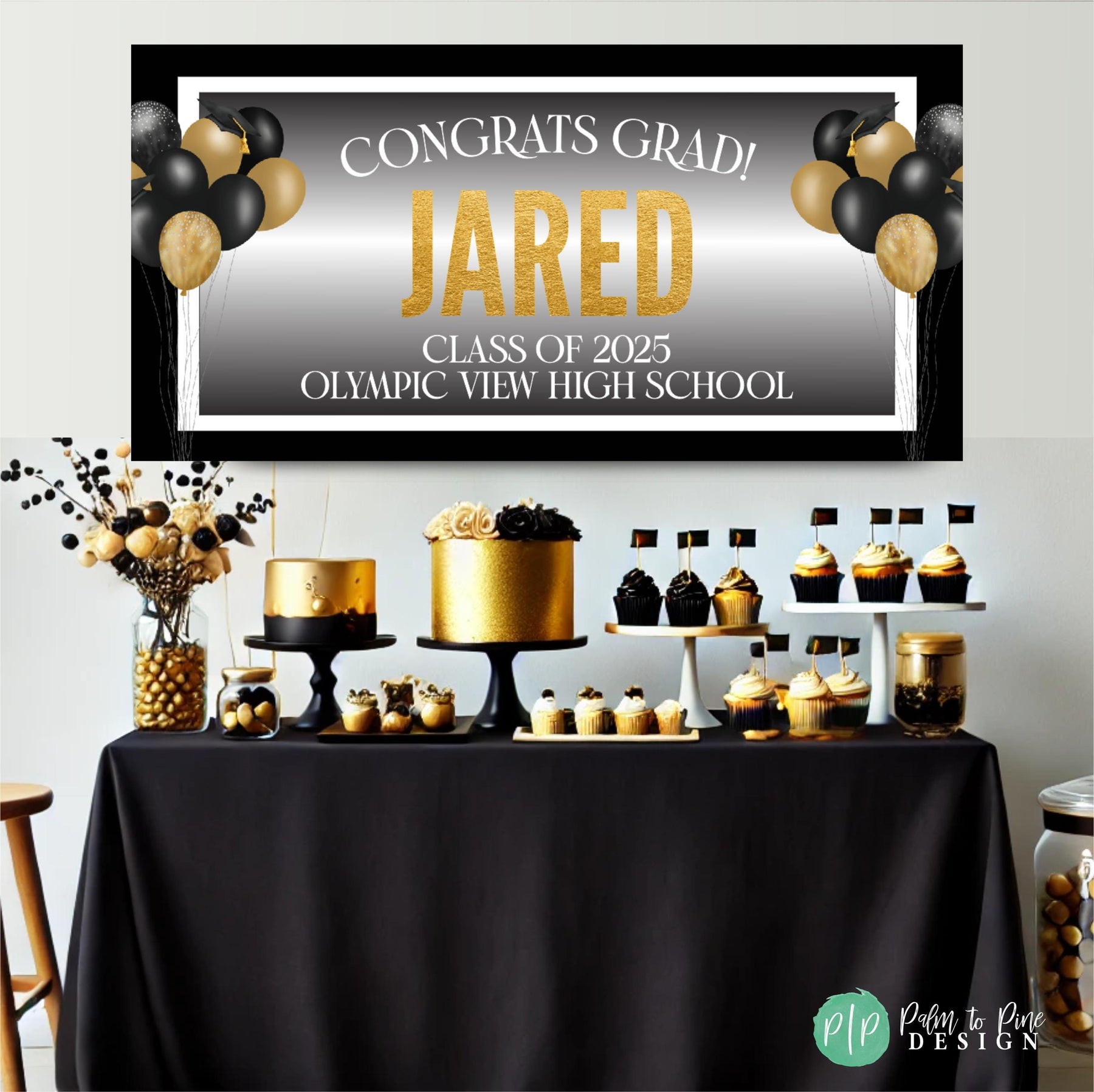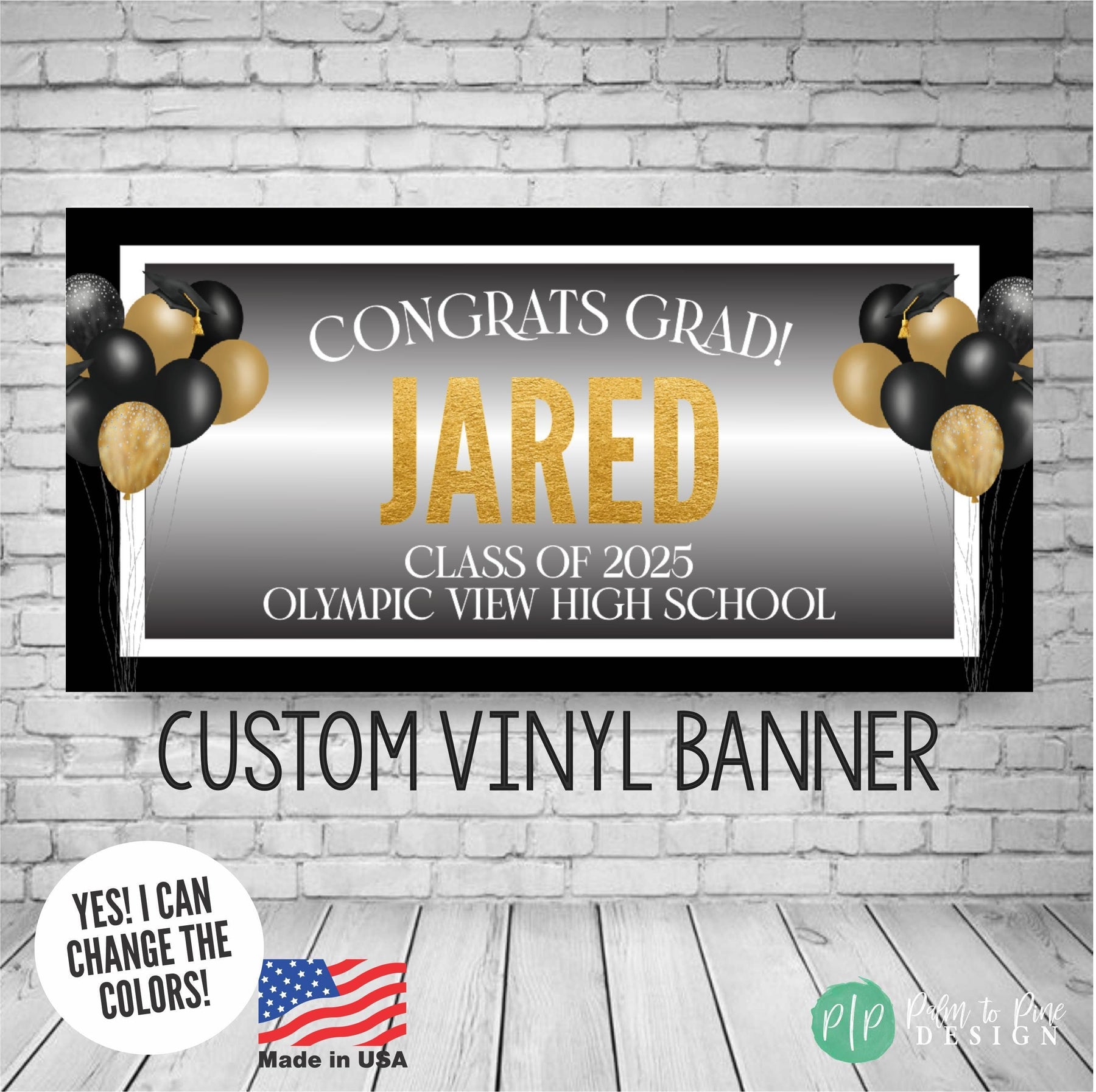 Make your graduates day special with a personalized banner that’s as unique as they are! This customized graduation party banner is the perfect way to show off your grad’s hard-earned accomplishments. The colors & wording on this graduation banner can be customized with any colors and wording, just include your request in your notes to seller section at checkout! This graduation banner would look perfect hanging outside your home, in your yard, behind a dessert table or even hanging in the halls of your school celebrating your 2025 graduates!