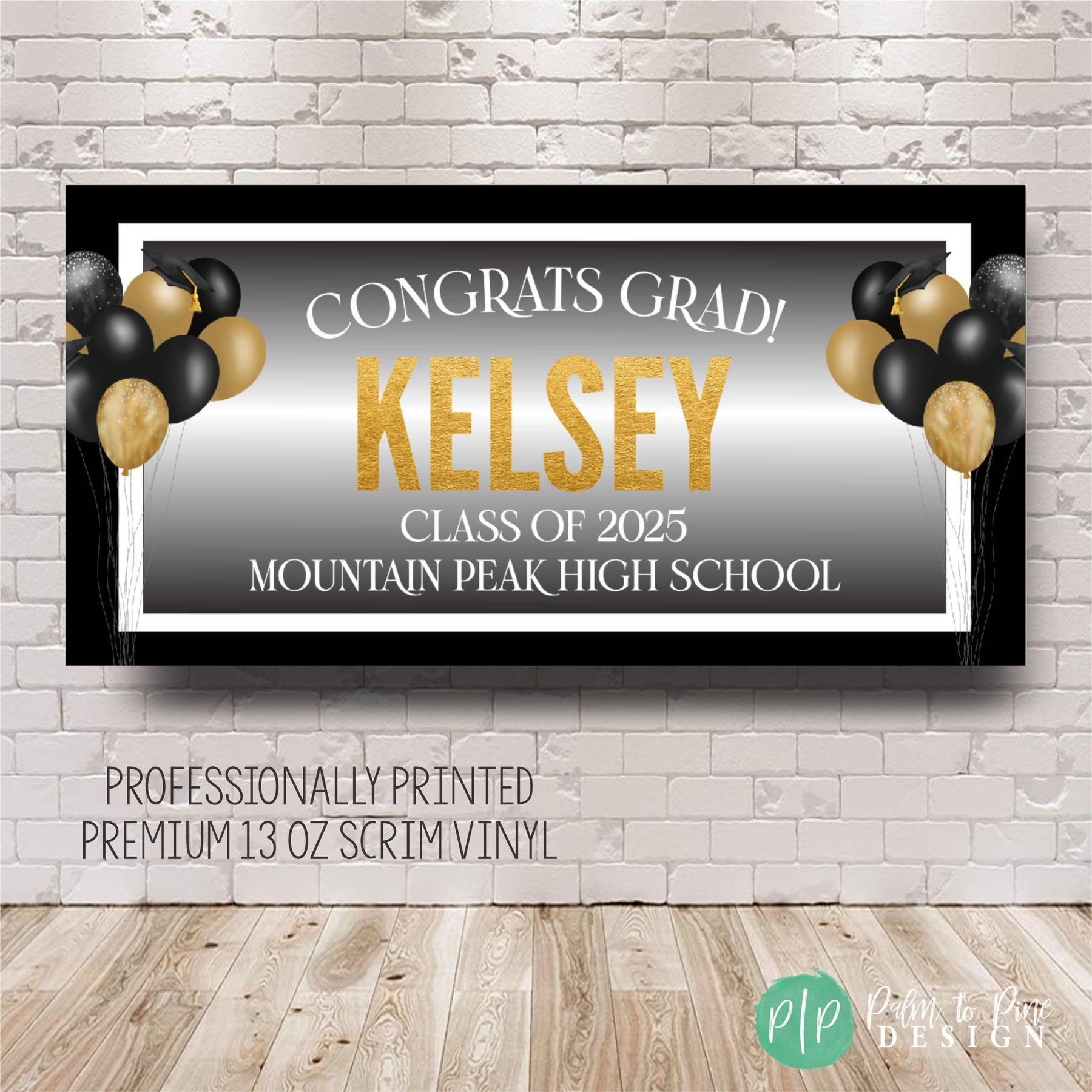 SPECS: The banner comes in two finishes, digital or printed. The printed banner is sized as an 18x36", 24x48", 30x60" or 36"x66", 42x84" or 48x96 and professionally printed on durable 13 oz scrim vinyl (this is a waterproof, super thick and highly durable banner that really makes a WOW statement at your graduates party)