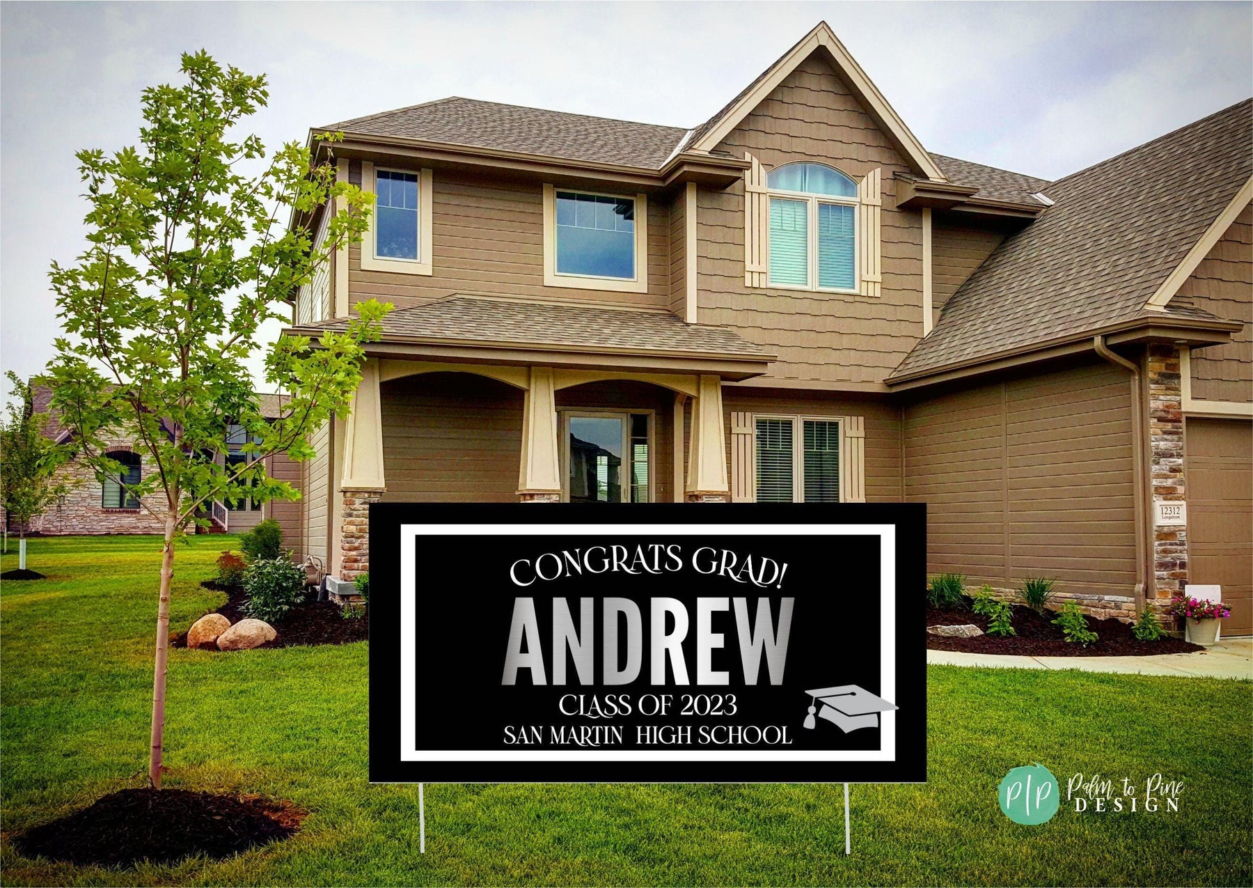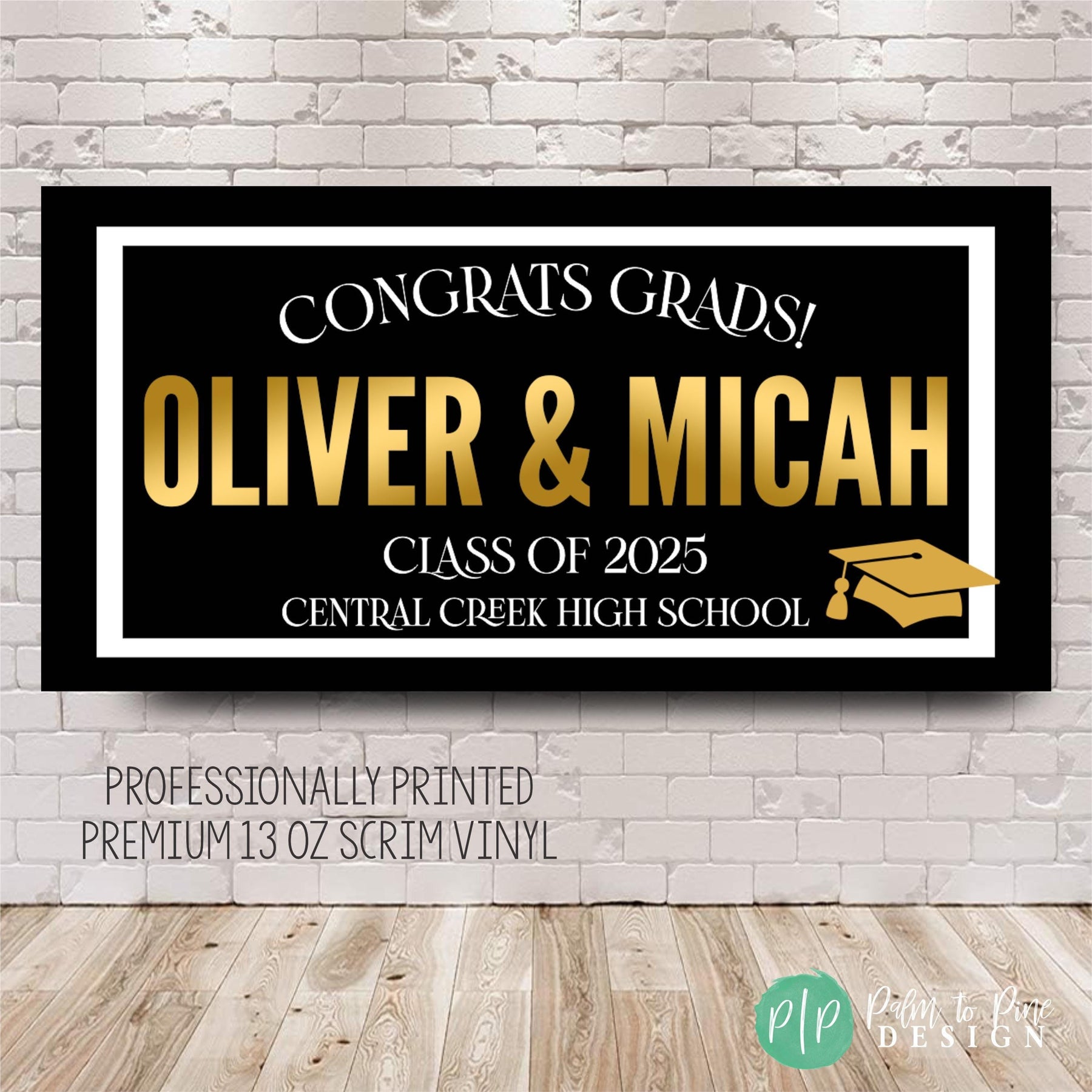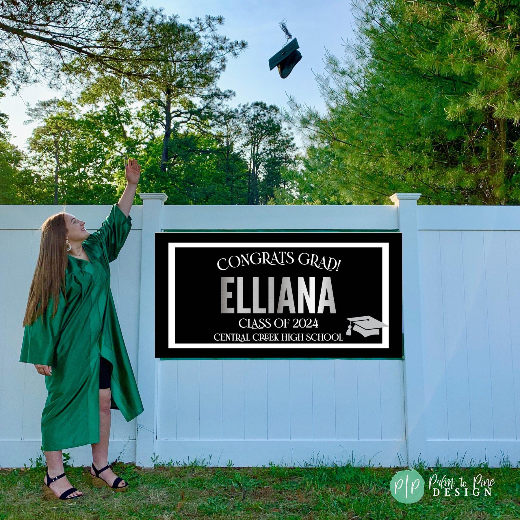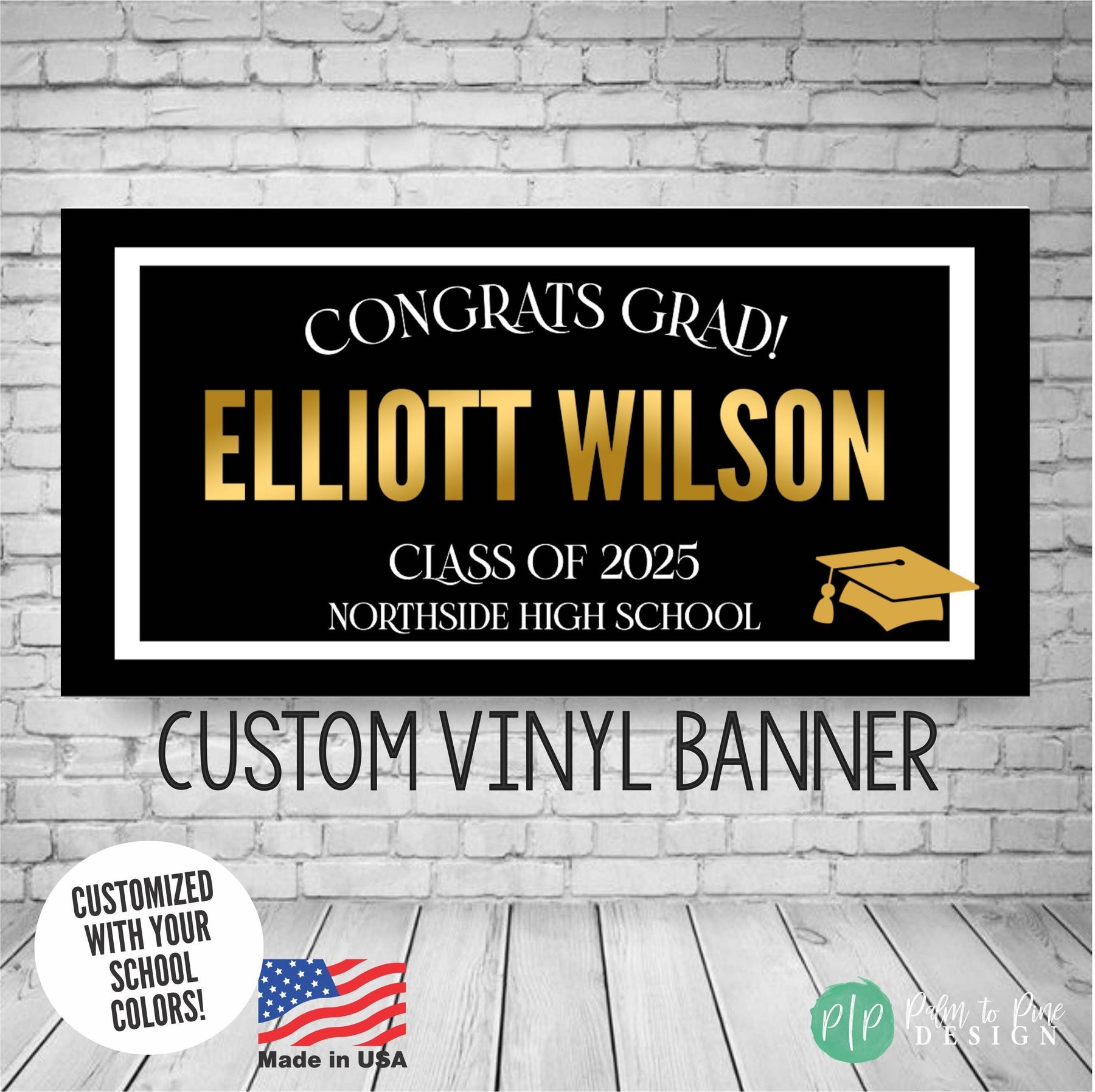 BANNER DETAILS: The banner comes in two finishes, digital or printed. The printed banner is sized as an 18x36", 24x48", 30x60" or 36"x66", 42x84" or 48x96 and professionally printed on durable 13 oz scrim vinyl (this is a waterproof, super thick and highly durable banner that really makes a WOW statement at your graduation party)