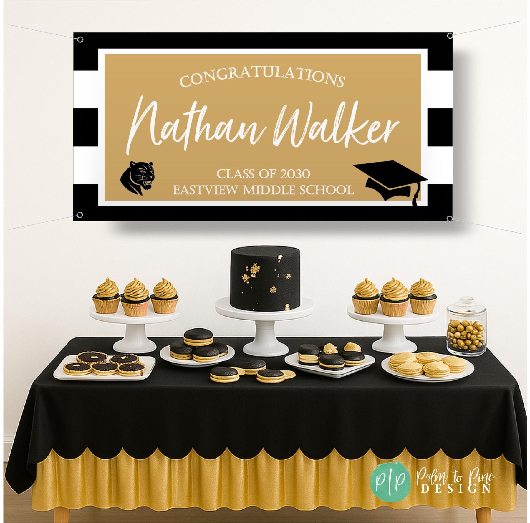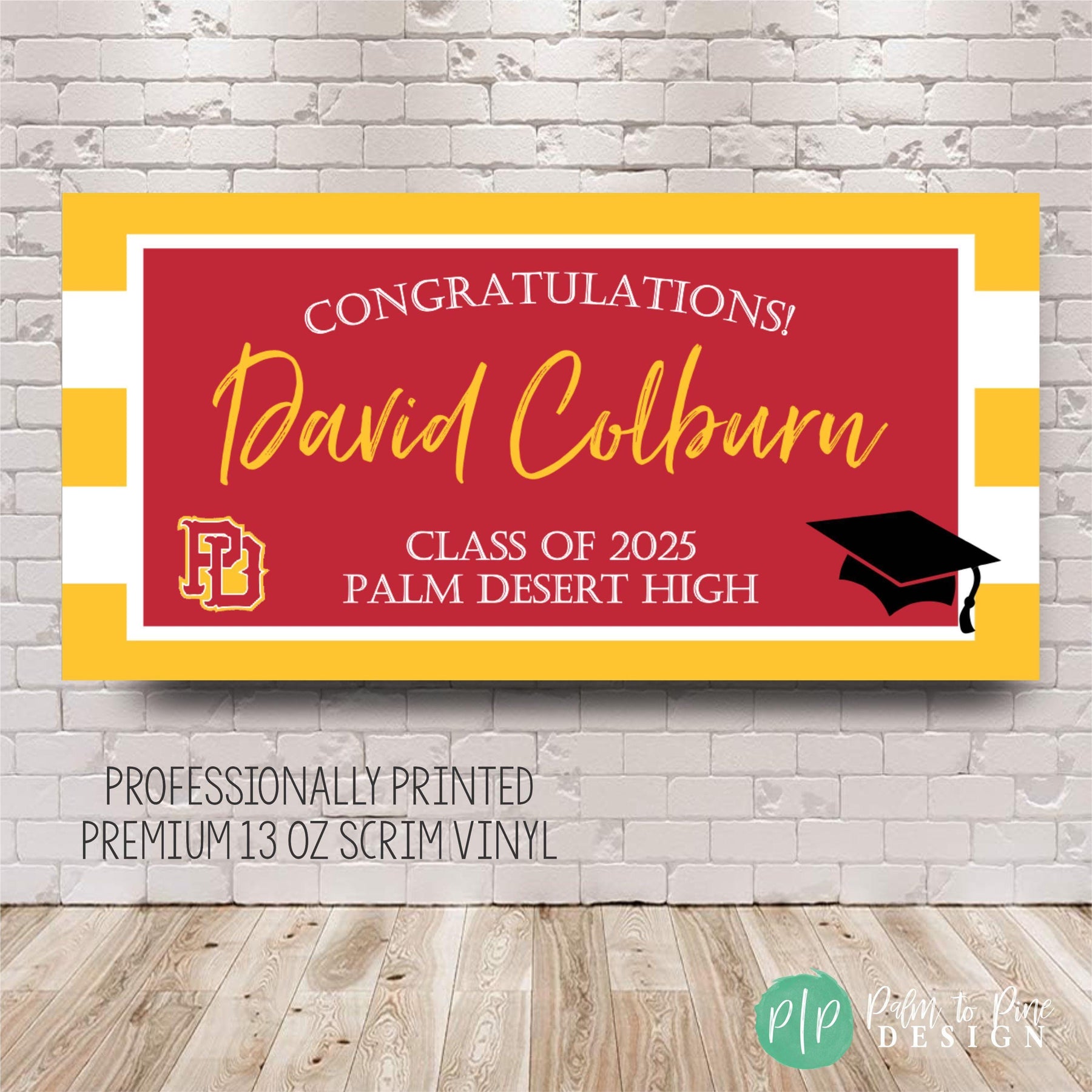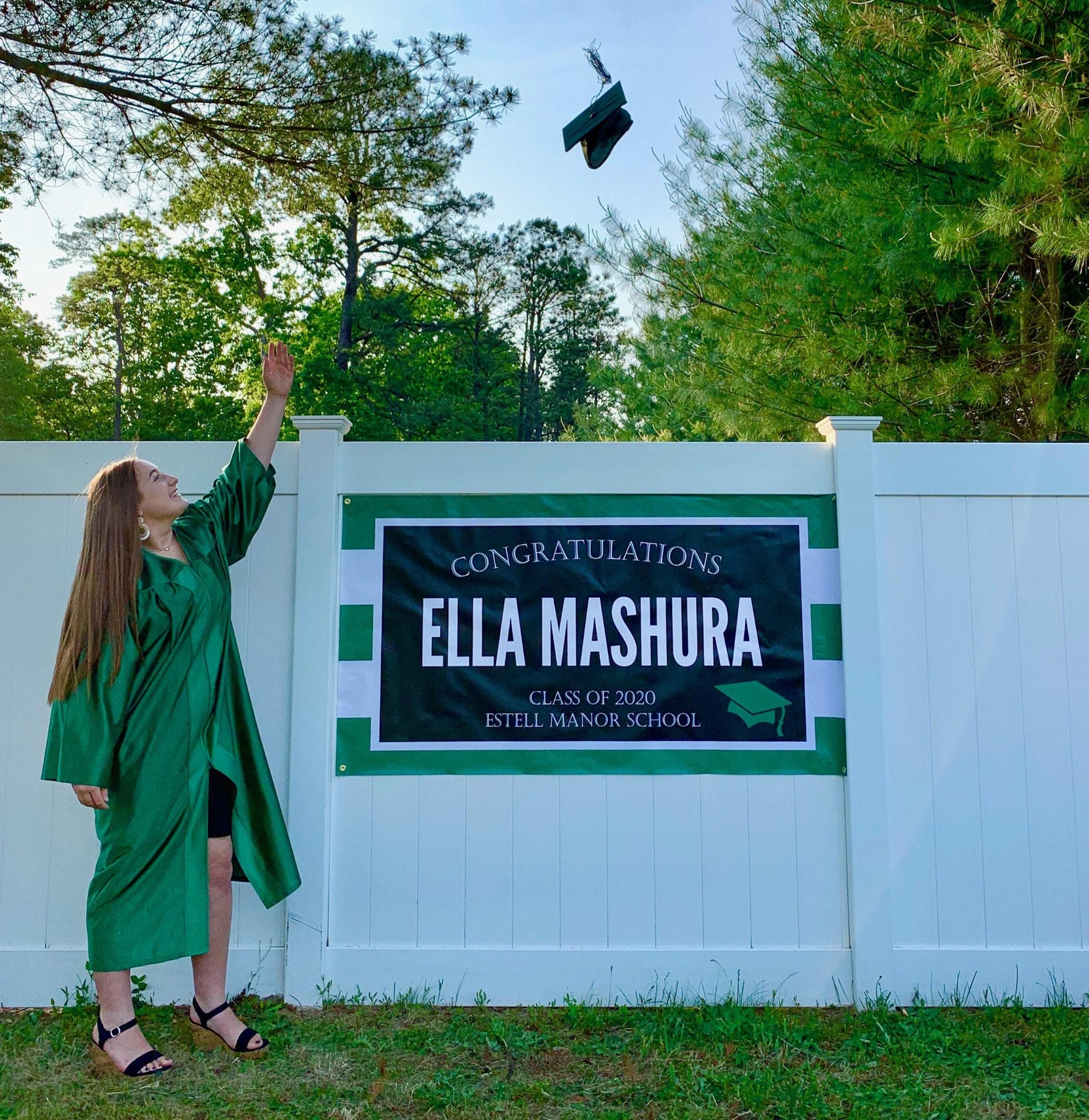 This custom graduation banner is perfect for celebrating your grad, whether from high school, college, or post-graduate study. Your graduation banner comes ready to display, with metal grommets in each of the four corners, making it simple to hang. You can also use additional supplies, like poles and string to showcase your banner in any location, indoors or outdoors!