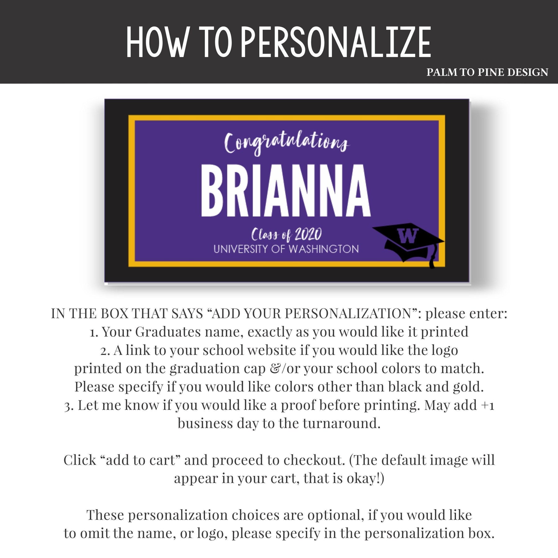 1. DIGITAL-EMAIL ONLY I send you the personalized banner file (usually same day) customized with your grads name and you print. *Nothing is mailed to you with the digital option* I will send you a high res JPEG via Email that you can print at home or a local printers. Usually sent within a few hours, but on rare occasion please allow 24 hours