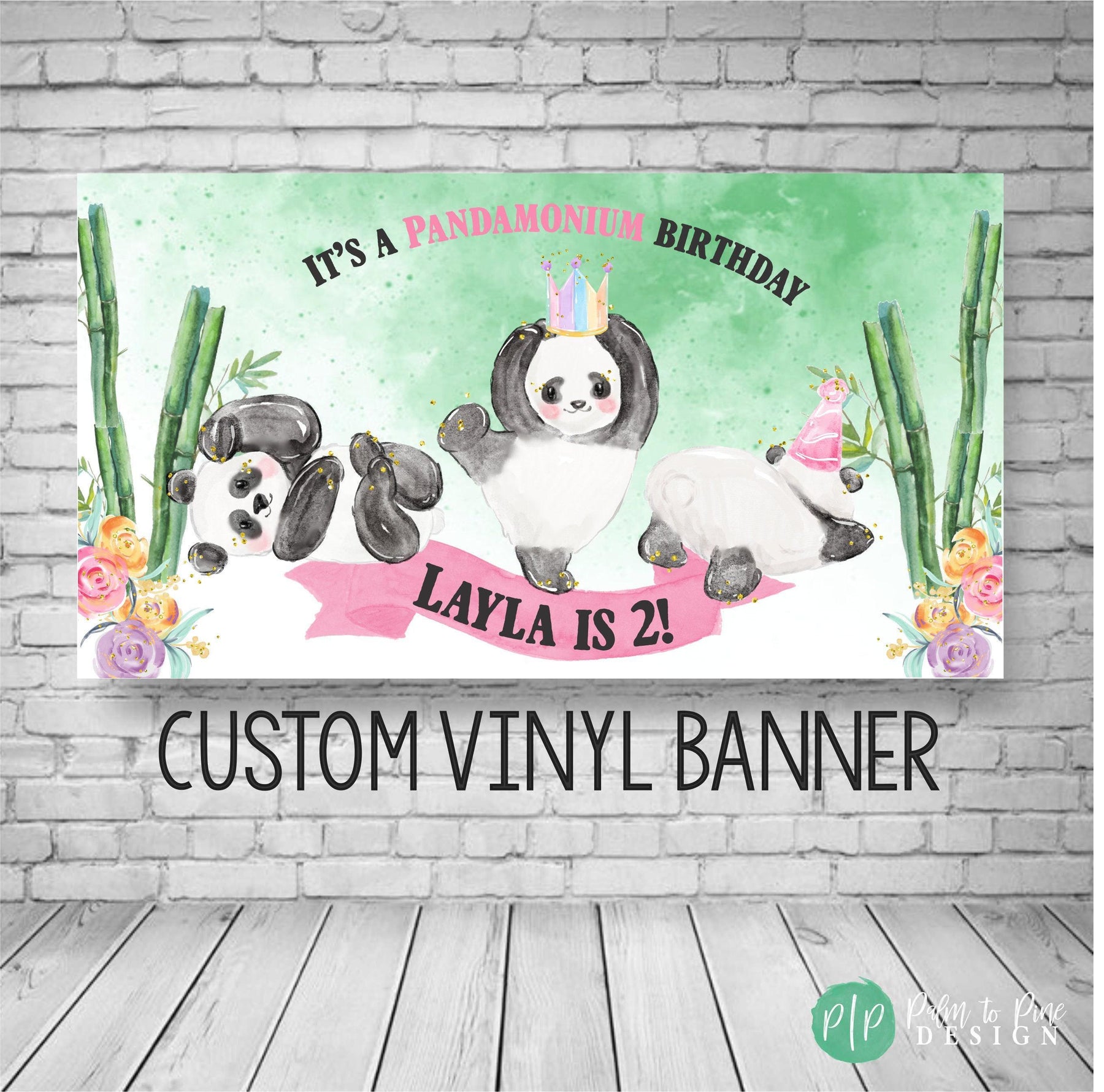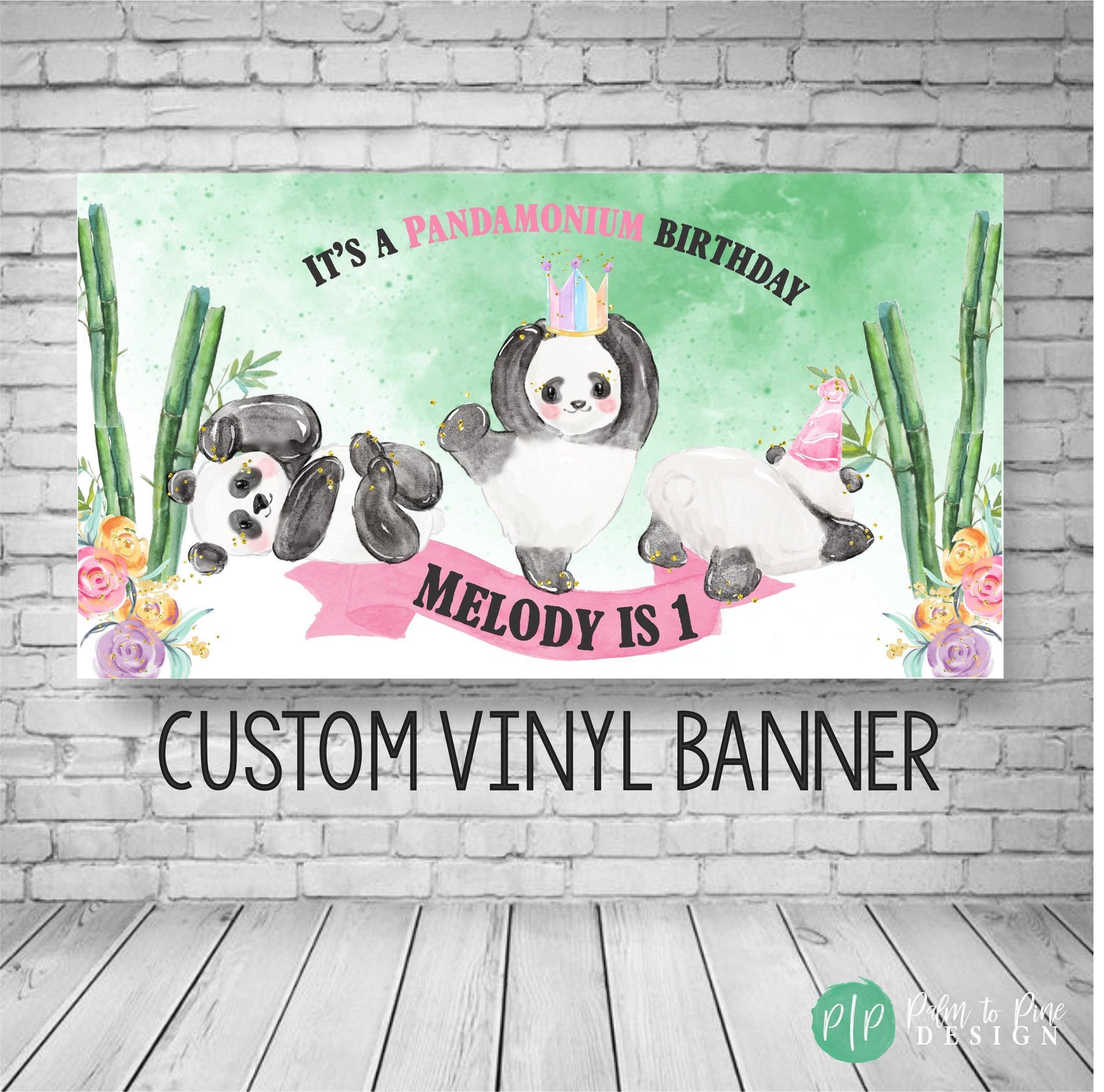 BANNER DETAILS: The banner comes in two finishes, digital or printed. The printed banner is sized as an 18x36", 24x48", 30x60" or 36"x66", 42x84" or 48x96 and professionally printed on durable 13 oz scrim vinyl (this is a waterproof, super thick and highly durable banner that really makes a WOW statement at your panda birthday party!)