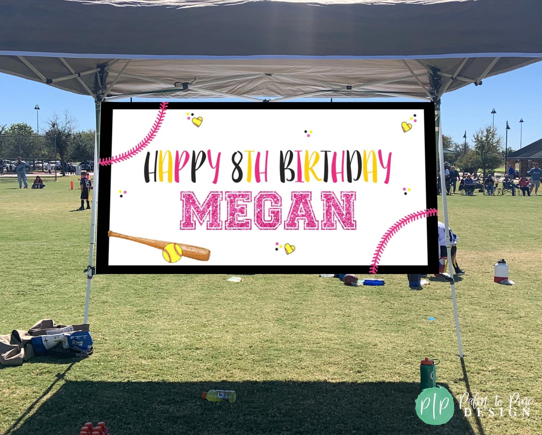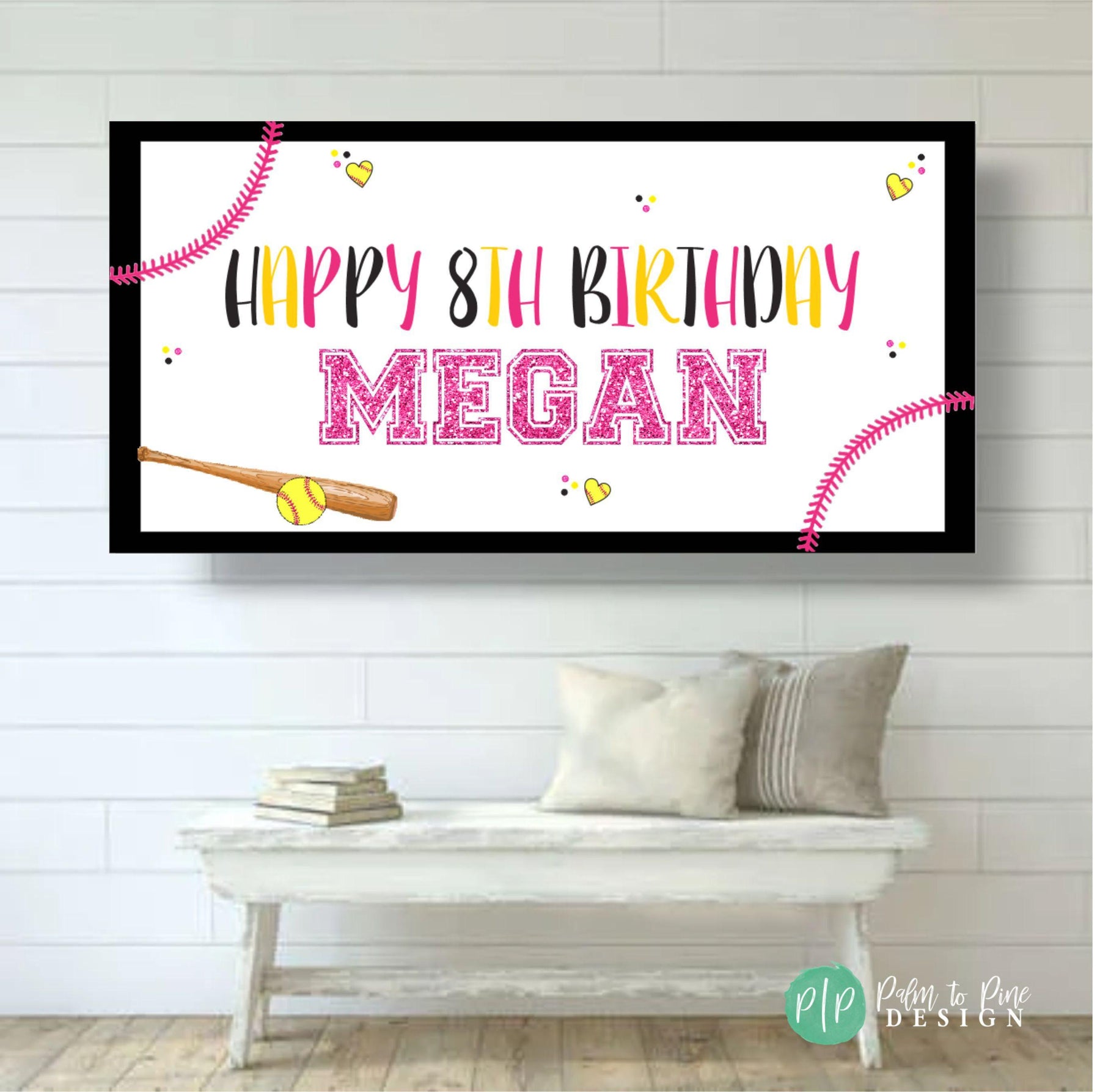 This personalized softball birthday banner is perfect for celebrating your daughter's softball themed birthday party or girls end of the season banner! This customized birthday banner is personalized with your name and age, or custom message. This indoor or outdoor softball Happy Birthday Banner is the perfect way to celebrate a birthday and the high quality vinyl will last for years. This banner would look perfect at the ball field hanging next to the dugout or inside a hotel room while your team is traveling in a tournament.. so many possibilities!