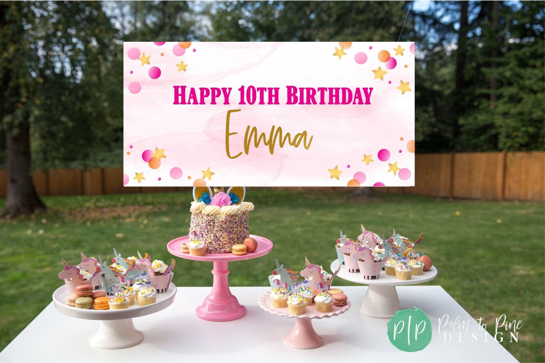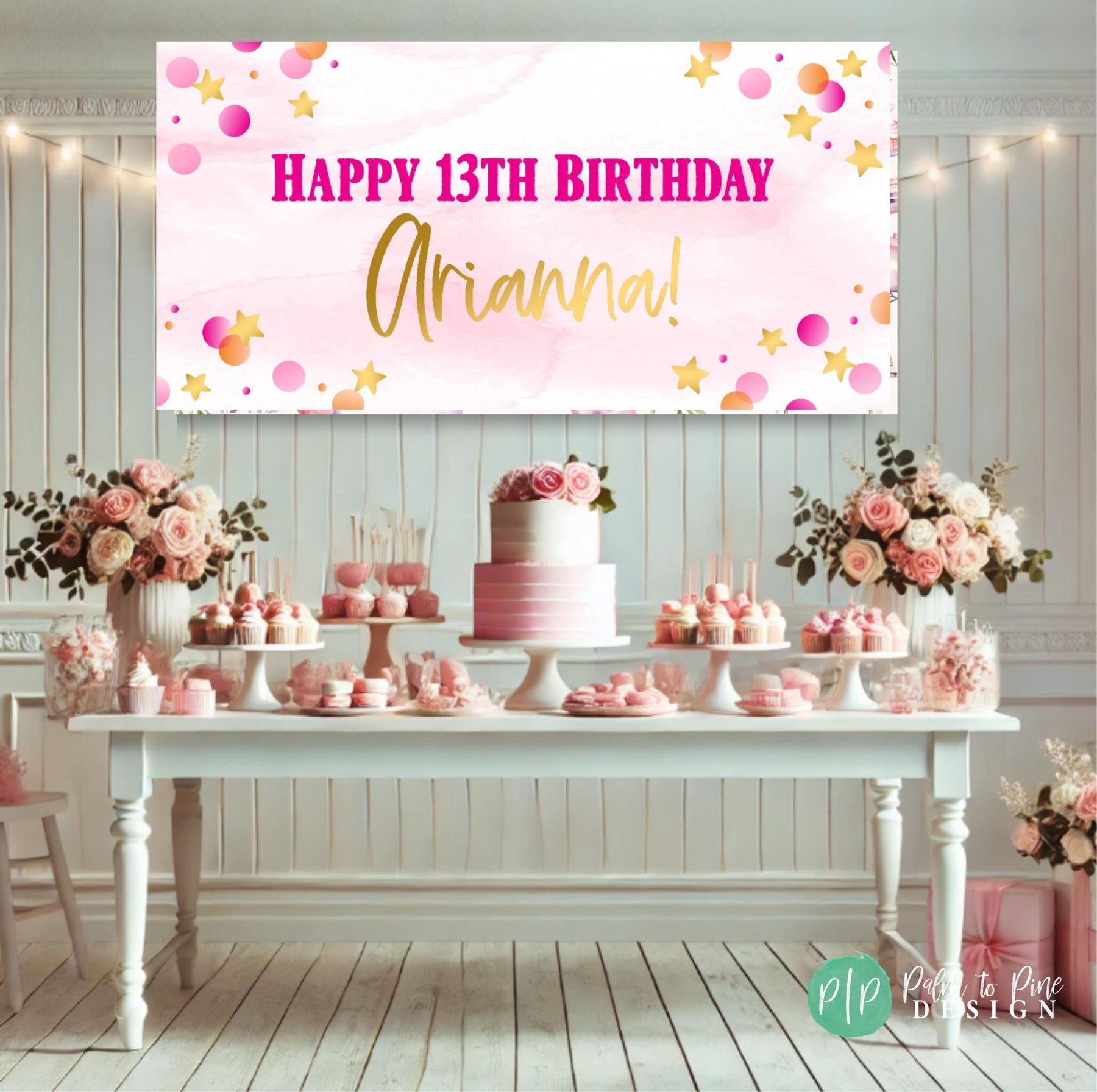 BANNER DETAILS: The banner comes in two finishes, digital or printed. The printed banner is sized as an 18x36", 24x48", 30x60" or 36"x66", 42x84" or 48x96 and professionally printed on durable 13 oz scrim vinyl (this is a waterproof, super thick and highly durable banner that really makes a WOW statement at your girls birthday party!)