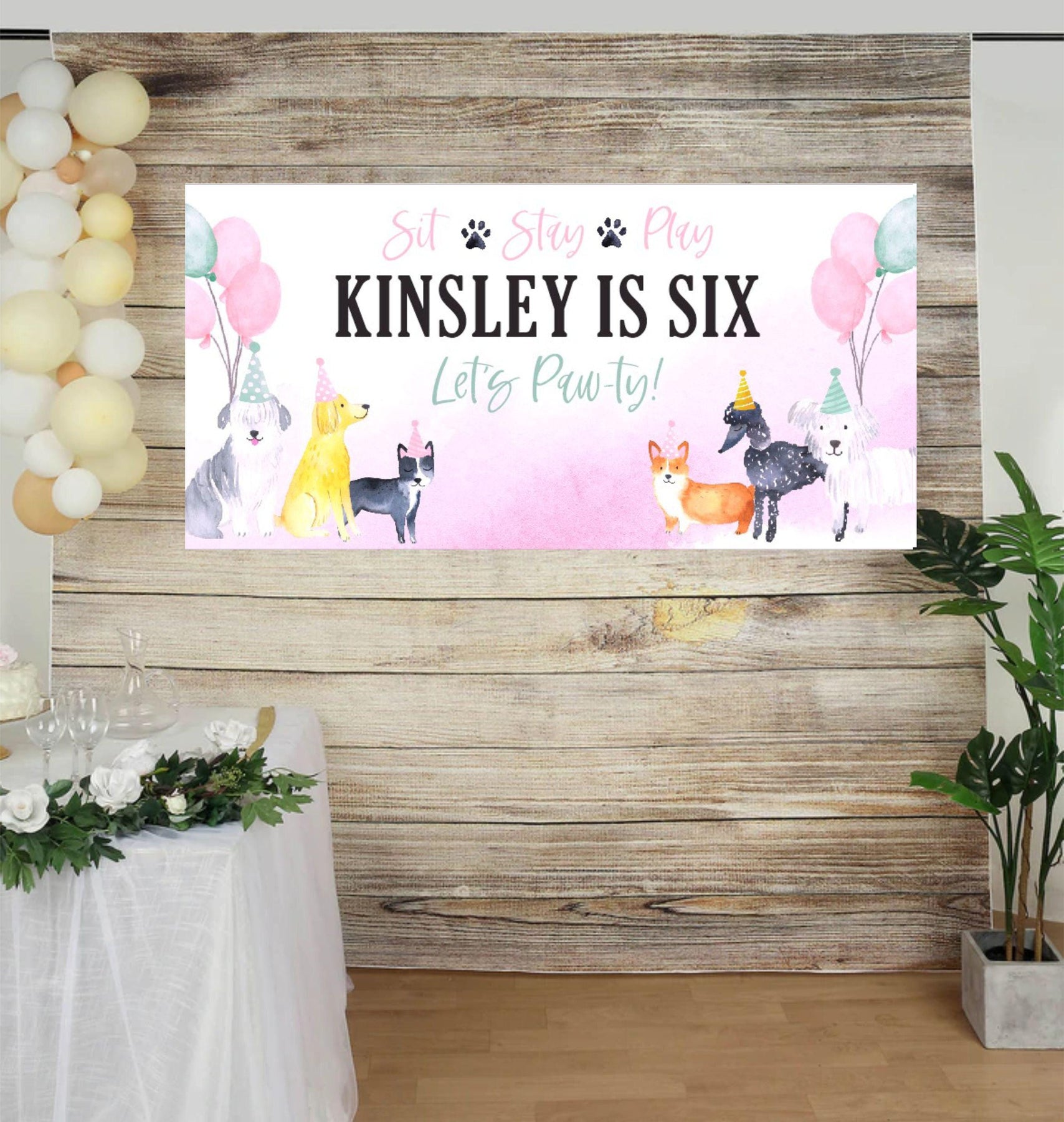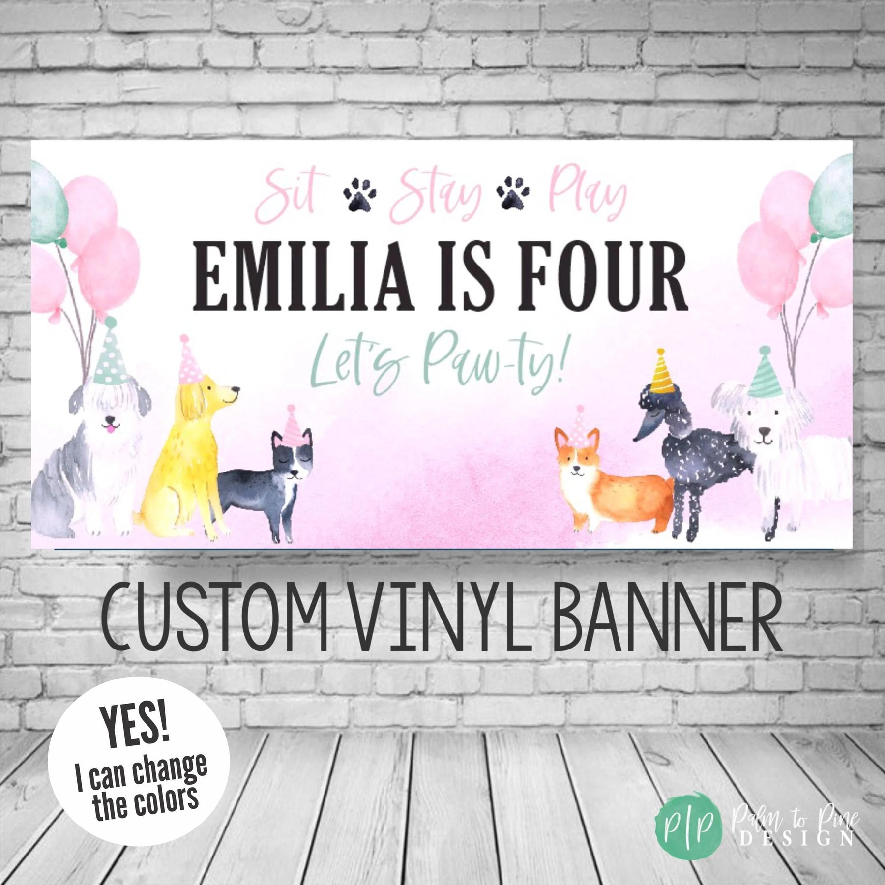 Use this durable personalized vinyl banner for a outdoor welcome sign at a dog themed birthday, as a photo backdrop for pictures or this vinyl banner makes the perfect decoration for behind a dessert table at a dog party. YES! This dog party banner can be customized for siblings, twins or even a party for your dog, just include your request in your notes to seller section at checkout! The colors won't fade in the sun and the banner can be hung in your kids bedroom after the party is over!