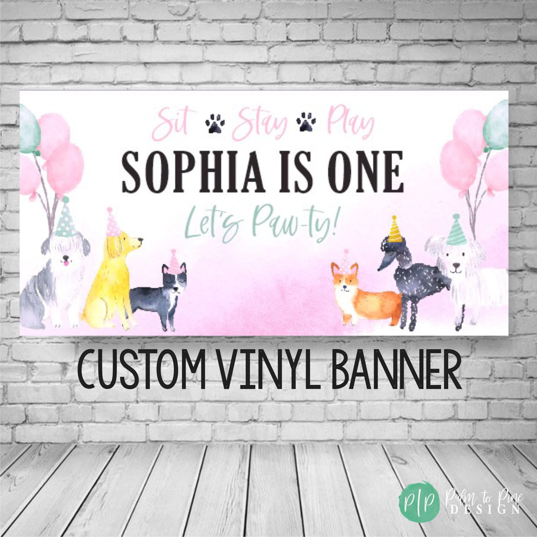 BANNER DETAILS: The banner comes in two finishes, digital or printed. The printed banner is sized as an 18x36", 24X48", 30x60," 36x66," 42x84" or 48x96" and professionally printed on durable 13 oz scrim vinyl (this is a waterproof, super thick and highly durable banner that really makes a WOW statement at your dog themed birthday party!)