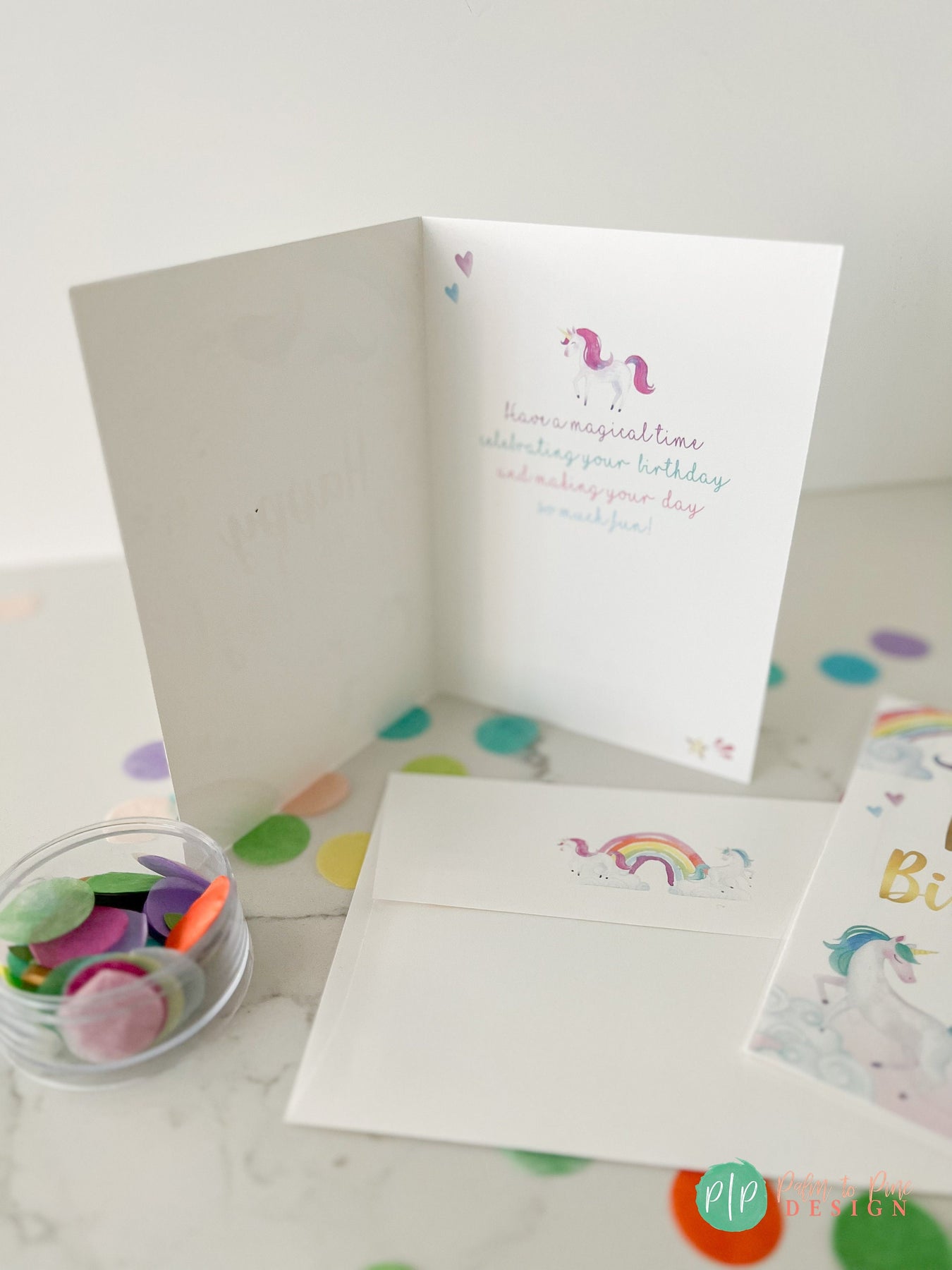 ~Envelope: Printed unicorns and rainbows on the Envelope Flap