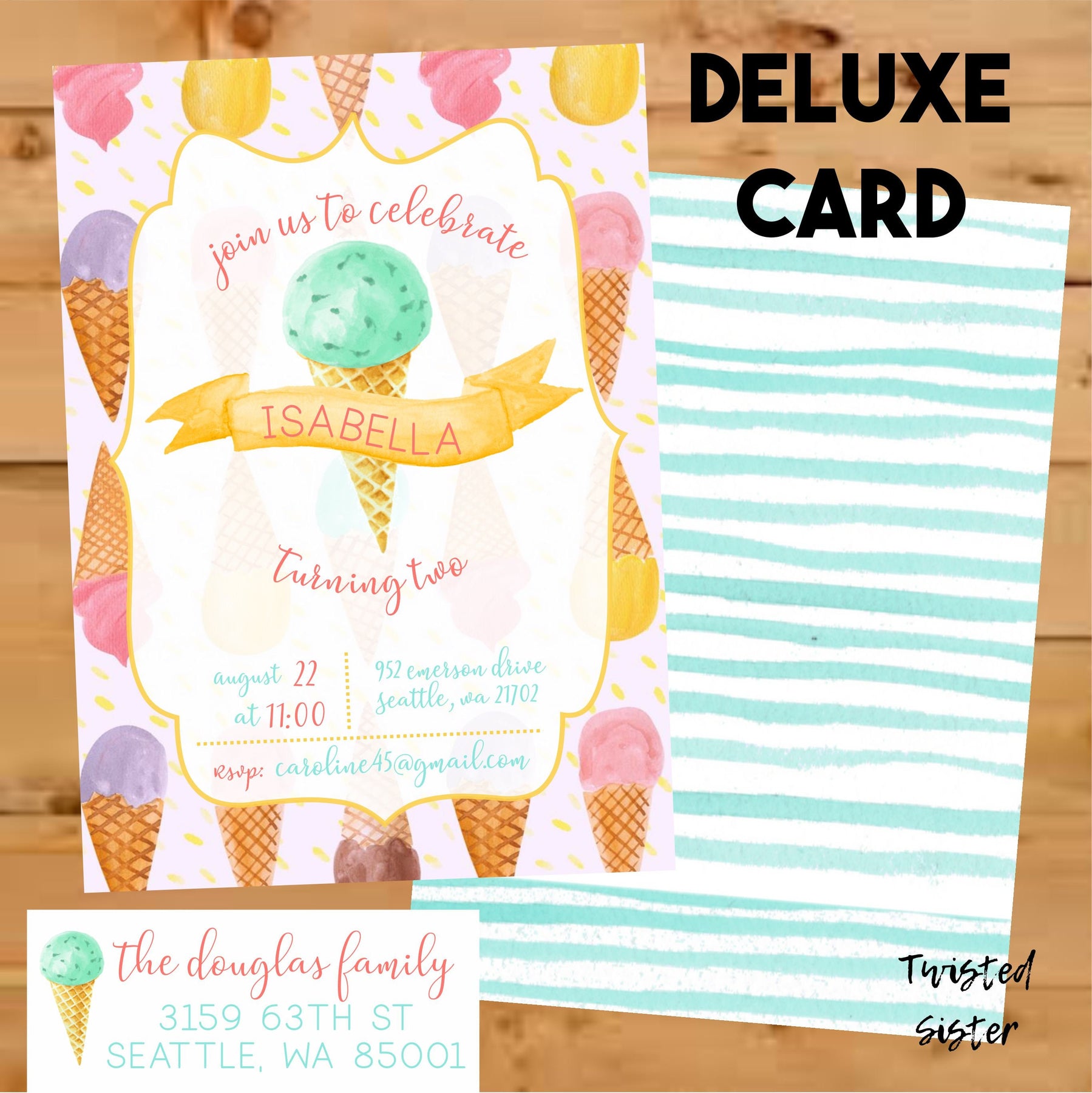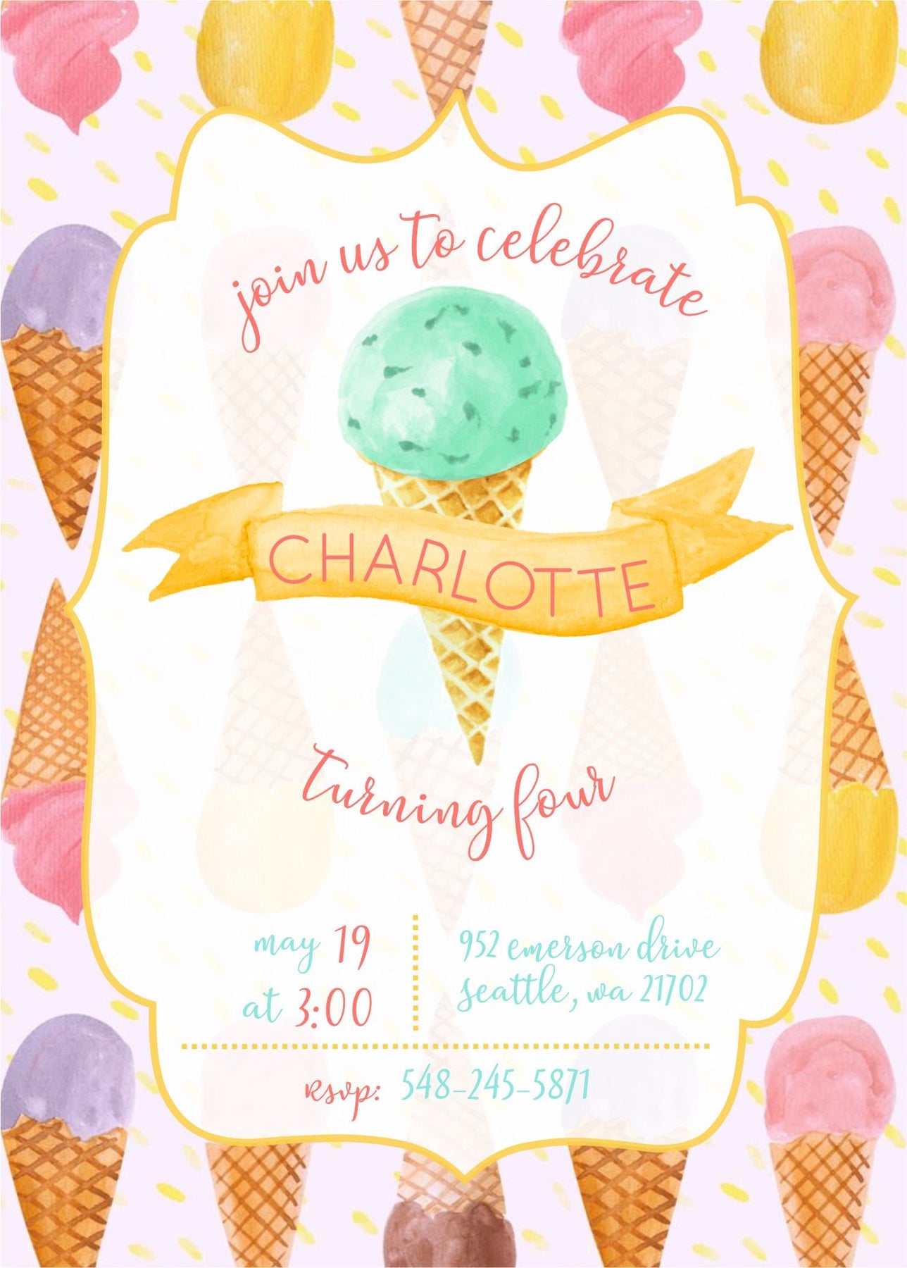 This Watercolor Ice Cream Birthday Invitation is the perfect invite to celebrate your sweet girls birthday at an Ice Cream Social. The wording and colors can be changed making this the perfect invite for boys, girls, twins or siblings turning any age, not just a first birthday! This fun and colorful ice cream invitation is also great for a gender neutral baby shower, boys, girls or twins baby shower sprinkle.