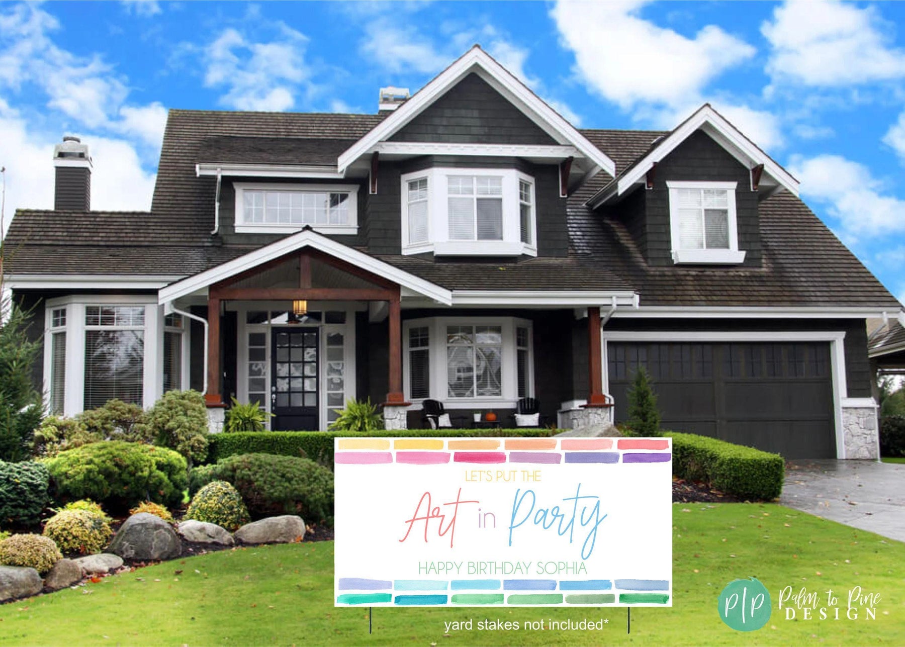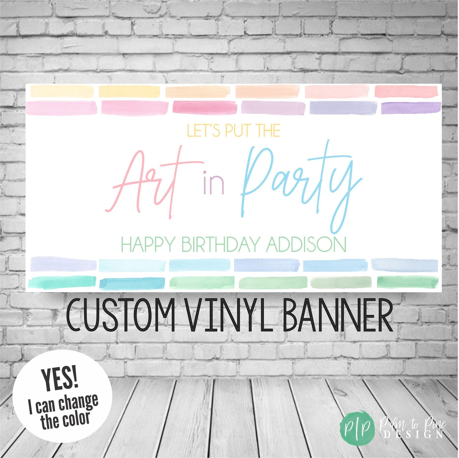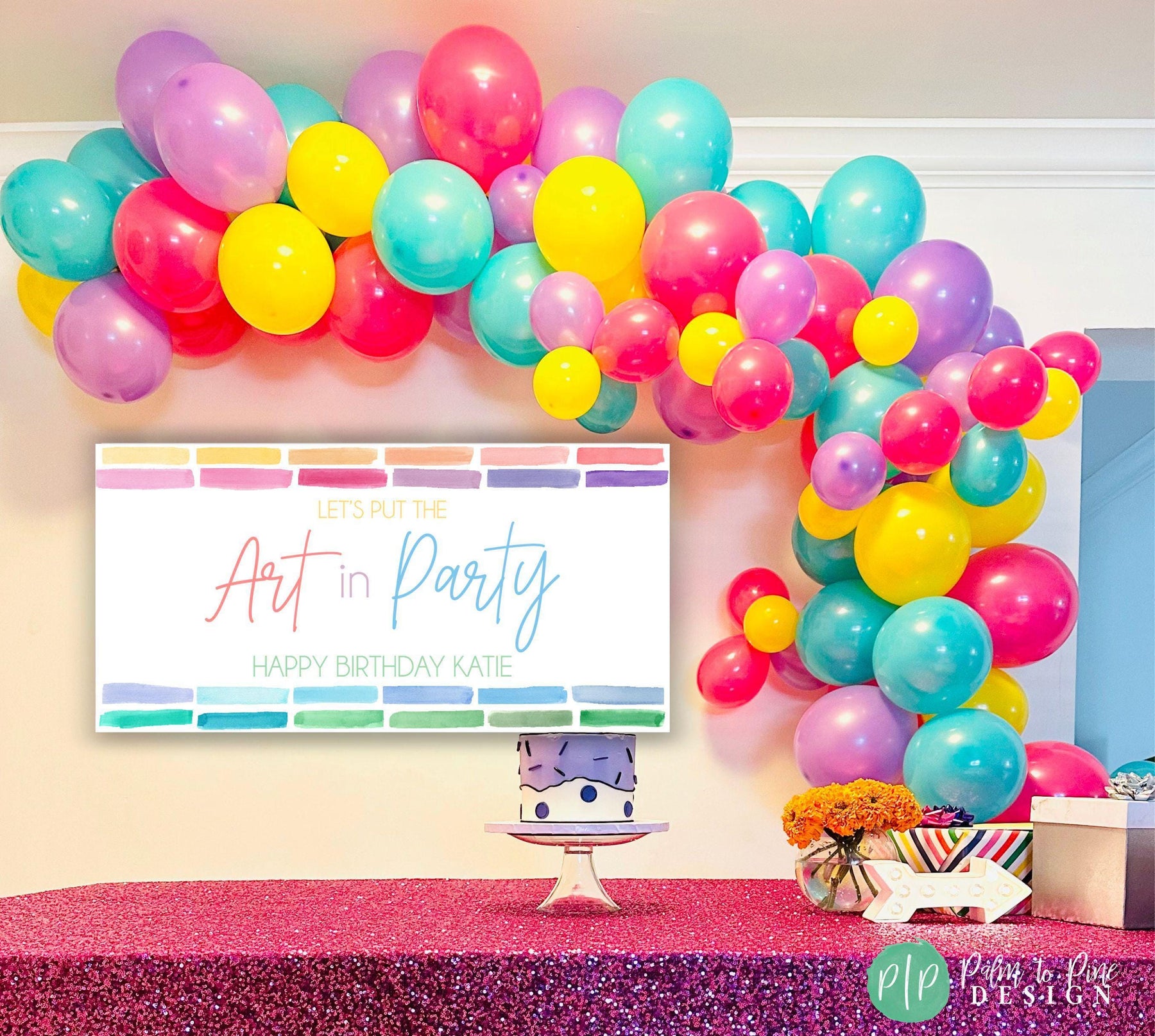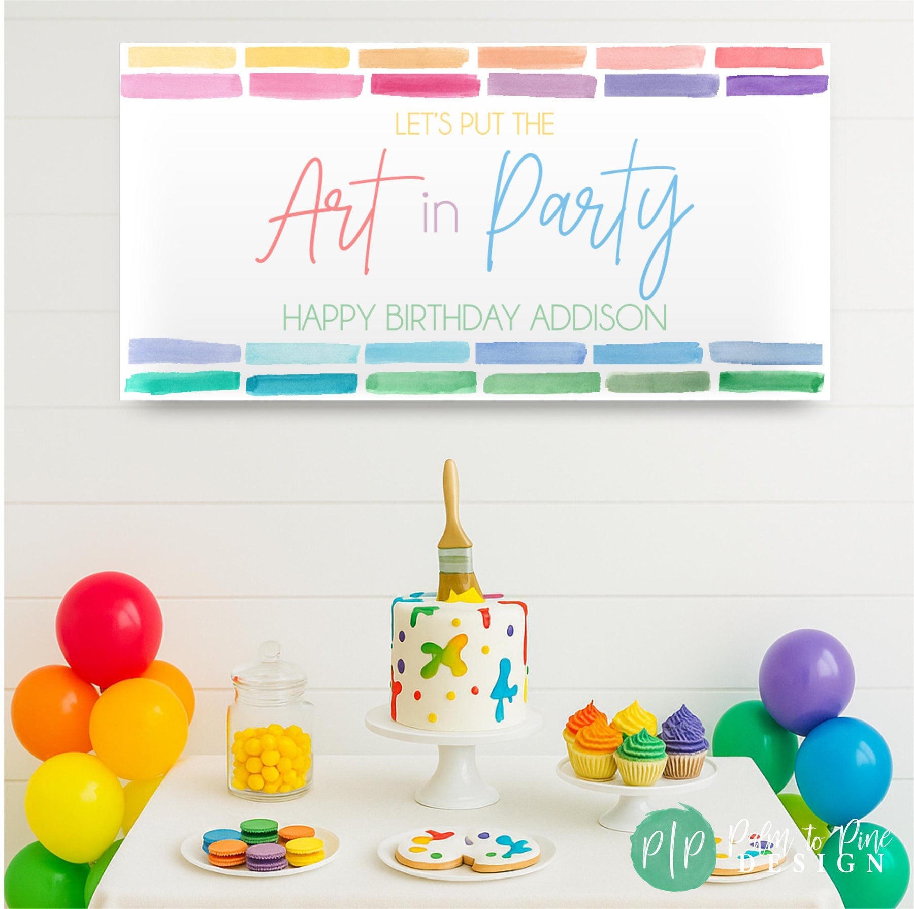 Celebrate your artist’s birthday with a custom rainbow watercolor paint birthday party banner! Personalized with your child’s name and featuring a rainbow color palette design, this cheerful banner adds a creative touch to any art-themed party. Whether hung in an art studio, at the venue, or above the dessert table, it’s the perfect way to brighten up the celebration.