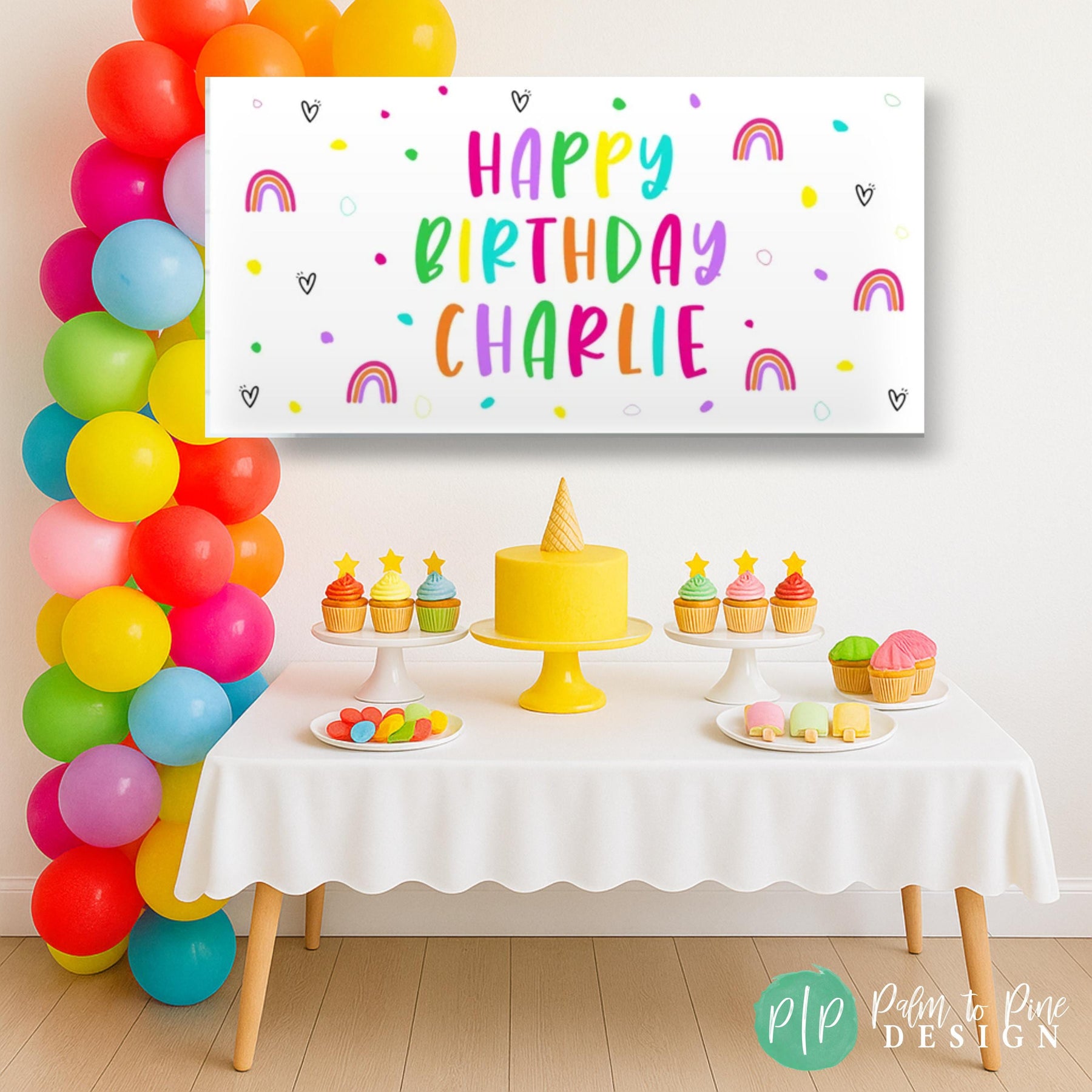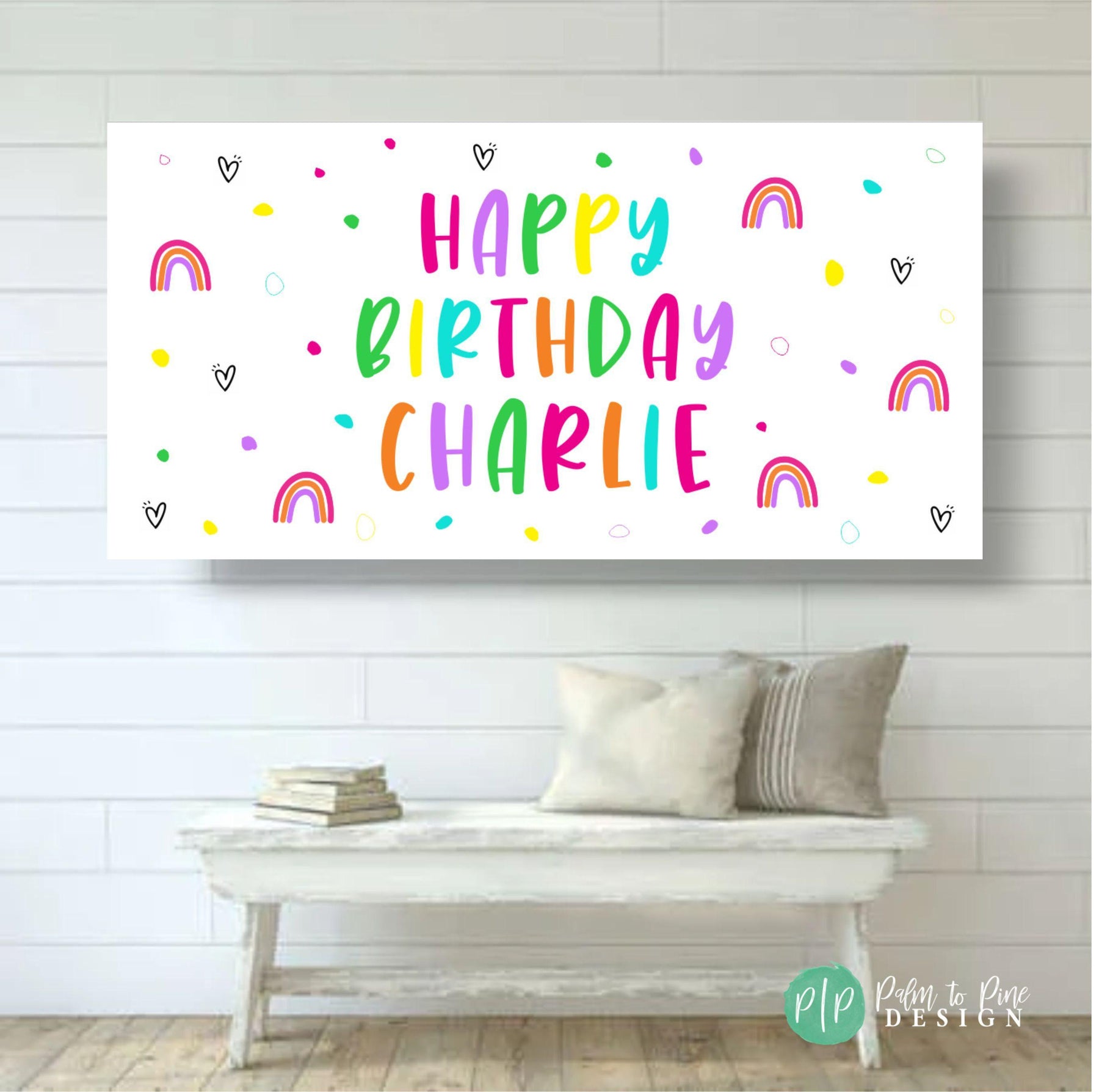 This personalized rainbow and polka dot birthday banner is perfect for celebrating your little girl or tween's birthday with these bright polka dots, rainbows and hearts! So bright and cheery! This colorful banner can be used year after year for birthday decor. This custom Happy Birthday Banner is the perfect way to celebrate and can be used for a little girl, tween, teenager or adult!
