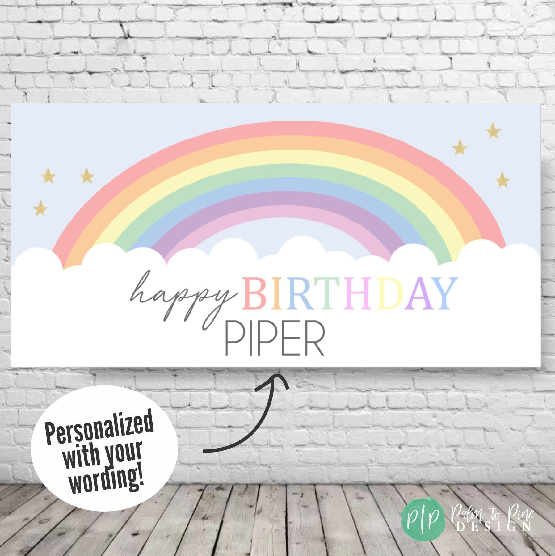 BANNER DETAILS: The banner comes in two finishes, digital or printed. The printed banner is sized as an 18x36", 24x48", 30x60" or 36"x66", 42x84" or 48x96 and professionally printed on durable 13 oz scrim vinyl (this is a waterproof, super thick and highly durable banner that really makes a WOW statement at your rainbow birthday party!)