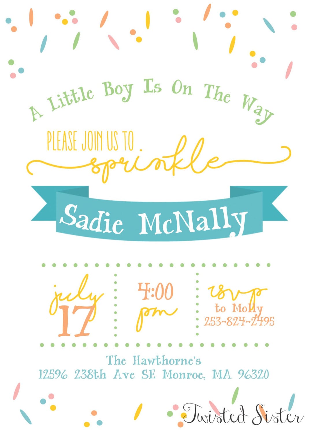 Rainbow Sprinkle Baby Shower Invitation: Gender Neutral or Custom Colors
