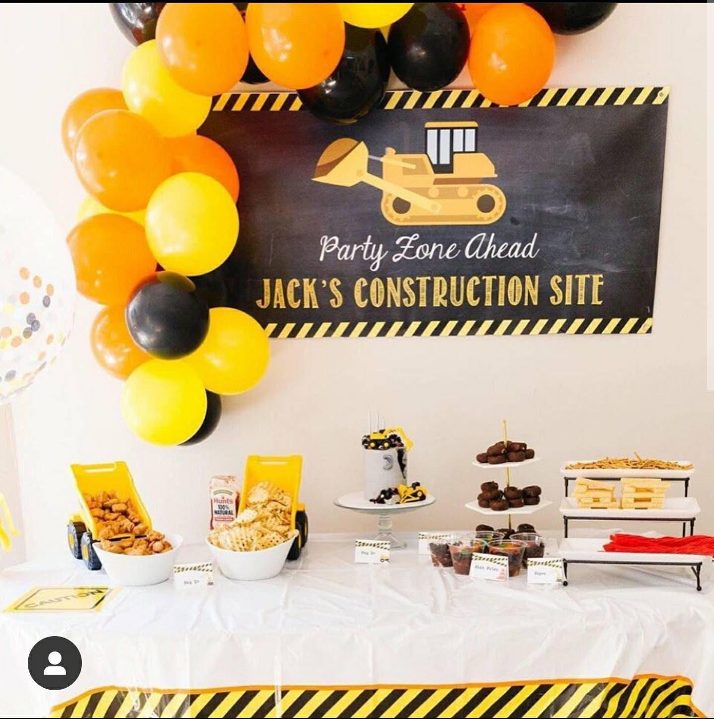 This modern chalkboard style black and yellow Construction Banner is the perfect personalized backdrop to make a statement for your Little Construction Workers Birthday party. The wording on this vinyl dump truck banner can be customized too for any type of party, just include your request in your notes to seller section at checkout! This construction birthday banner is perfect for dessert table backdrops, welcome banners or outdoor birthdays at parks!