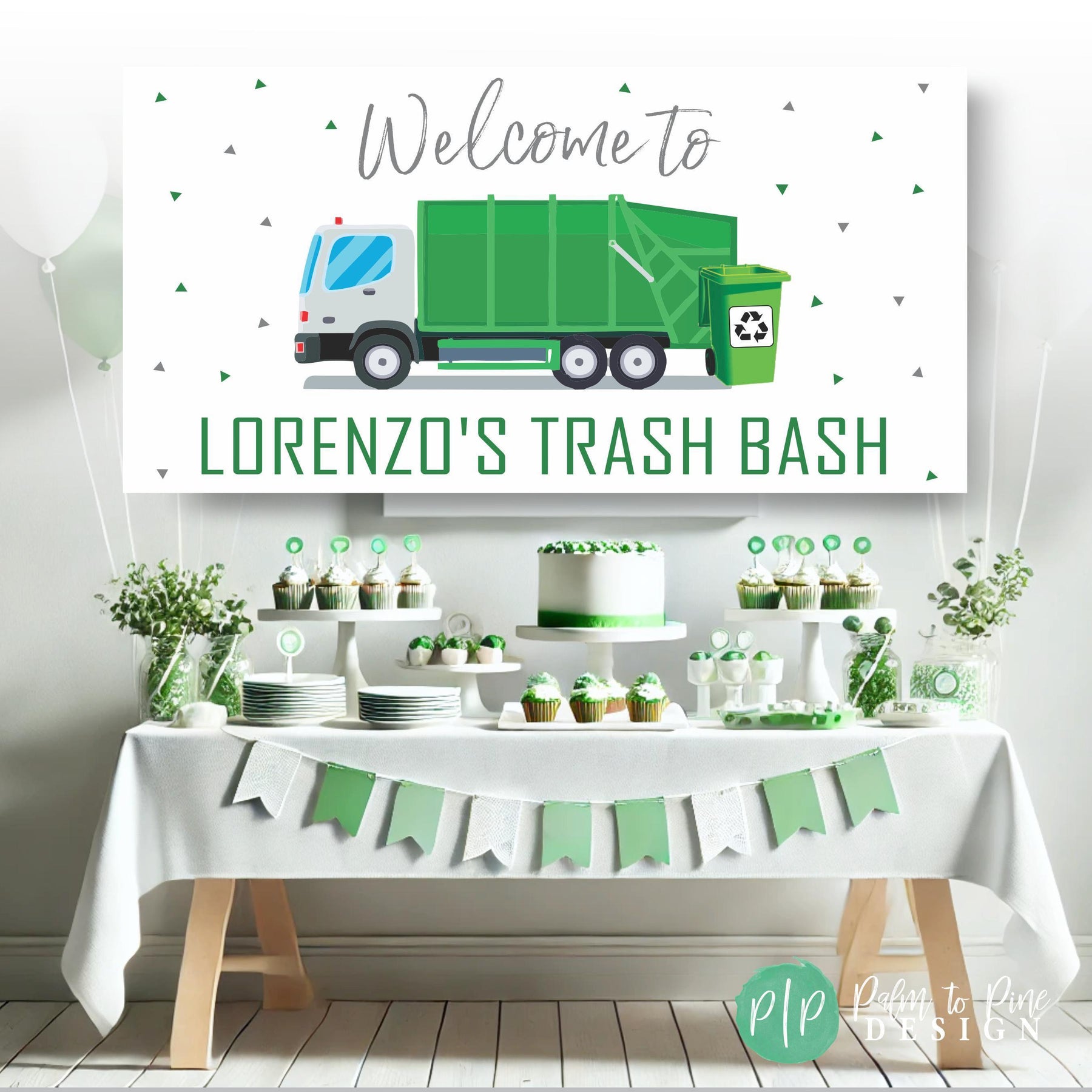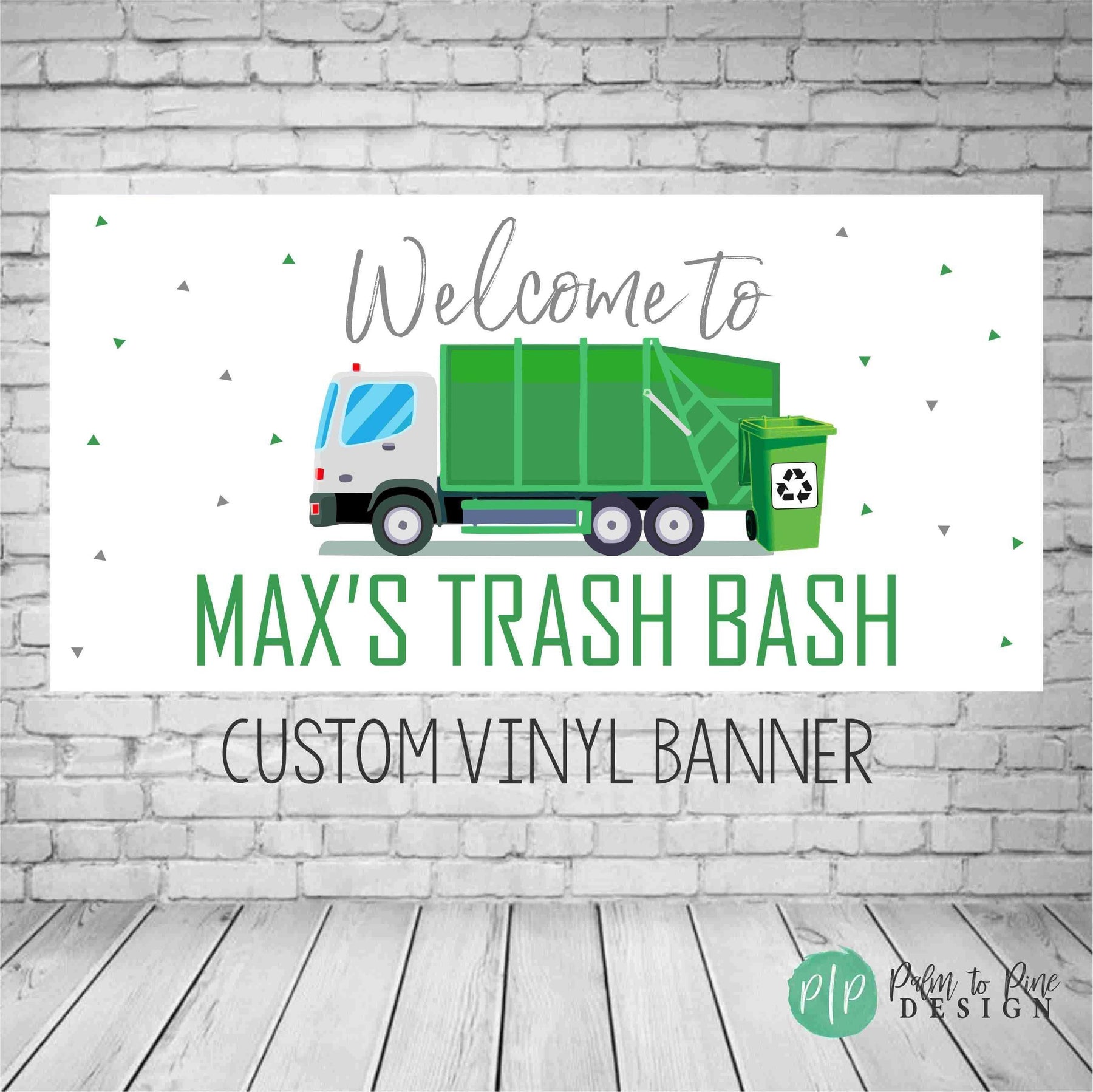 This modern Garbage Truck Banner is the perfect decoration to make a statement for your Trash truck lovers trash bash Birthday party! The wording on this garbage truck party banner can be customized too for any type of party, just include your request in your notes to seller section at checkout! This trash bash photo backdrop makes the perfect dessert table decoration, welcome banner from the party, or photo booth backdrop for your garbage truck birthday party and will be a sure hit for your custom birthday decorations!