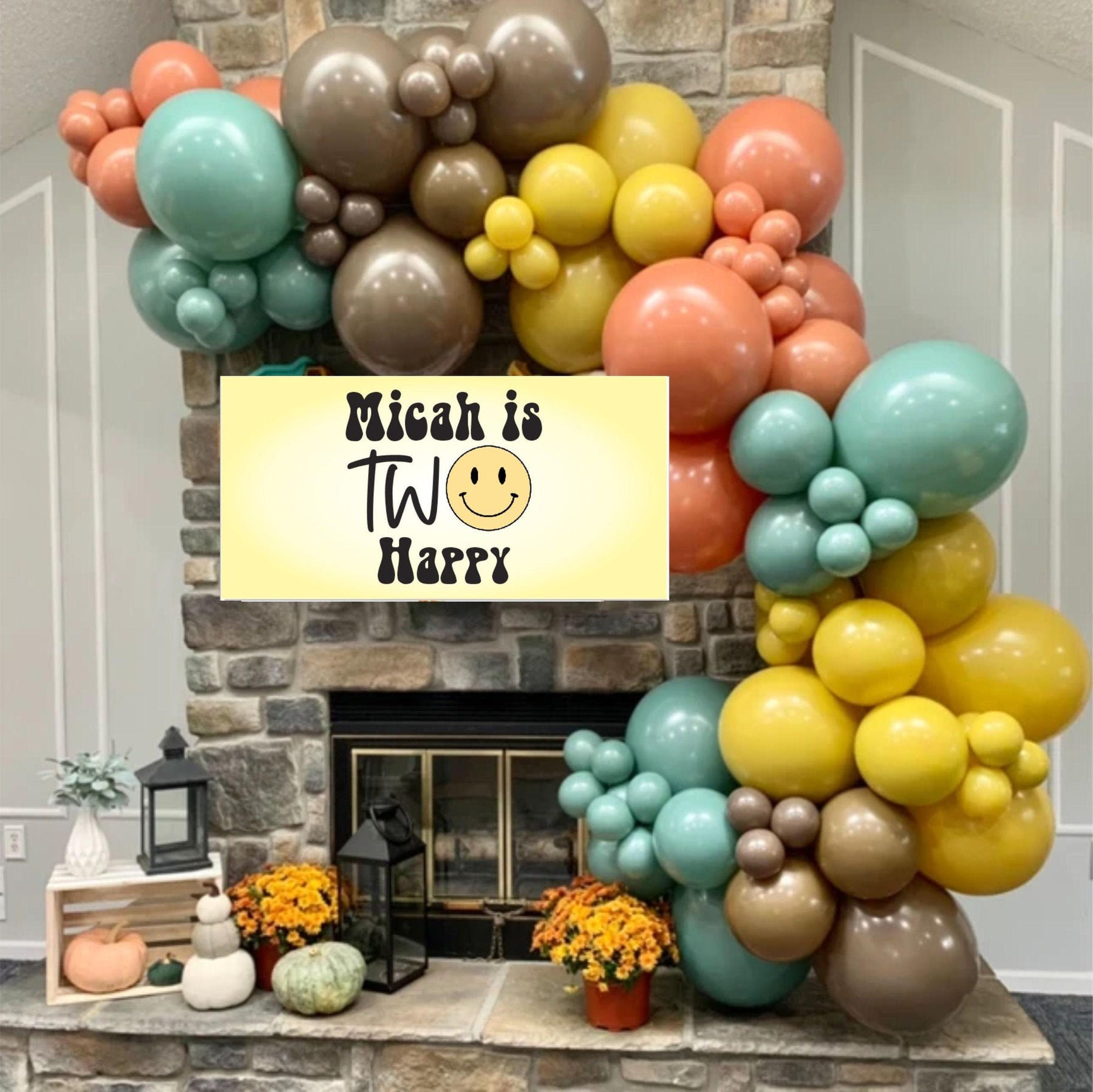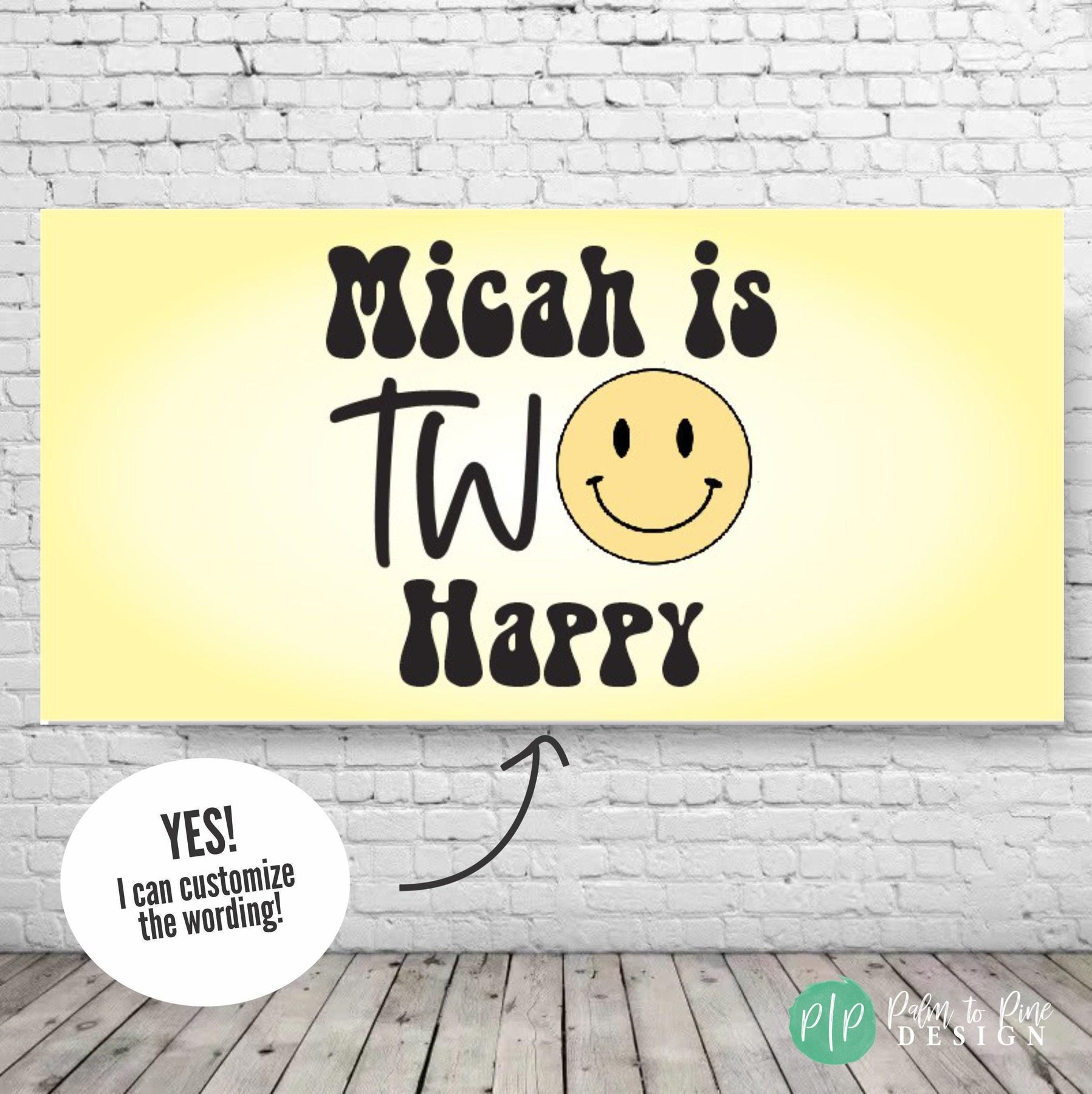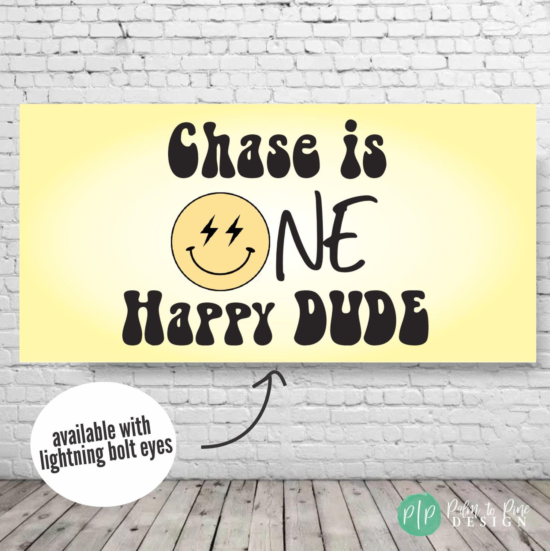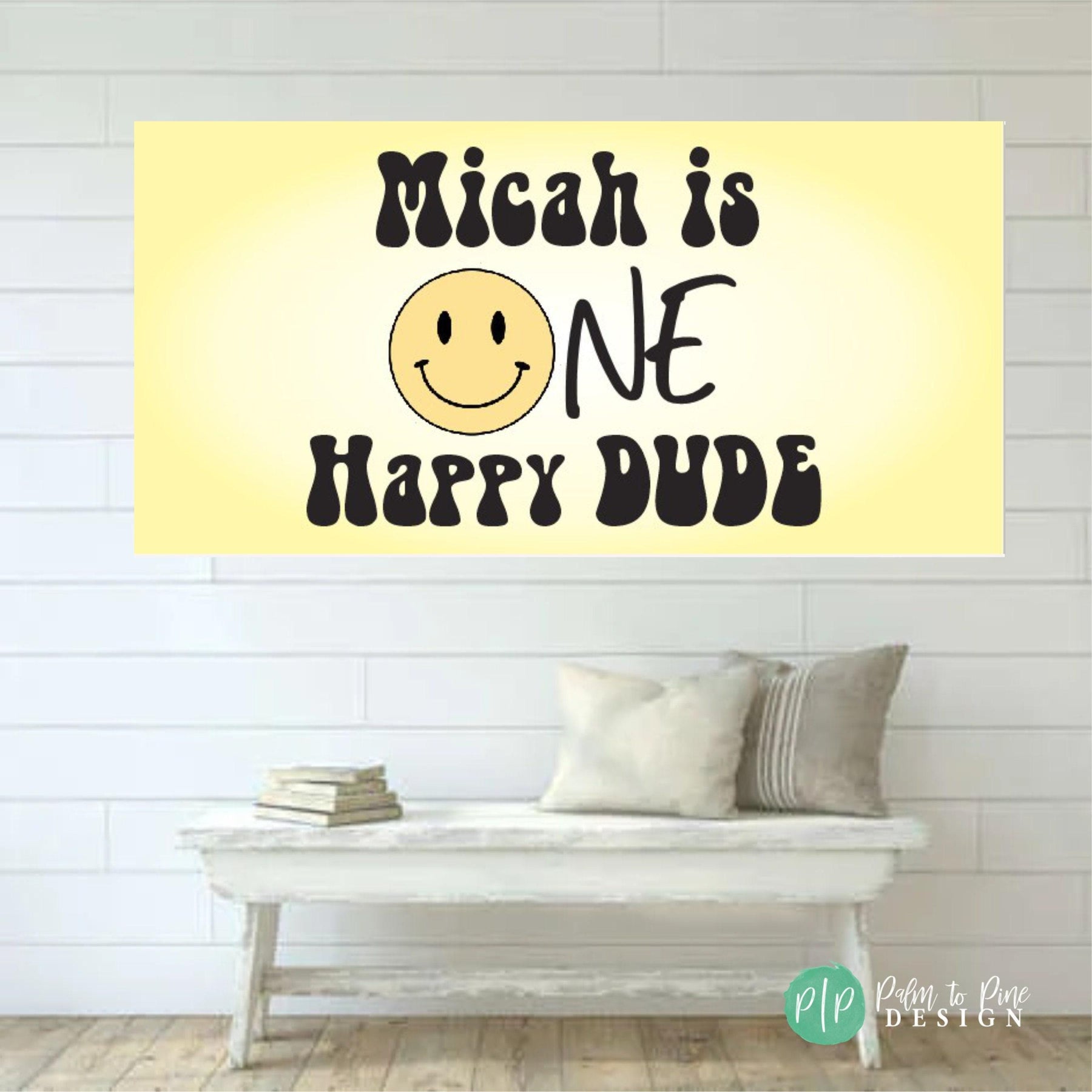 This personalized One Happy Dude or Two Happy birthday banner is perfect for celebrating your groovy birthday boy or girl! The soft retro yellow coloring will compliment the happiest birthday party around! This sign can be customized for any ages and includes a happy face smiling at your celebration!