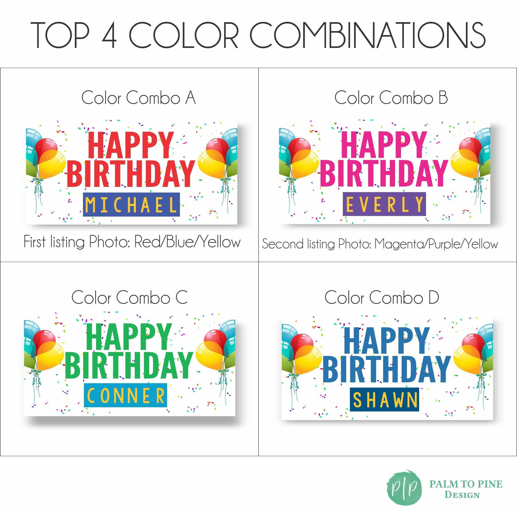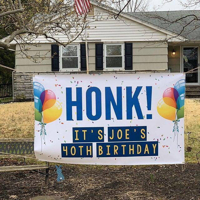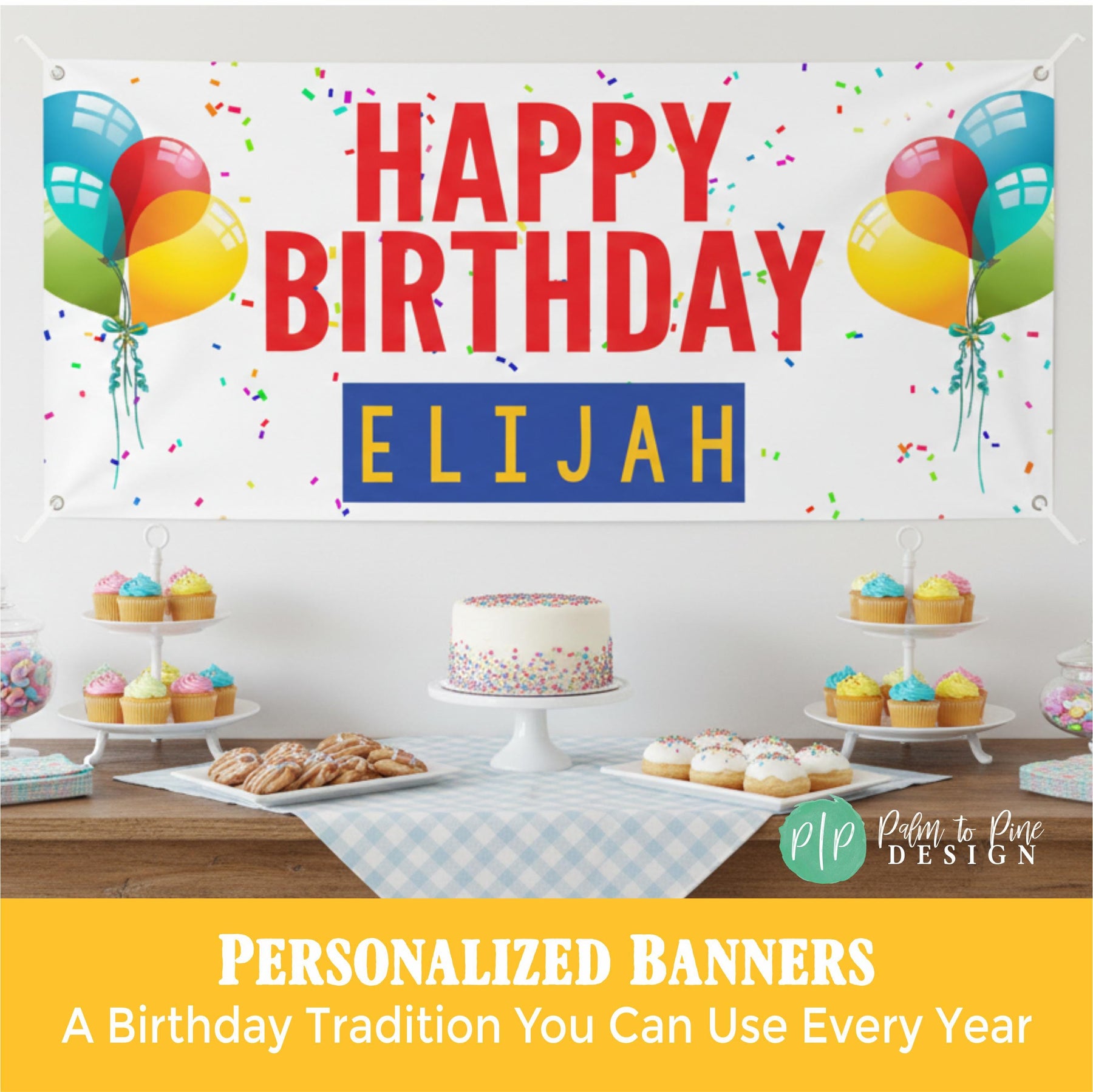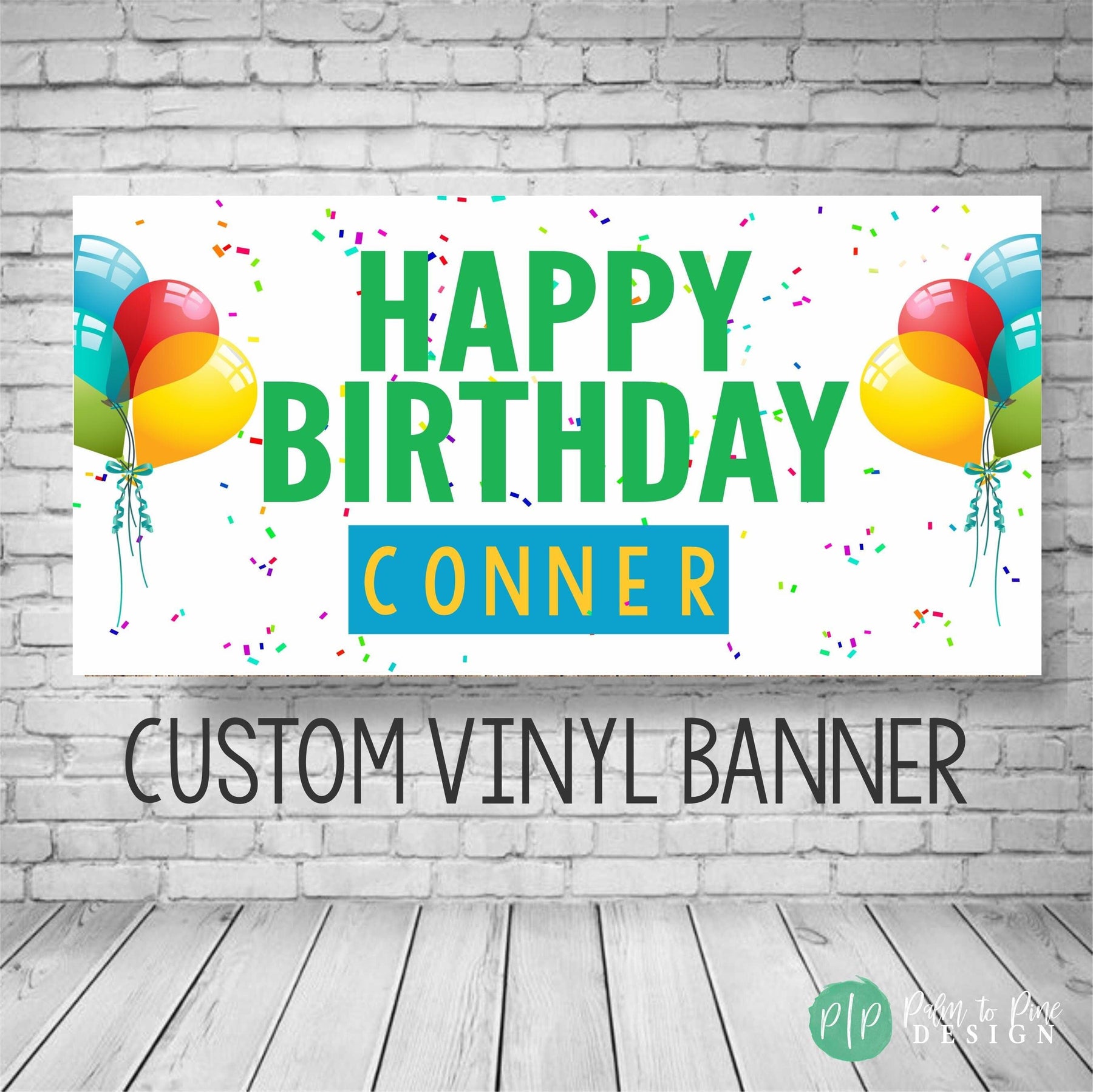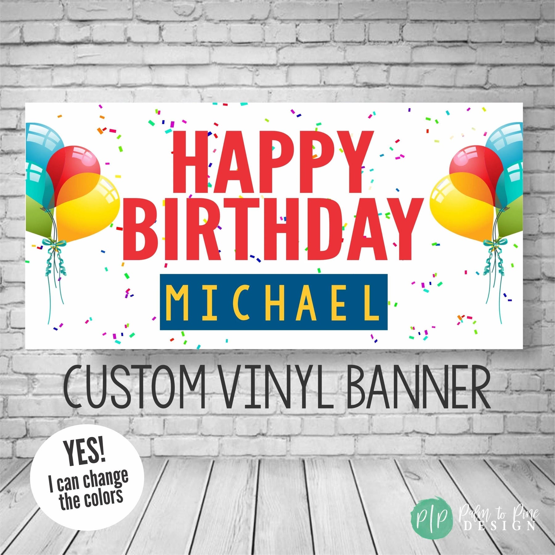 Celebrate in style with a Personalized Birthday Party Banner with balloons and confetti, designed for the ultimate celebration for any age. This beautifully designed banner will add a vibrant splash of color to your party decor and the design is perfect to be used year after year as a fun birthday tradition. This vinyl banner is available digitally or professionally printed and is sure to be a standout piece in your celebration with custom colors to match your party theme and perfect for kids and adults! Our banners include grommets and are easy to hang, making your party setup a breeze.