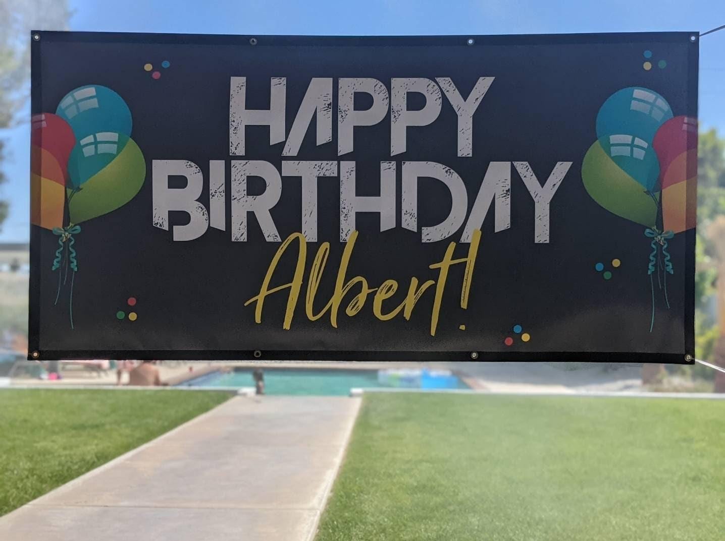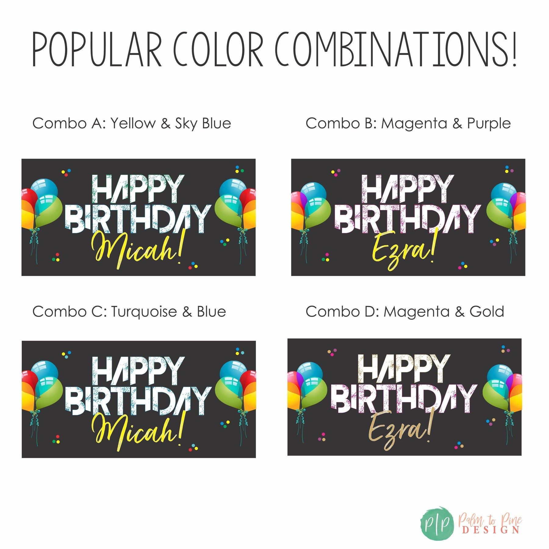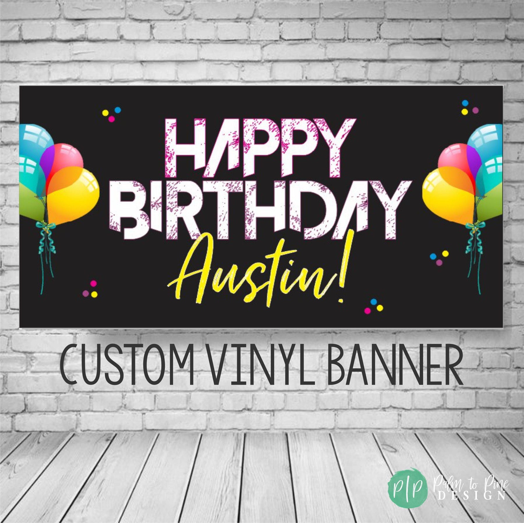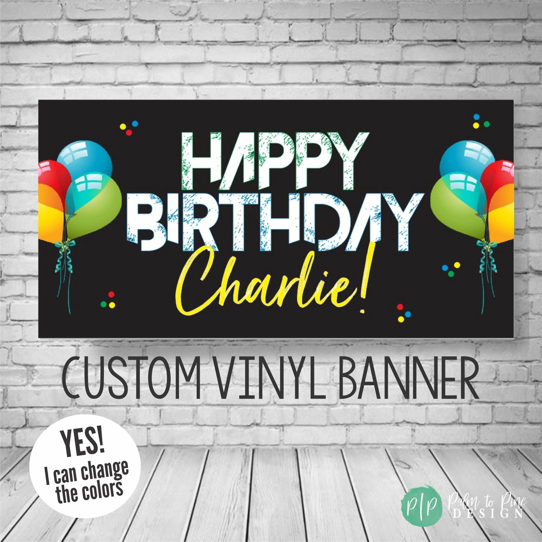 This personalized birthday banner is perfect for celebrating a birthday for any age from kids, tweens to adults! This custom Happy Birthday Banner is perfect for dessert table backdrops, welcome banners or can be hung in restaurants, yards or indoors and outdoors. The colors on this high quality and durable vinyl banner won't fade and can be used year after year for your birthday celebrations. There are multiple sizes and colors available and this can be personalized for any birthday party decor.