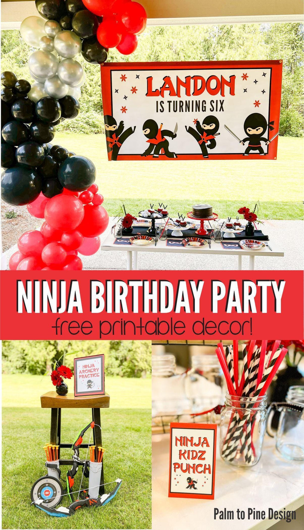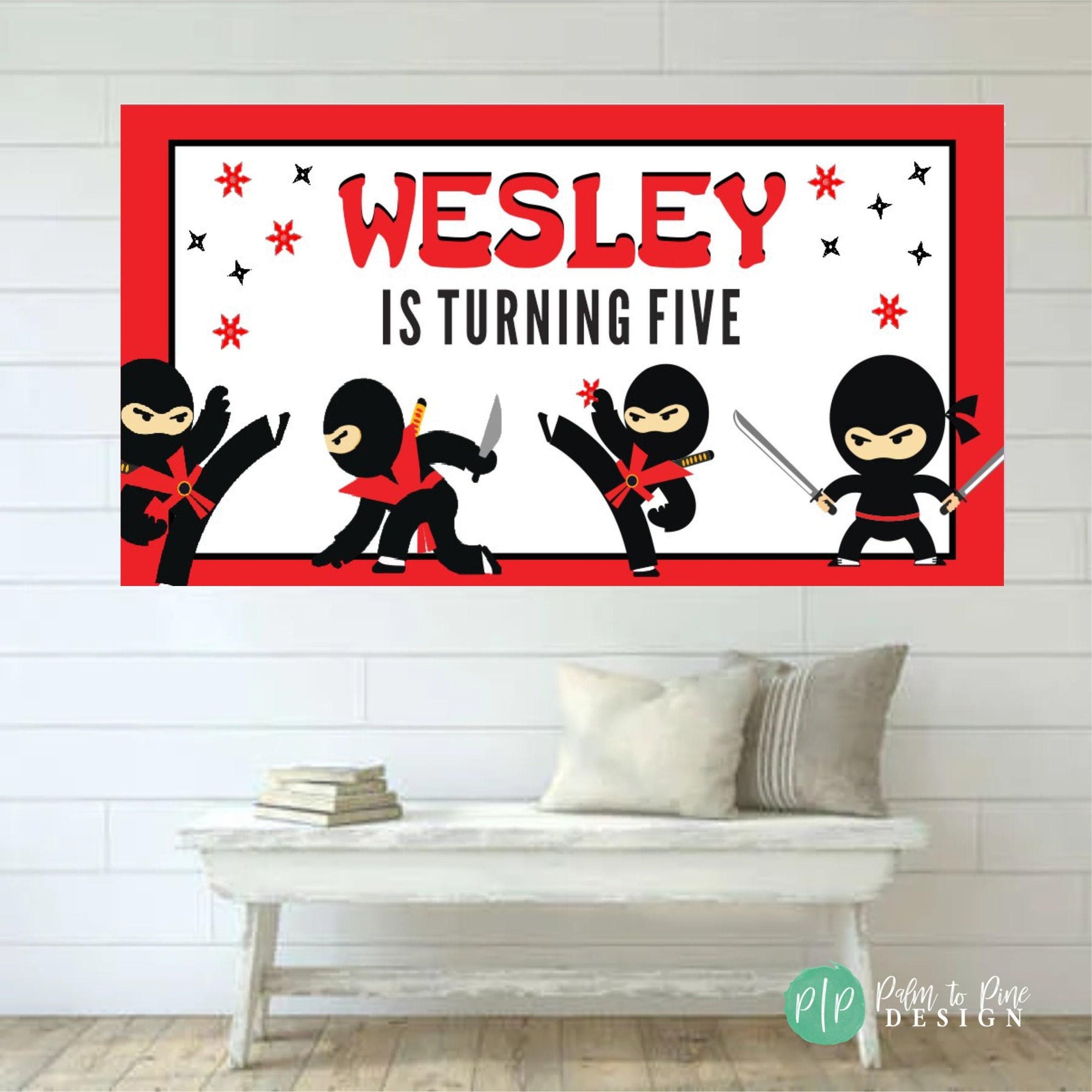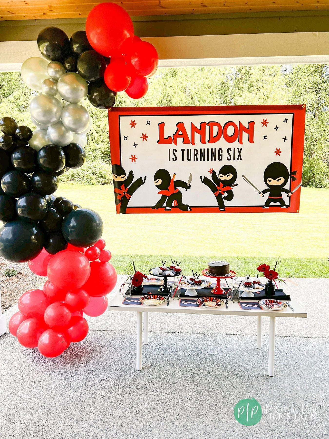 🥋 Design: Includes bold ninja silhouettes, throwing stars, and martial arts elements to match any ninja-themed decorations.