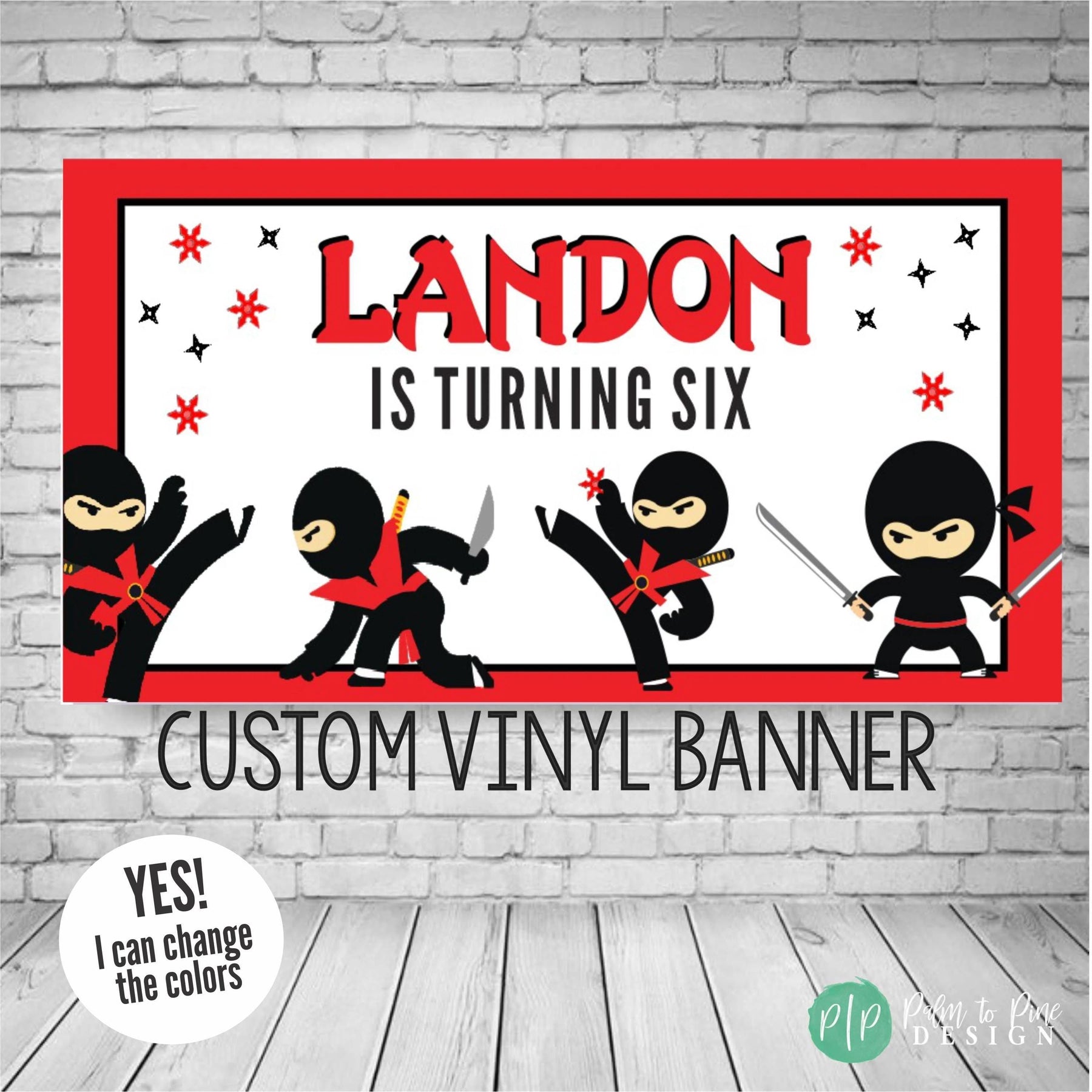 This personalized Ninja Martial Arts banner is the perfect custom backdrop to make a statement for your little Samurai's birthday party! Get out the shurikens, daggers and nunchucks, and perfect your party set up with this custom banner. The wording, skin colors and color scheme on this ninja banner can also be customized, just include your request in your notes to seller section at checkout to make this banner truly unique and unforgettable for your little ninjas birthday party!