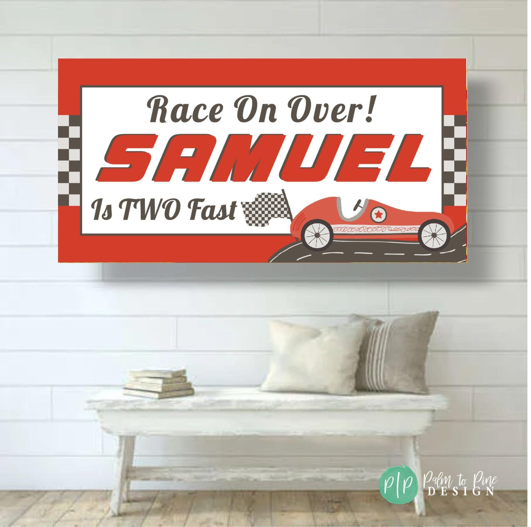 This personalized retro Race Car Banner is the perfect custom banner to make a statement for your vintage Race Car Birthday party! The race car banner is great for a dessert table backdrop, racetrack or photo backdrop for birthday party pictures. The wording, colors and number on the race car on this banner can be customized too for any type of party, just include your request in your notes to seller section at checkout!