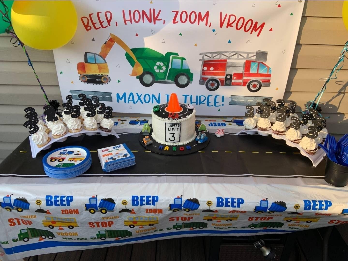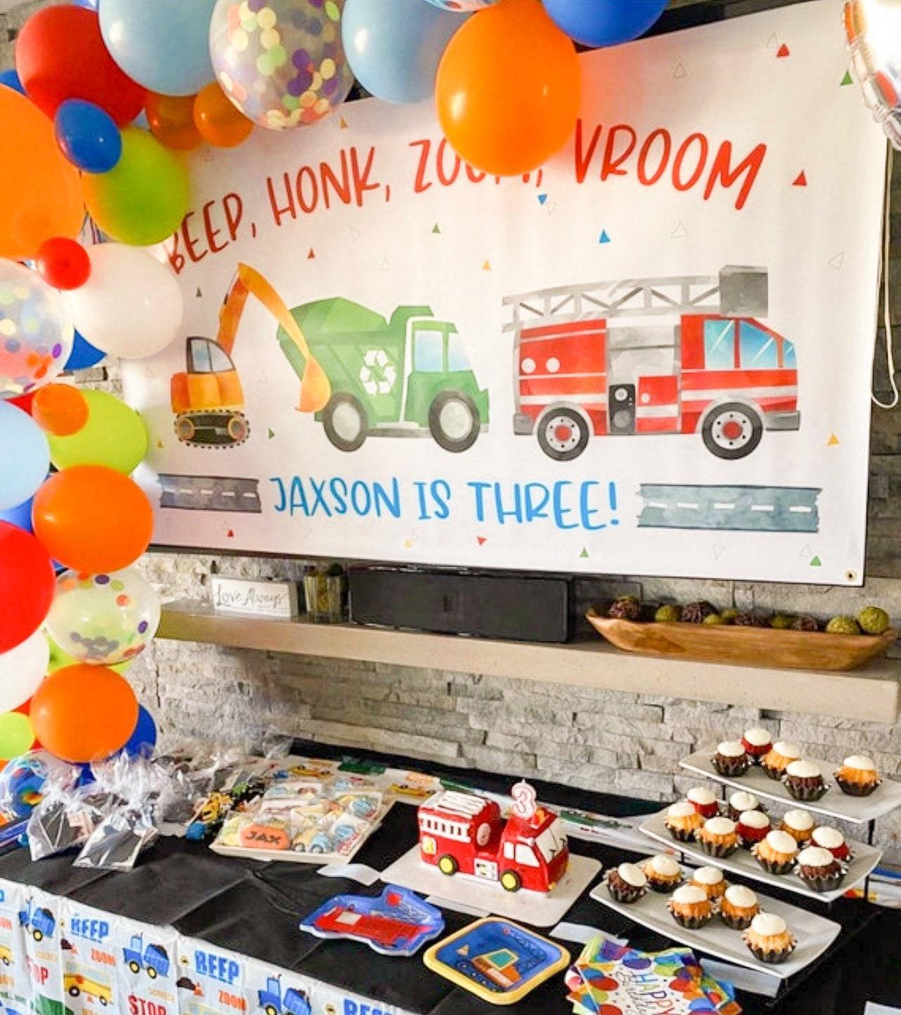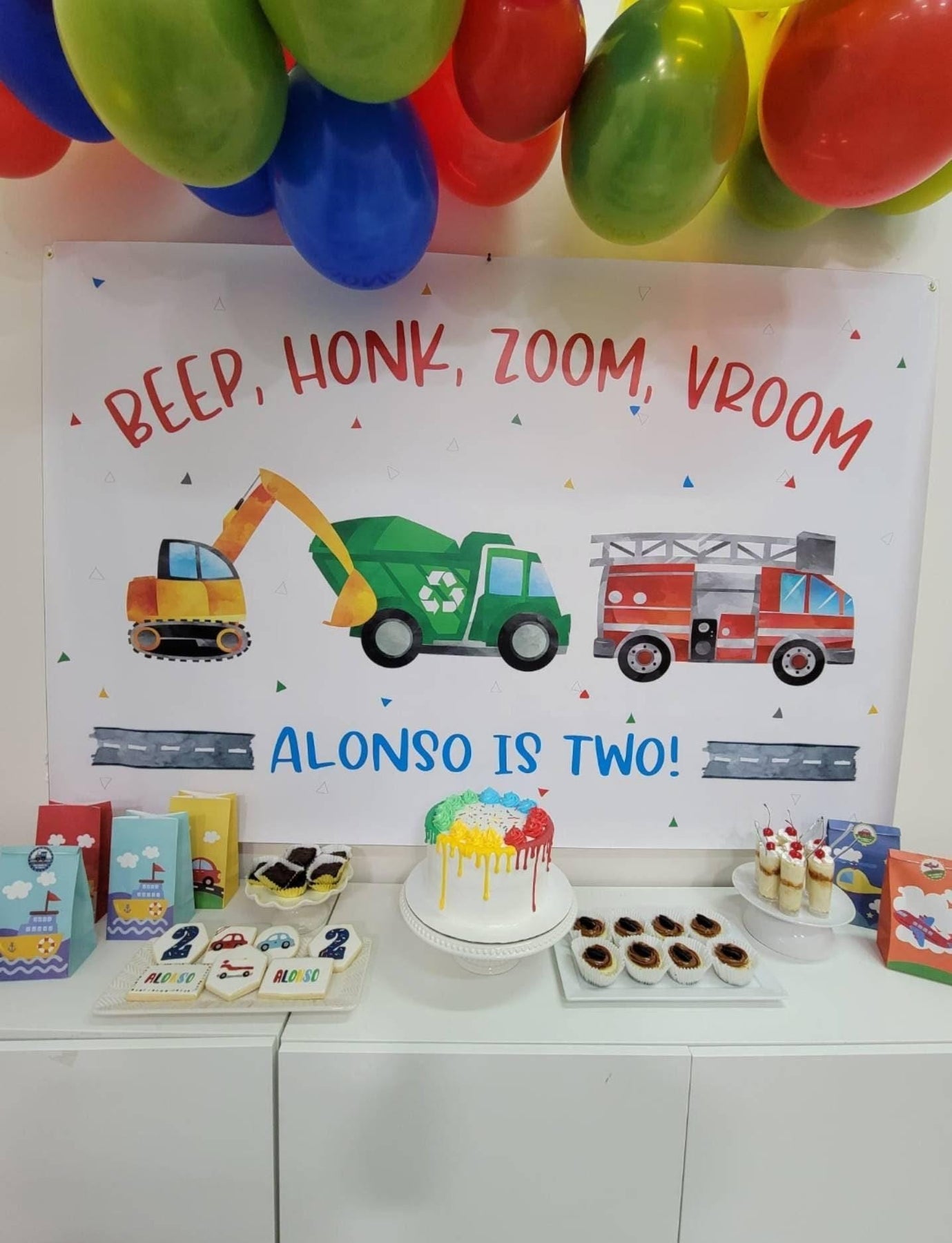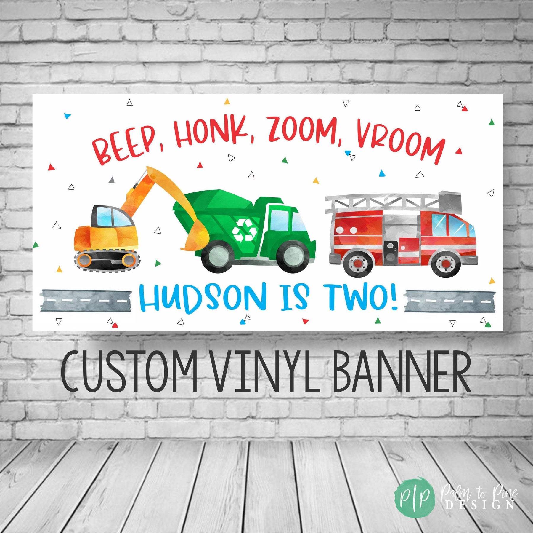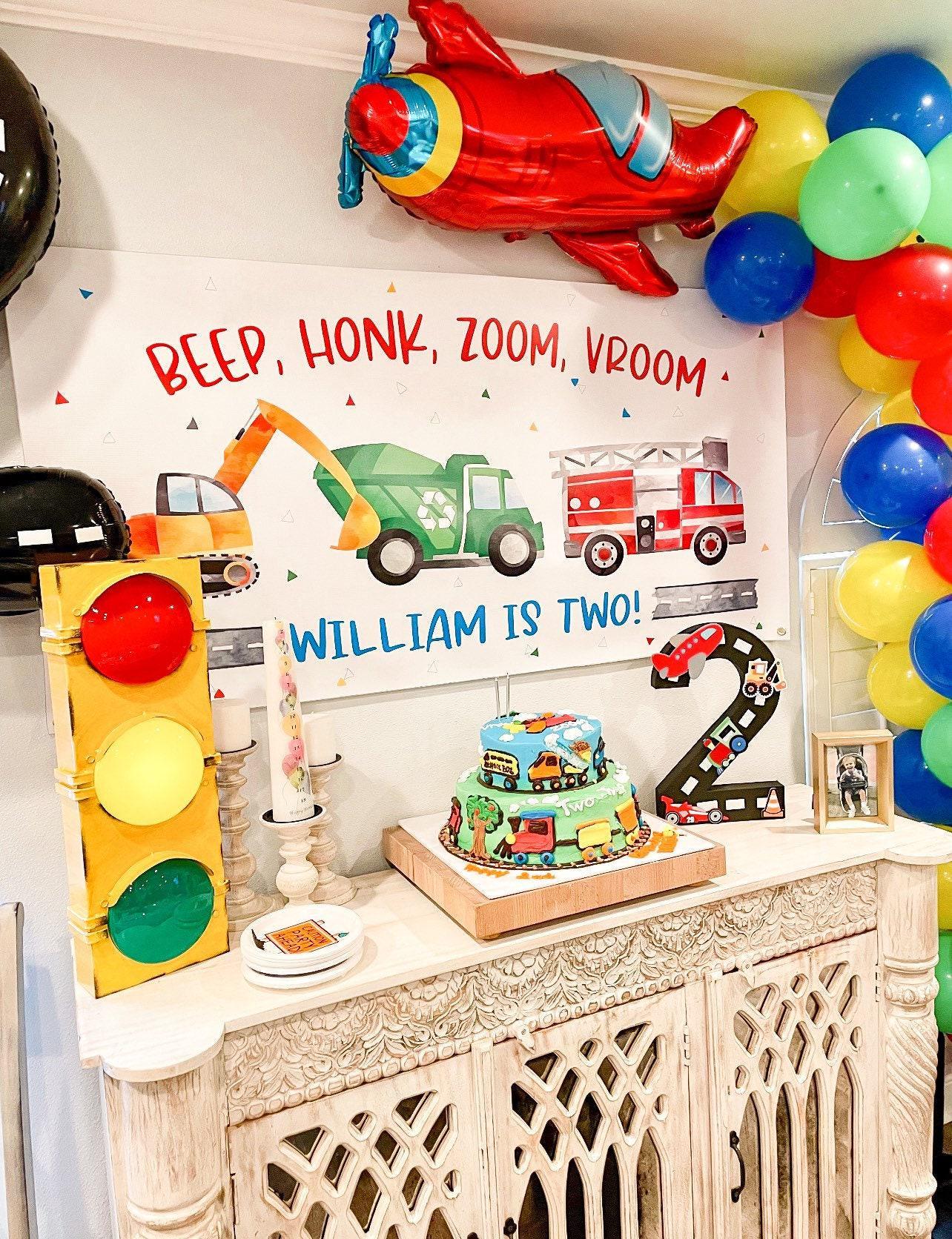 Celebrate your boys birthday with our Transportation Vehicles Party Banner, the perfect centerpiece for your Things That Go themed celebration! This custom banner personalized with your little ones name and age features a construction excavator, garbage truck and firetruck, or can be personalized with your boys favorite vehicles for your celebration. Whether you’re planning a first birthday or older, this high-quality, personalized party banner brings fun, color, and that “wow” factor to your décor. Designed for easy setup with grommets included for indoors or outdoors and unforgettable photos, it’s a must-have for any vehicle-loving birthday theme!
