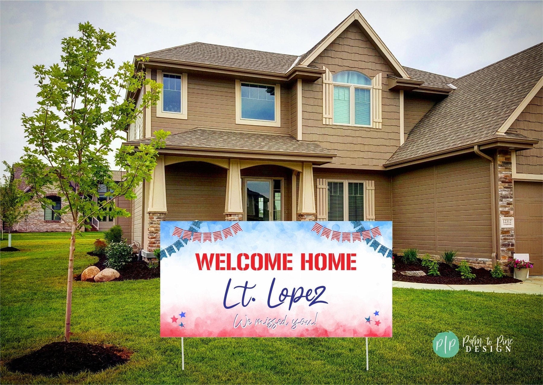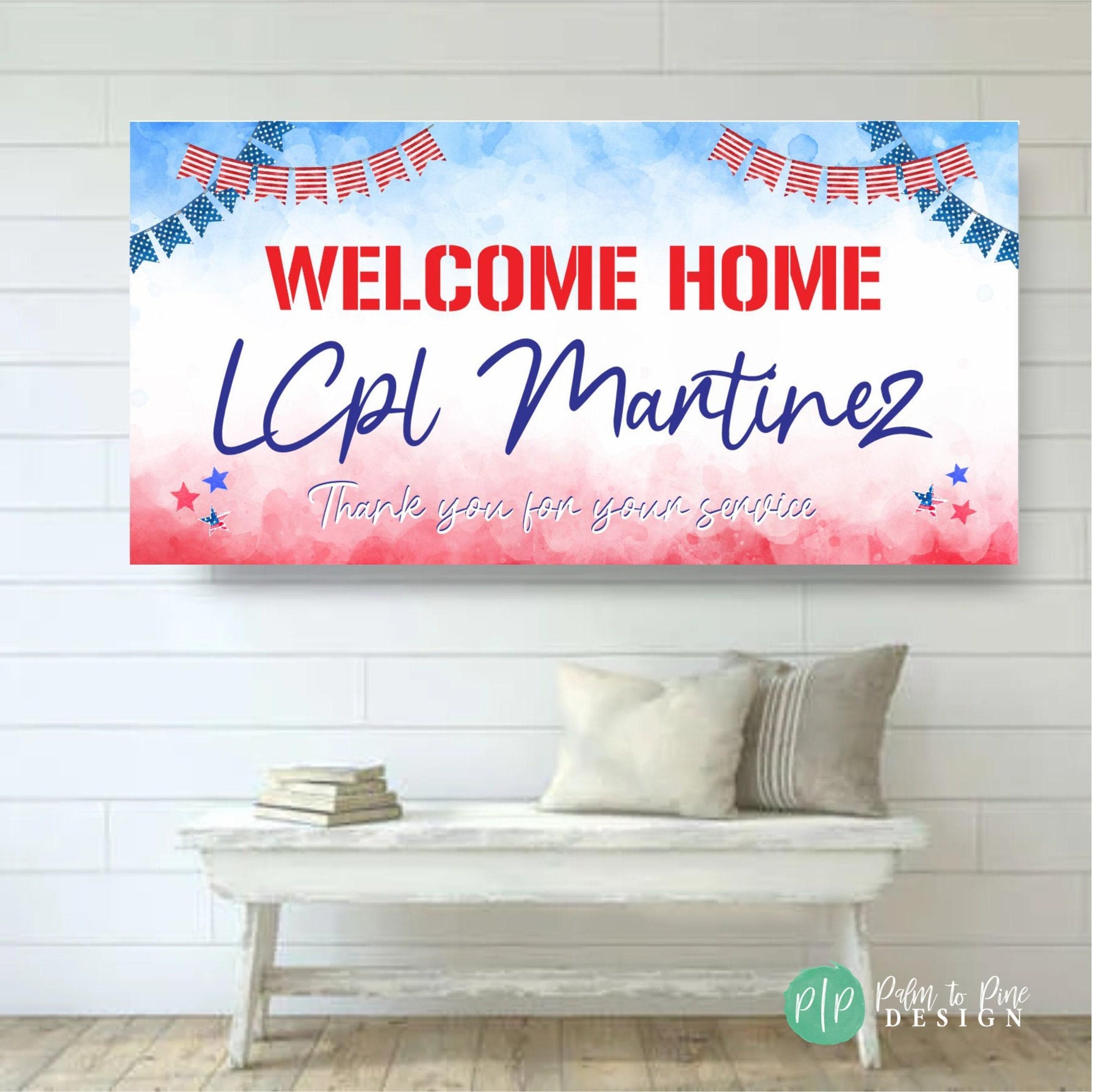 Welcome Home Military Banner, Personalized Soldier Homecoming Vinyl Sign, Patriotic