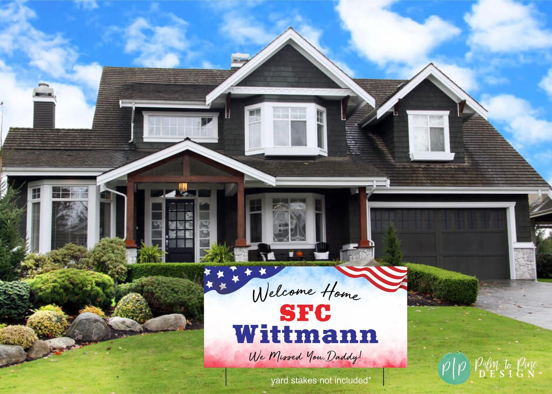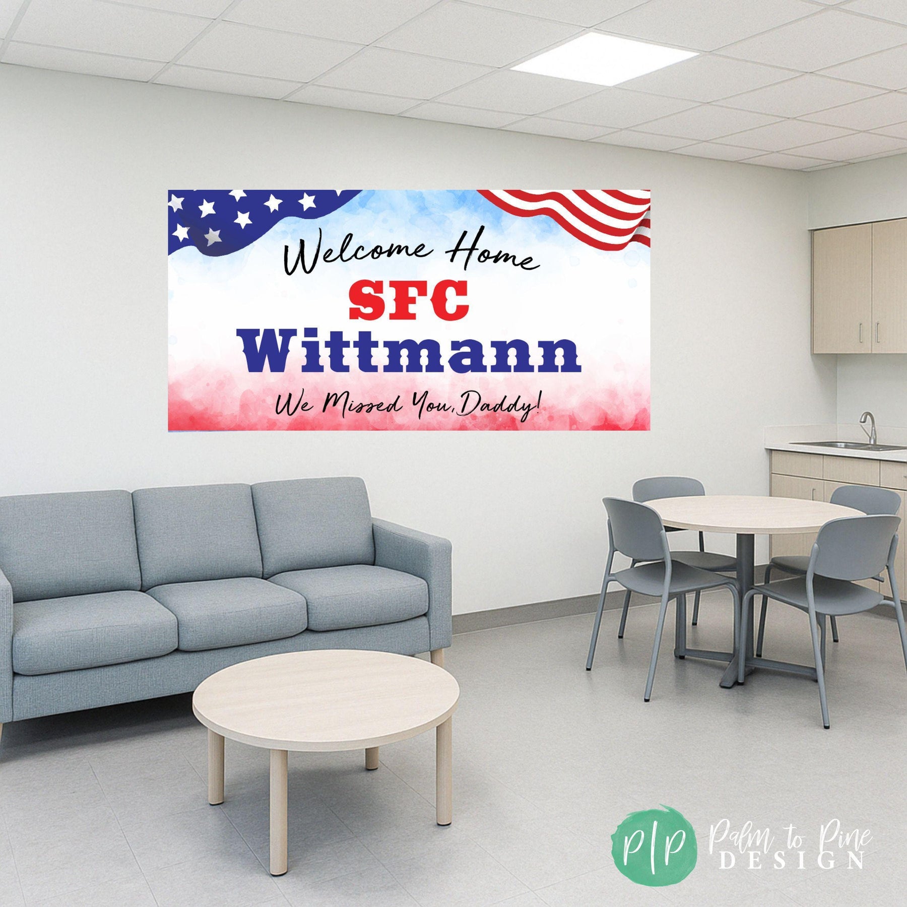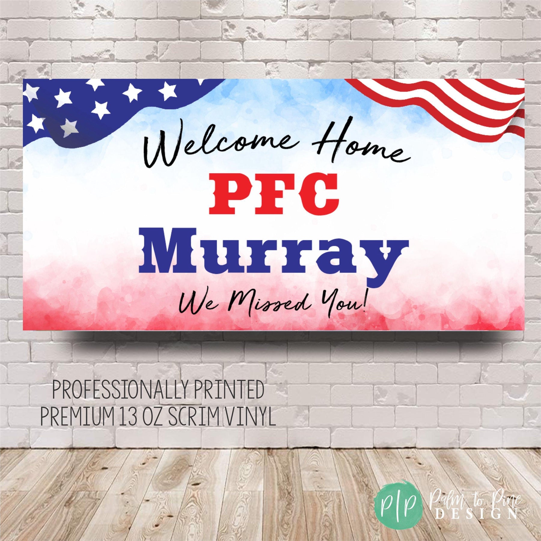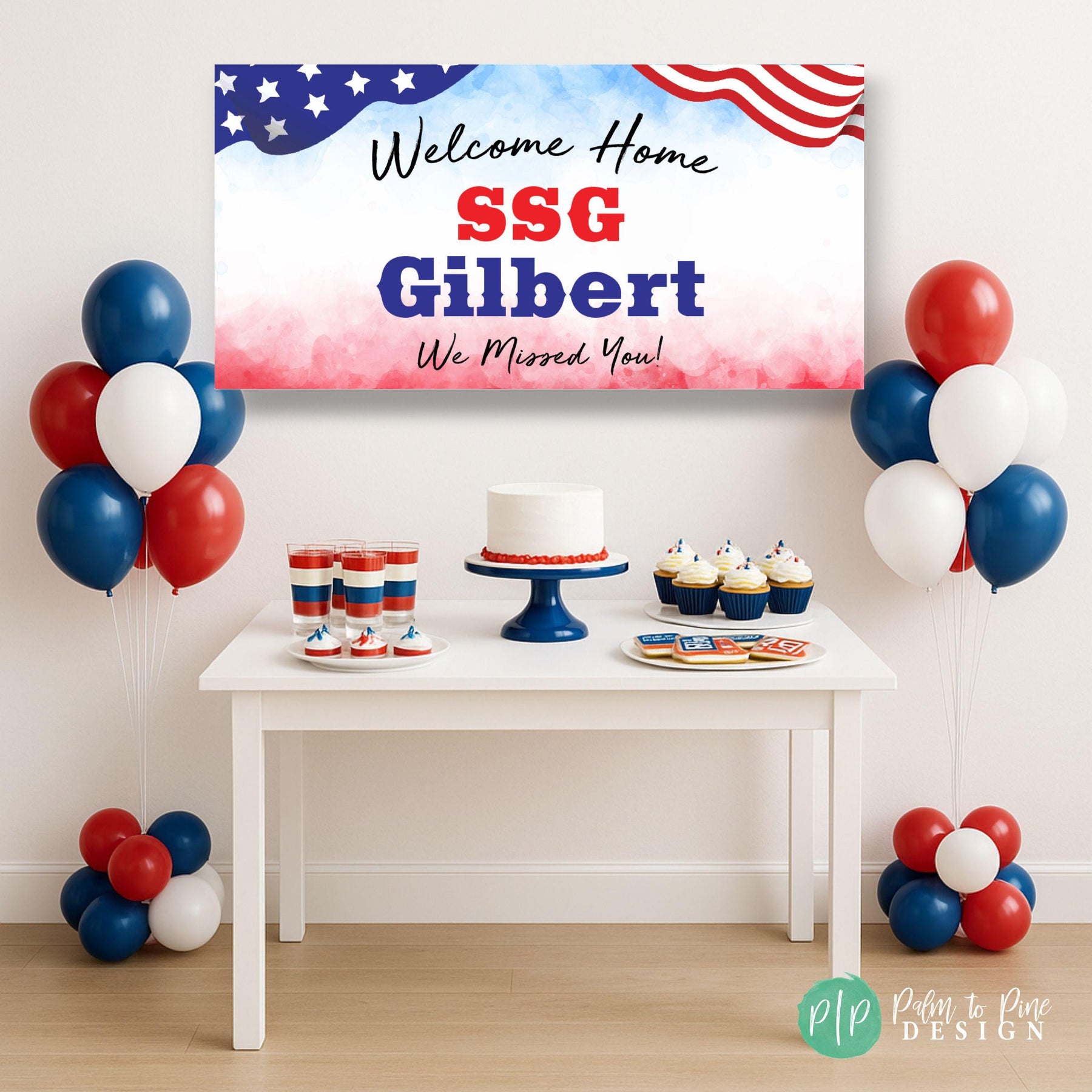 Celebrate your hero’s return with this personalized Welcome Home Military Banner – perfect for honoring your loved one after deployment, basic training, or boot camp graduation. Designed in patriotic red, white, and blue with stars and stripes, this Military Homecoming vinyl banner is a proud display of American spirit and appreciation. Use it in your yard, hang it at a military homecoming event, or display it indoors at a welcome home party. It’s a beautiful way to show love and support for your soldier — whether it’s Mommy, Daddy, a spouse, sibling, or friend.