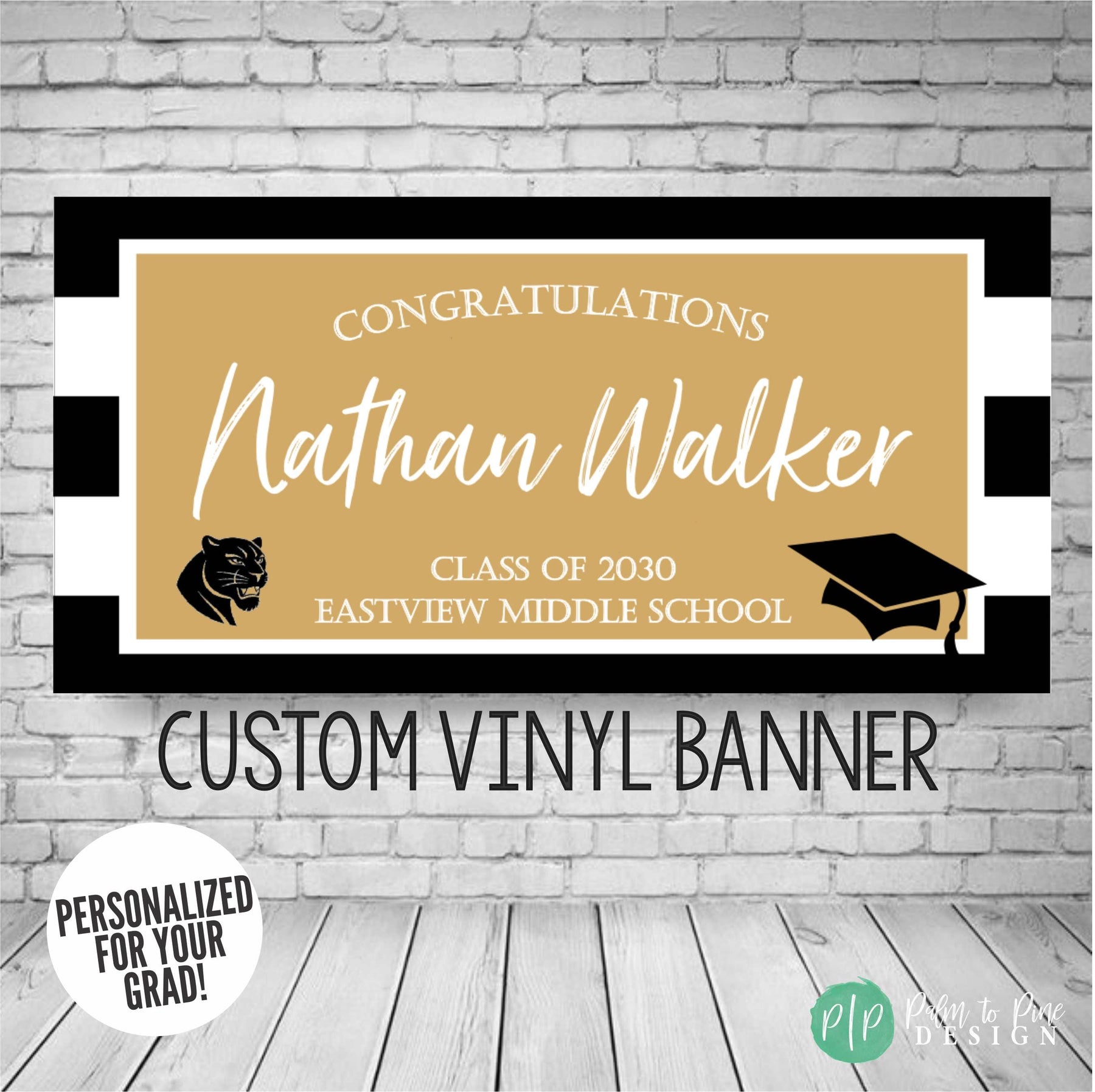 Make your graduate's big day even brighter with a personalized graduation banner, in your school colors, and including your school mascott (optional)! Show your grad how proud you are of their achievements with a custom, high-quality vinyl graduation banner, perfect for a College Bed Party too!