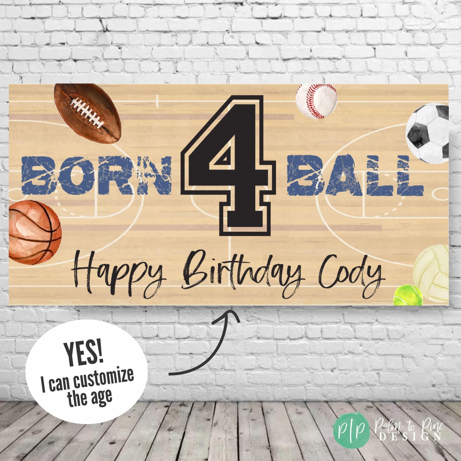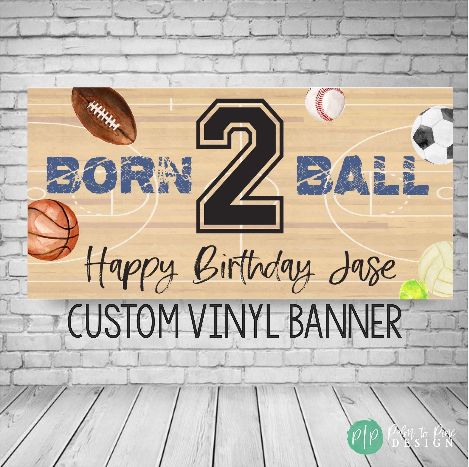 Celebrate your little sports enthusiast with our 'Born to Ball' Boys Sports Banner. This versatile sports banner is tailored to showcase the love for soccer, football, basketball, and baseball. Crafted from durable vinyl material, it guarantees longevity, maintaining its vivid colors and pristine condition through any weather. It’s perfect for decorating your child's bedroom, a game room, or even outside for a sports-themed birthday bash. Our banner is not just a decoration, it's a statement for every young boy who believes in their potential on the field or court!