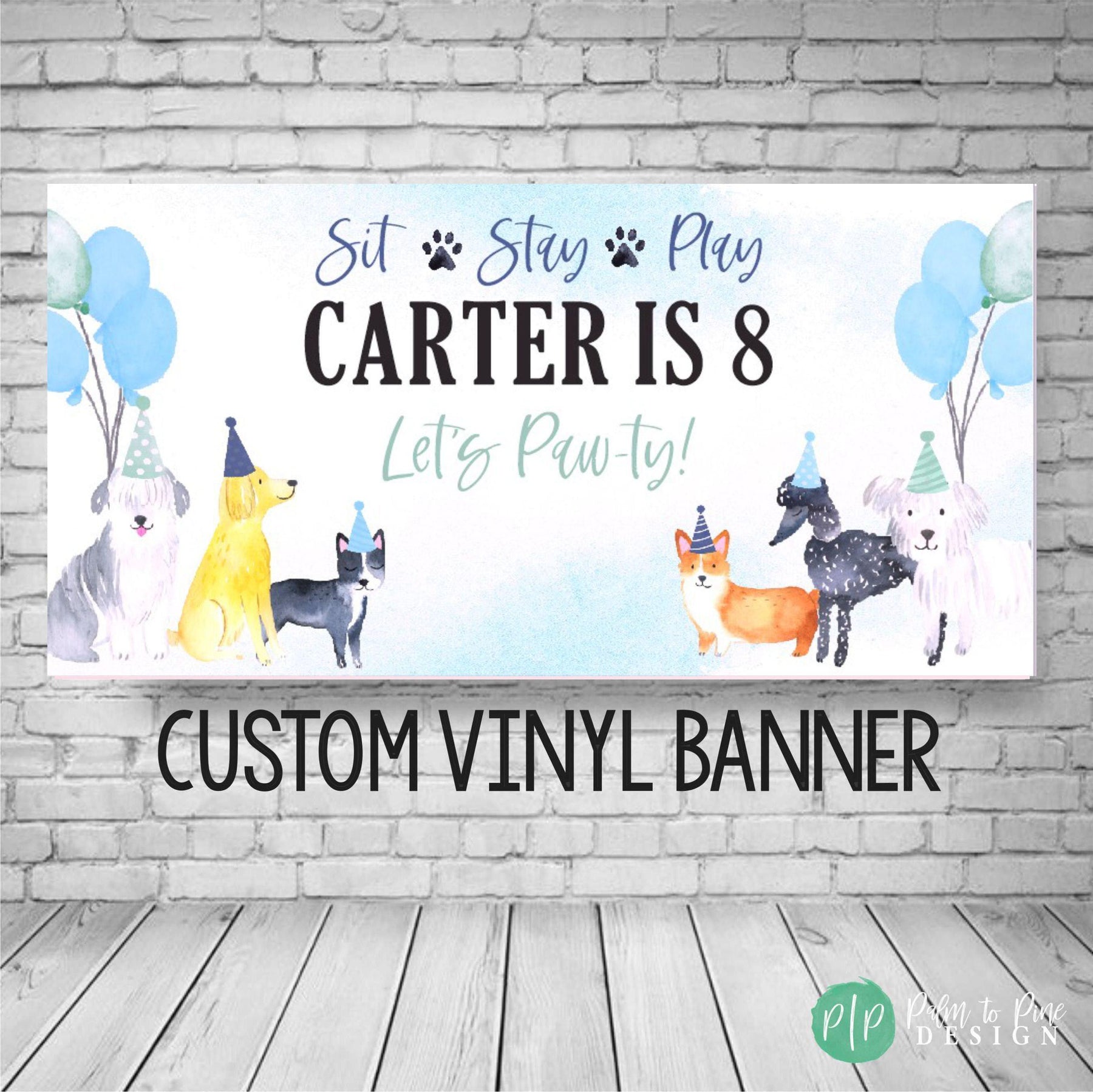 Use this durable vinyl banner for a outdoor welcome sign at a dog themed birthday, as a photo backdrop for pictures or this vinyl banner makes the perfect decoration for behind a dessert table at a dog party. YES! This dog party banner can be customized for siblings, twins or even a party for your dog, just include your request in your notes to seller section at checkout! The colors won't fade in the sun and the banner can be hung in your little boys bedroom after the party is over!