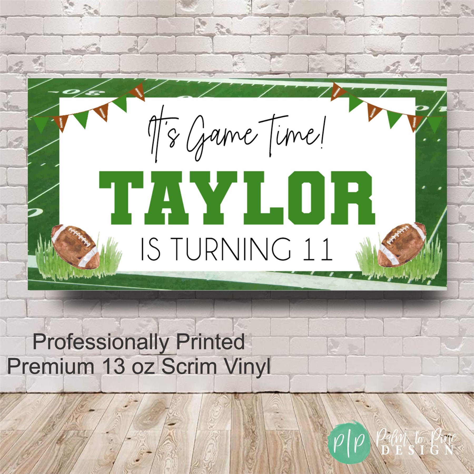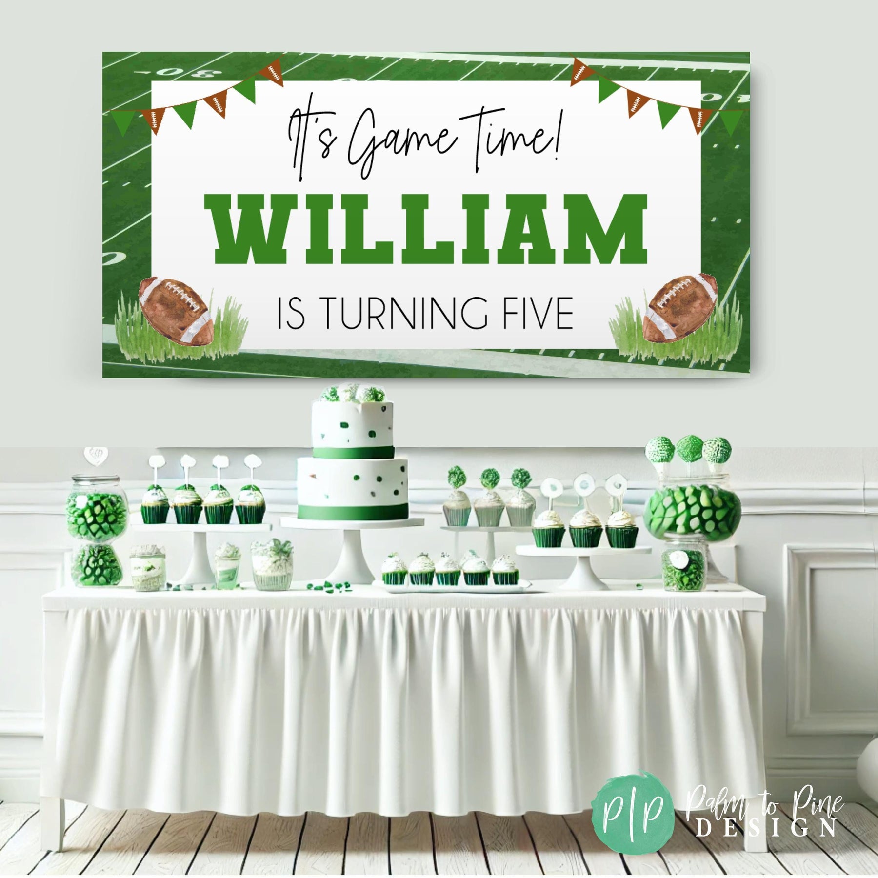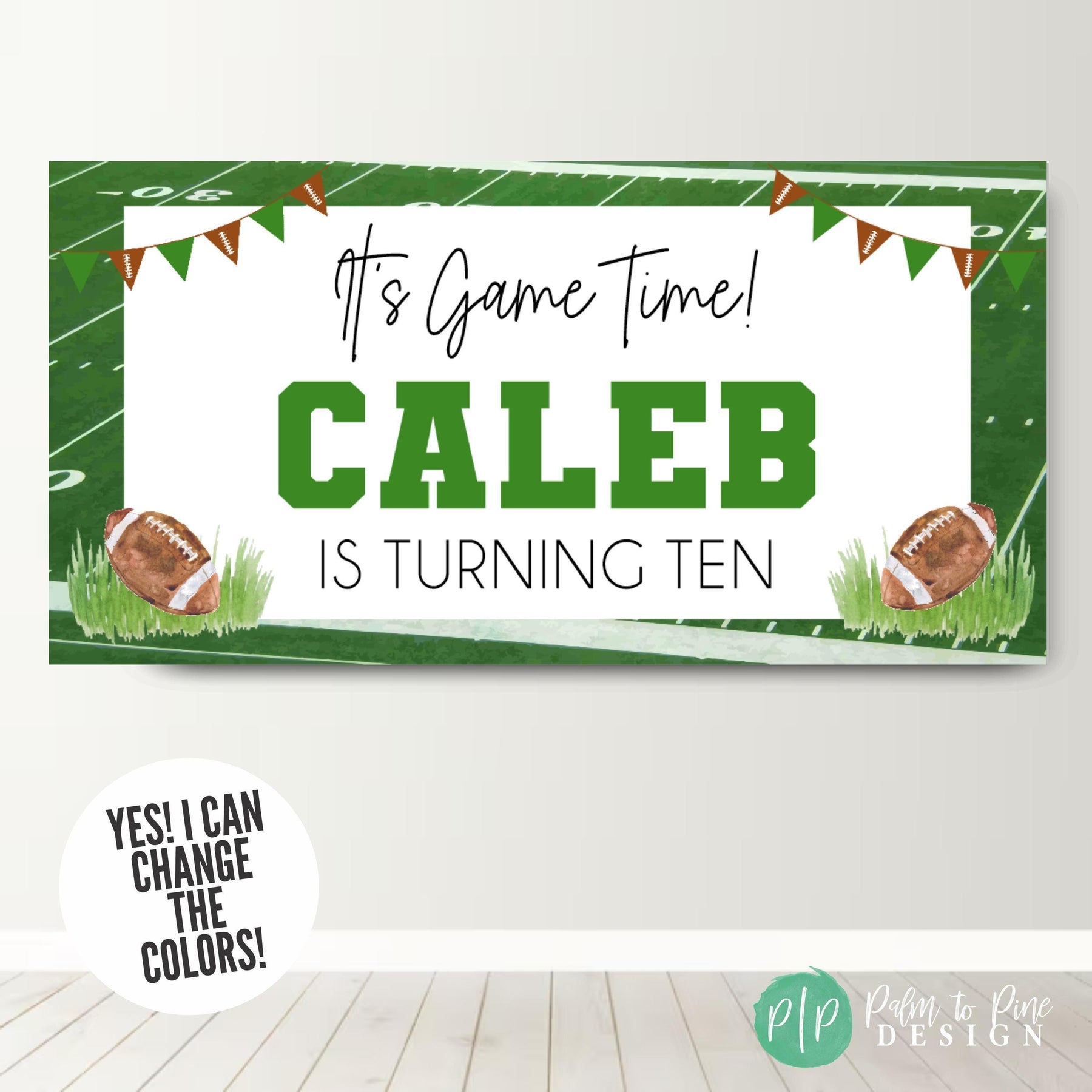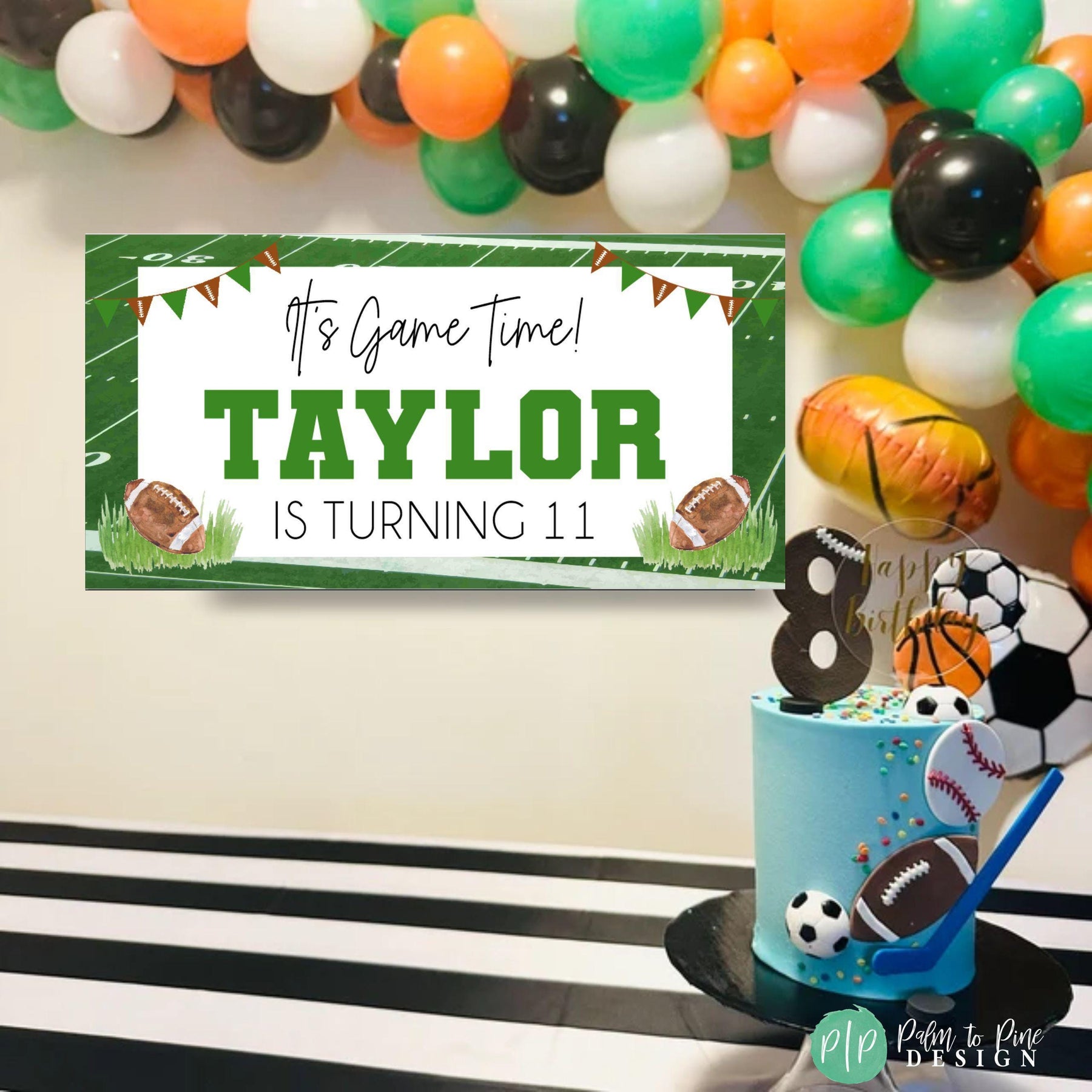 🏈 A fully personalized birthday banner that includes your name, age and custom sports colors (if requested)