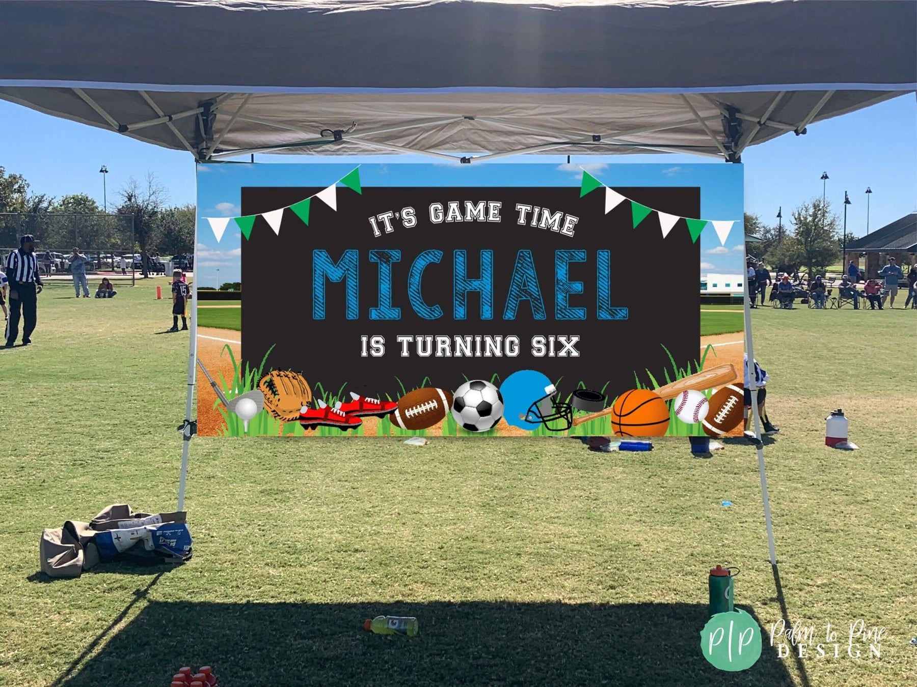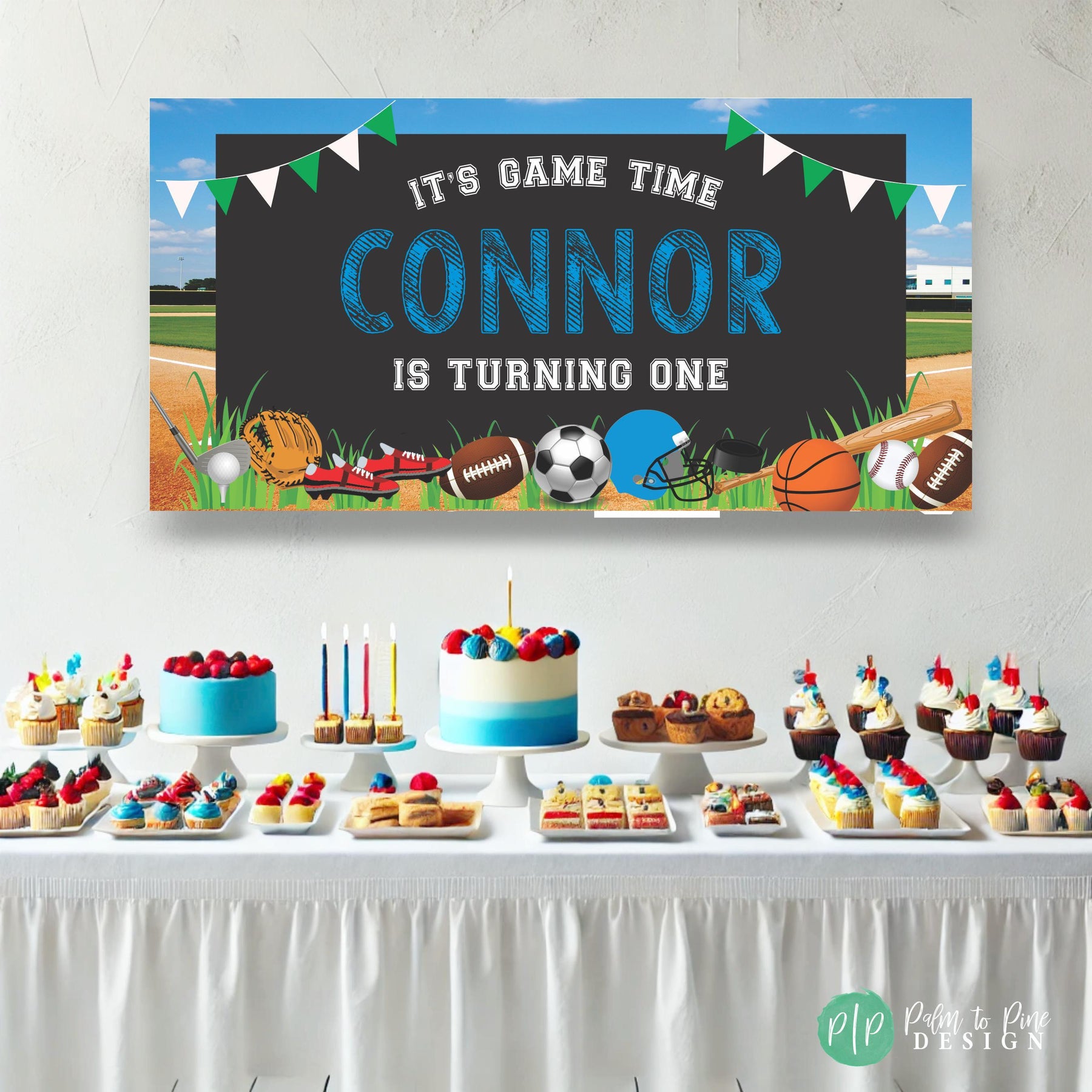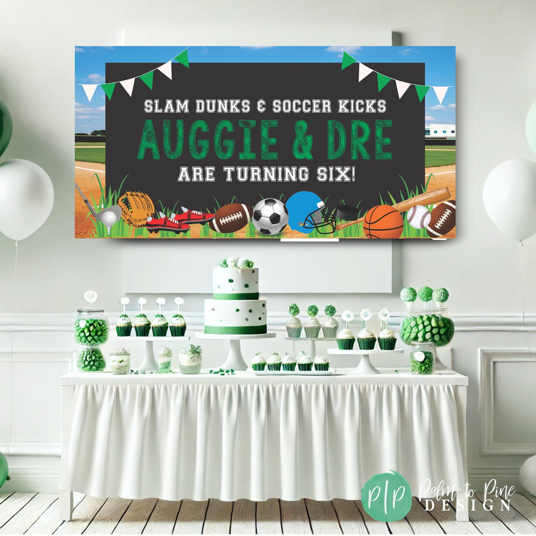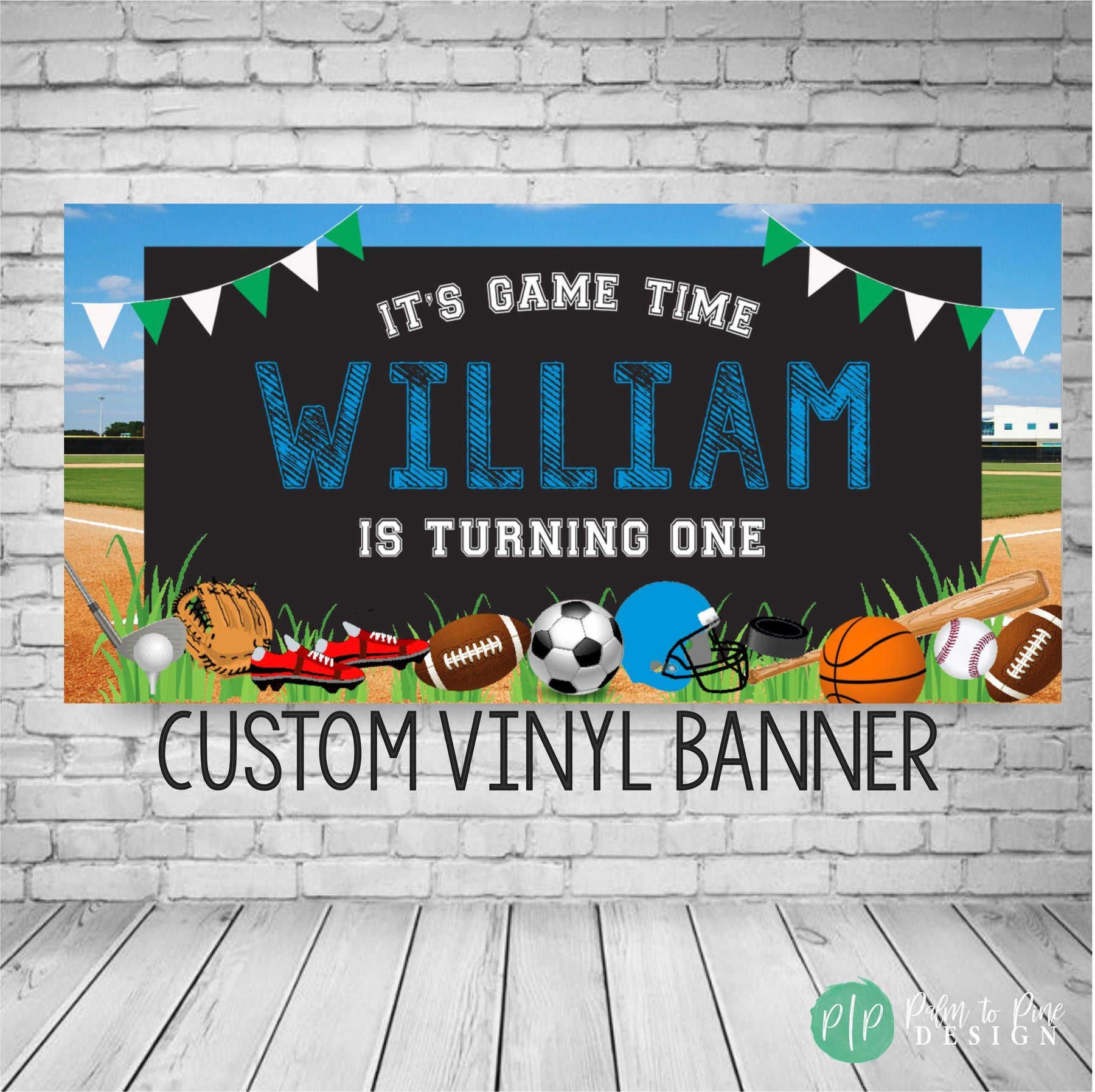Kick off your next birthday celebration with our Ultimate Sports Birthday Banner! This unique party essential is guaranteed to score points with your little sports enthusiast. This all-inclusive sports-themed banner showcases popular sporting equipment such as Soccer, Baseball, Football, and a Basketball promising a home-run in decoration. Made with high-quality, durable indoor and outdoor vinyl, this banner is not only vibrant and eye-catching but also resistant to weather conditions if your party is outside. Its large and clear lettering ensures it's easily visible, adding an extra thrill to your party. Designed and printed with precision, the vivid colors and intricate details of this banner bring the exciting world of sports right to your party! This is not just any birthday banner; it's a badge of honor for your aspiring athlete.