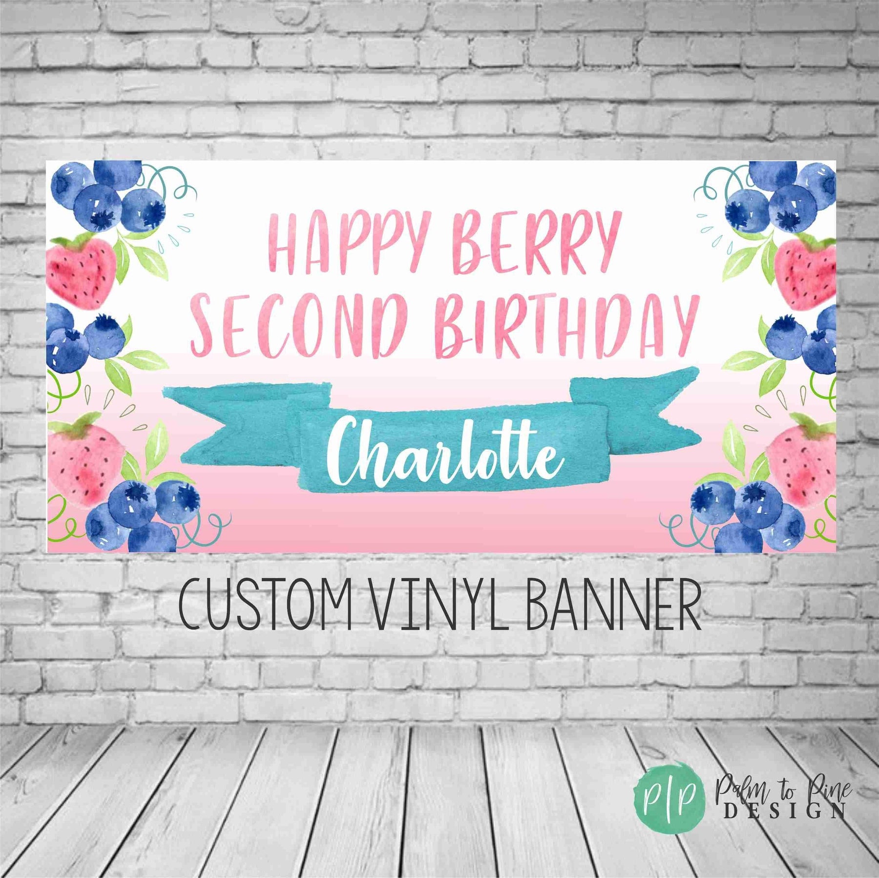 This colorful strawberry and blueberry personalized birthday banner is the perfect decoration to make a statement for your berry sweet Birthday party. The wording and age is customized for your girls berry birthday party. This custom vinyl photo backdrop banner comes ready to hang, or available as a digital option to print locally.
