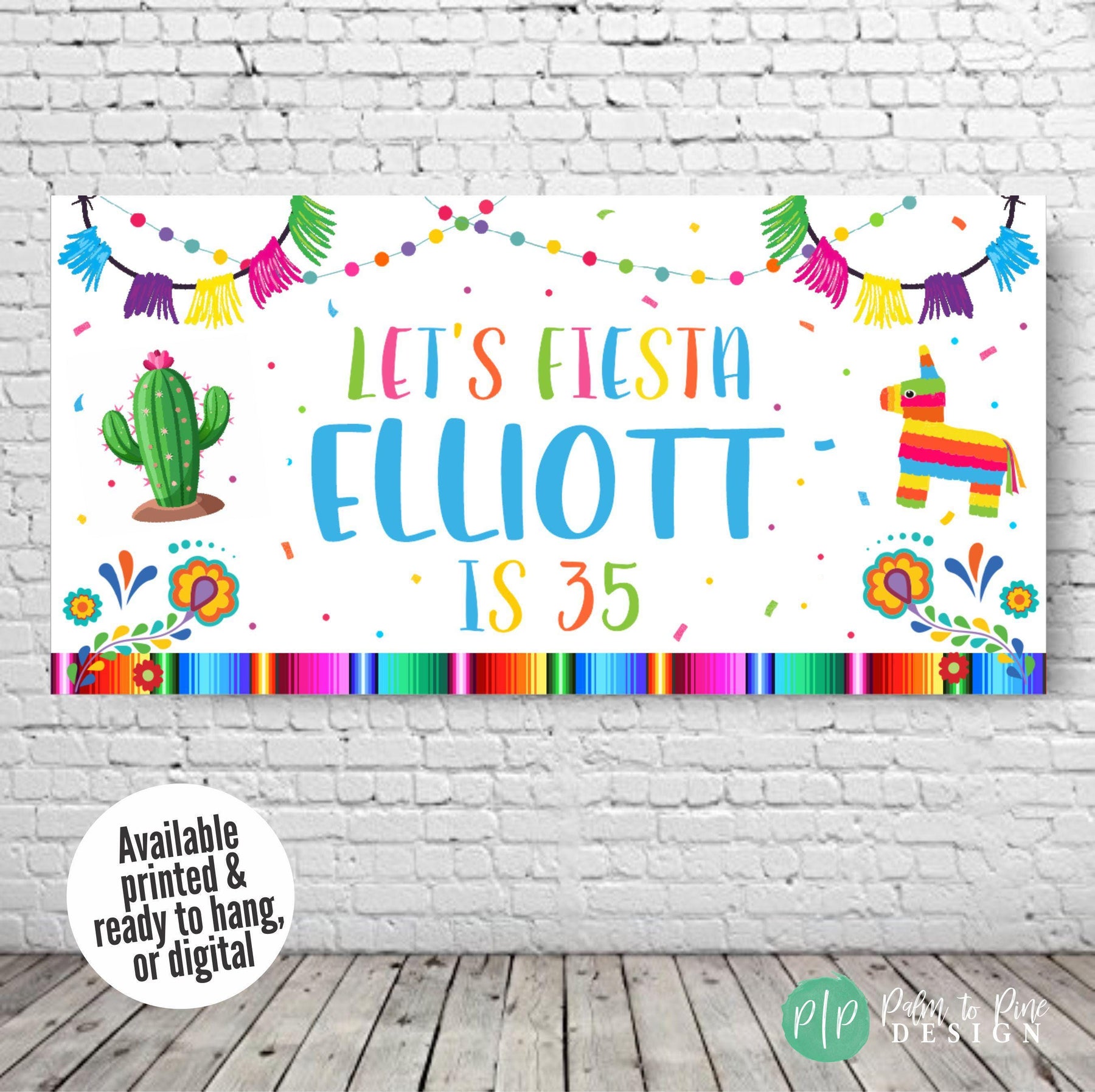Turn your Mexican party into a vibrant fiesta with this Personalized Fiesta Birthday Banner! Designed with bold colors and festive Mexican designs, this high-quality personalized vinyl banner is perfect way to set the tone for a fun and unforgettable birthday, cinco de mayo celebration or taco two-sday party!