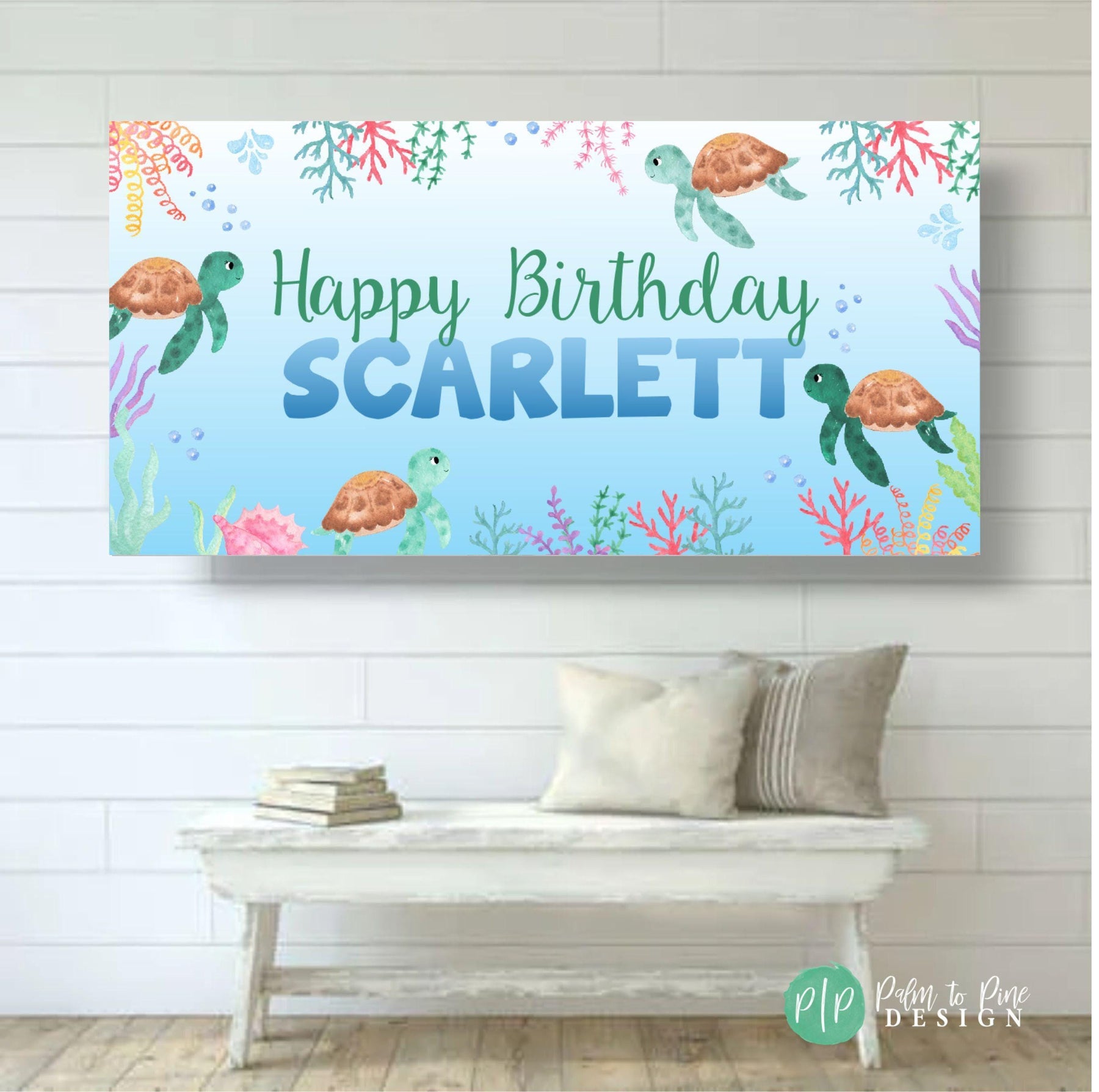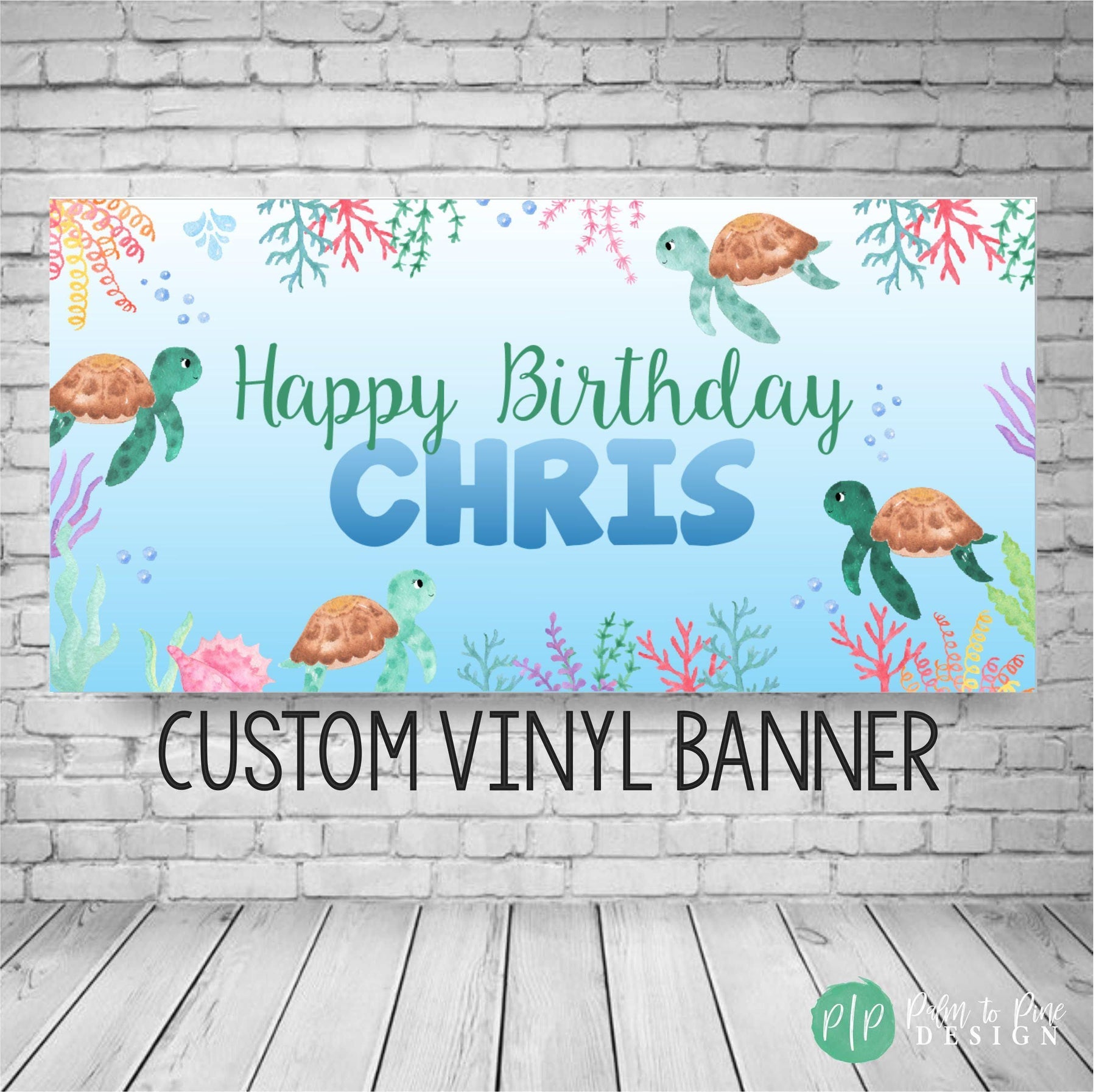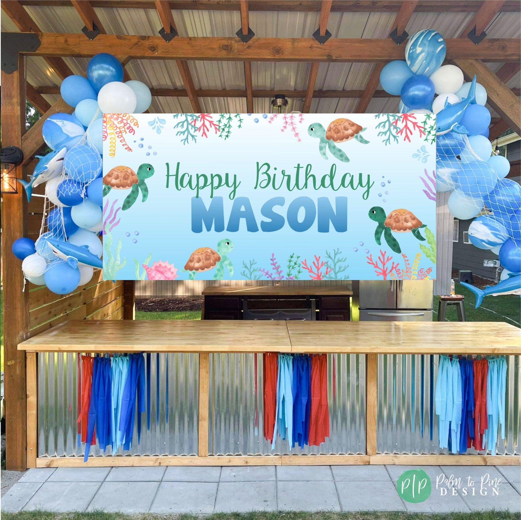 Turtle Birthday Banner, Personalized Under the Sea Decor (Digital or Printed)