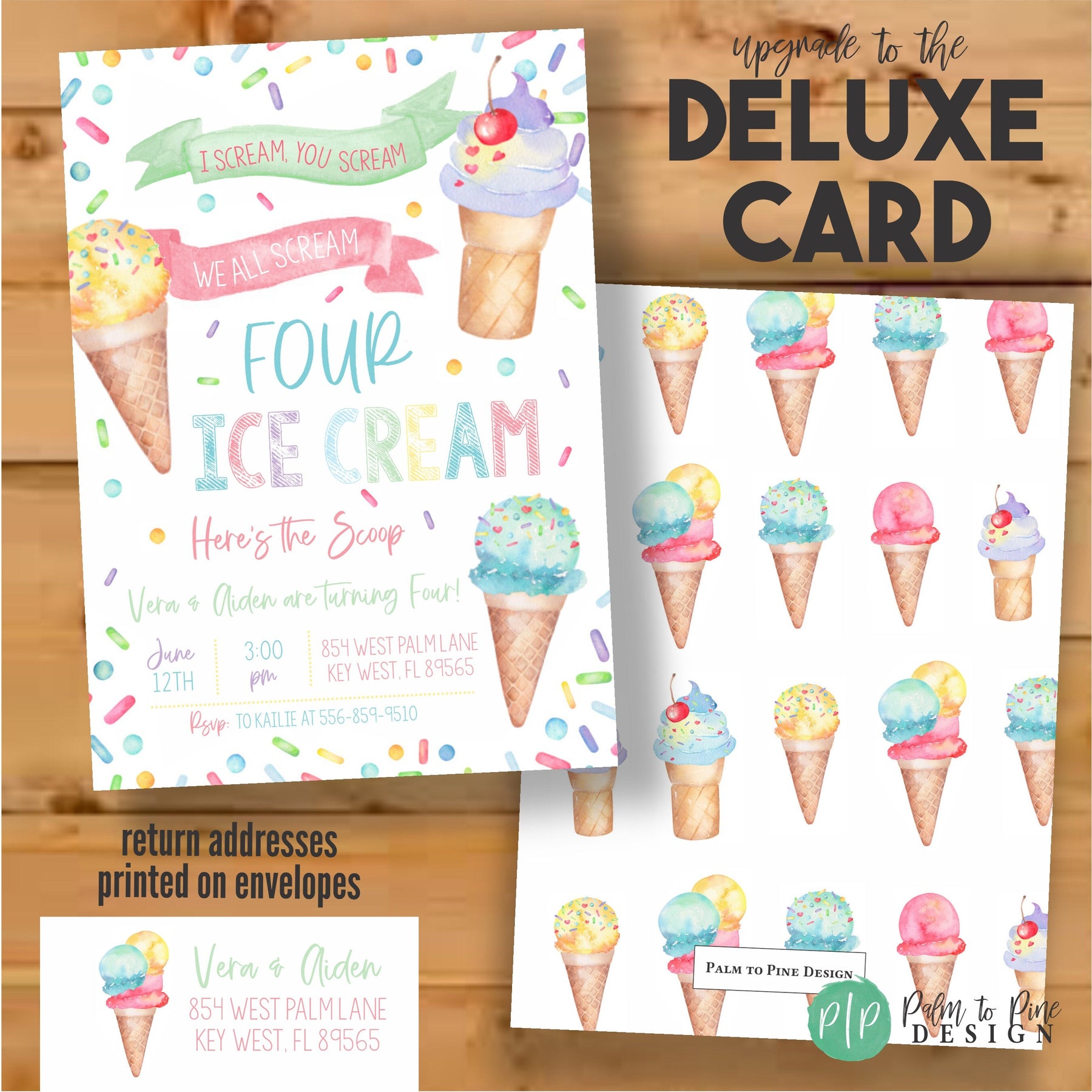 This Watercolor Ice Cream Birthday Invitation is the perfect invite to celebrate your sweet girl, boy, siblings or twins birthday at an Ice Cream Social. The wording and colors can be changed making this the perfect invite for any occasion and any age, not just a 4th birthday! This fun and colorful ice cream invitation is also great for a gender neutral baby shower, boys, girls or twins baby shower sprinkle.