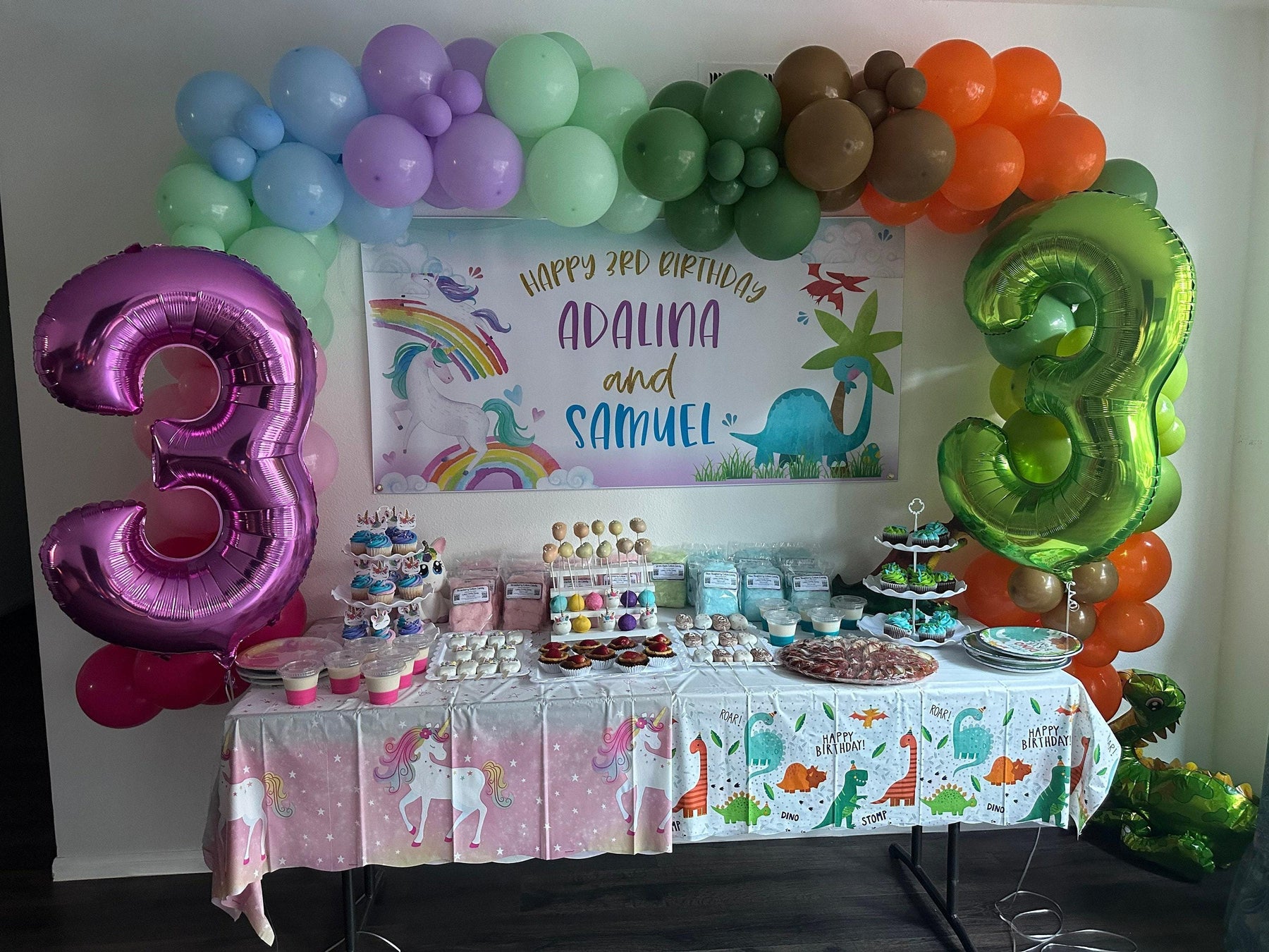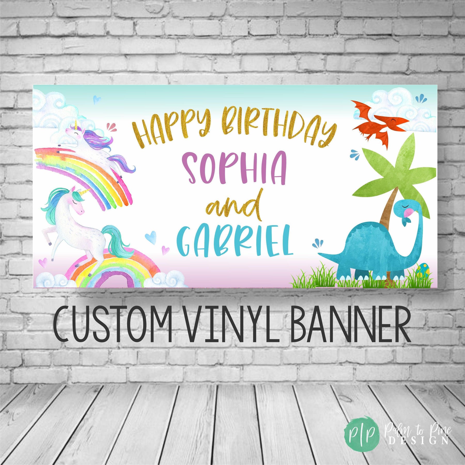 🦄 🦕YES! This dinosaur unicorn party banner can be customized for siblings, twins, a single child or even a baby shower, just include your request in your notes to seller section at checkout! The colors won't fade in the sun and the banner can be hung in your kids bedroom after the party is over!